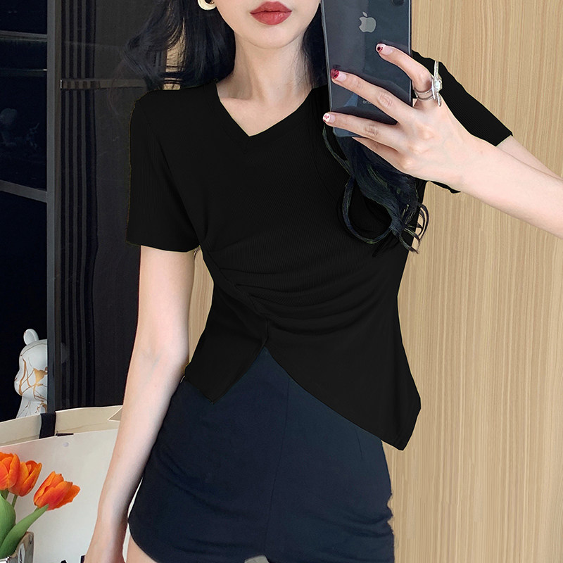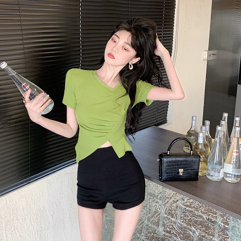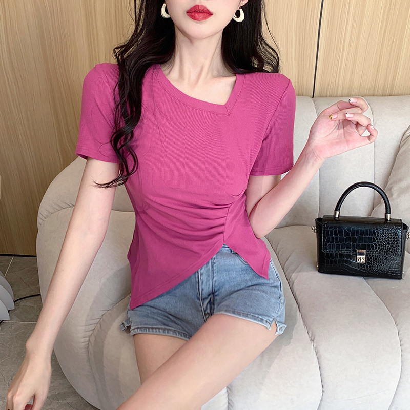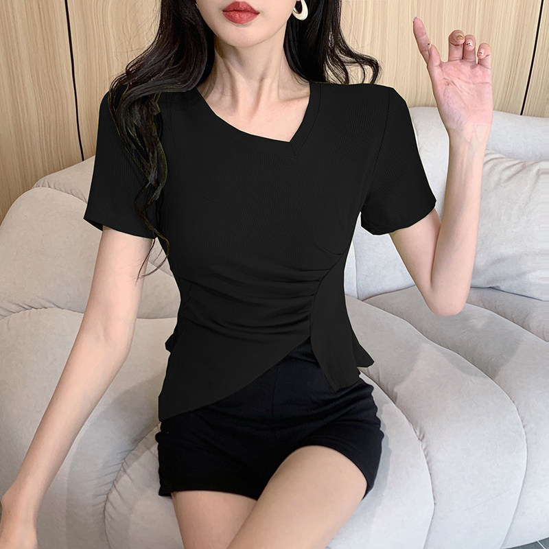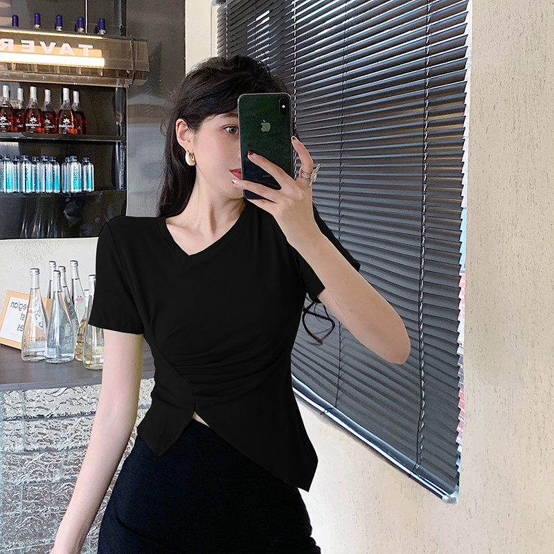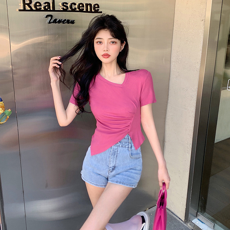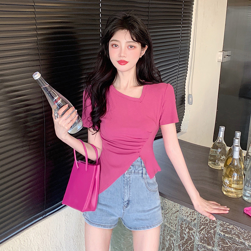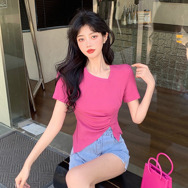 RM12111#不规则设计感短袖t恤女夏季修身短款辣妹上衣ins潮