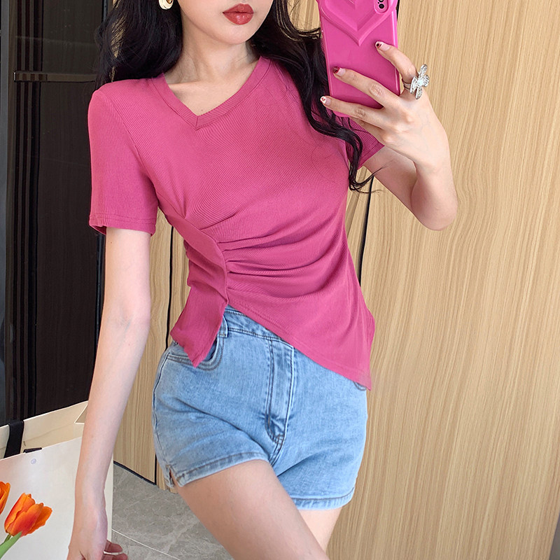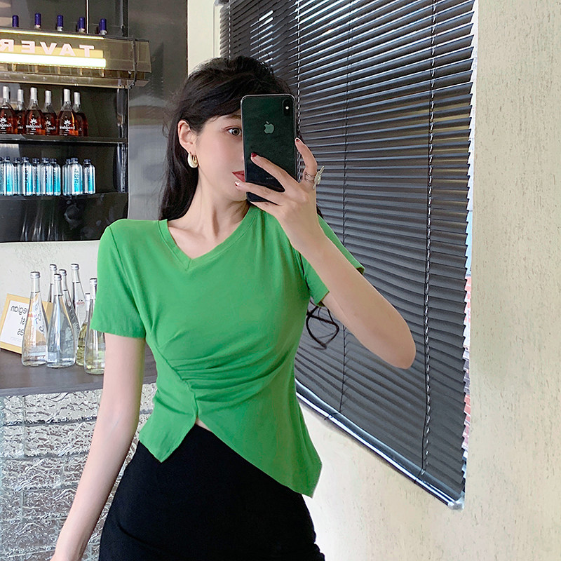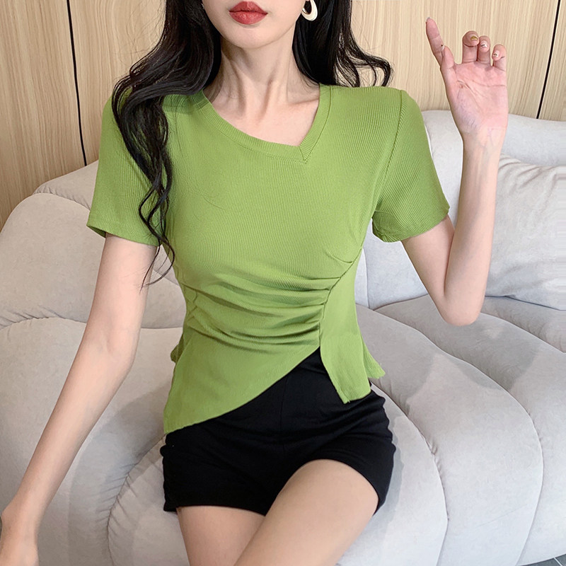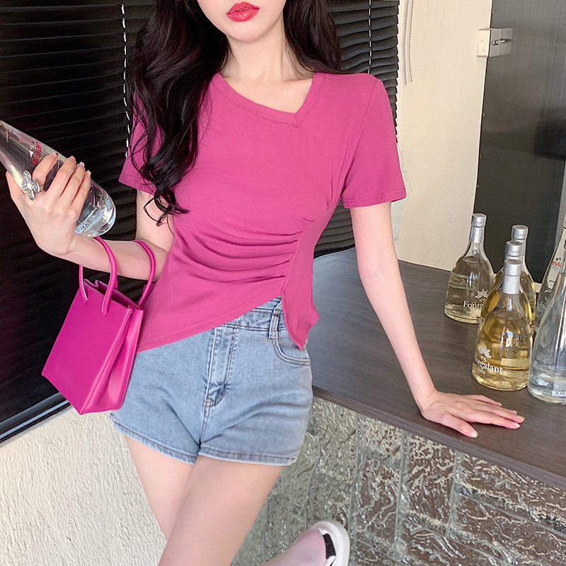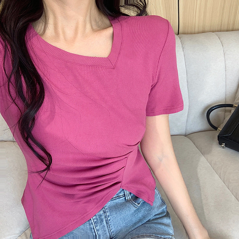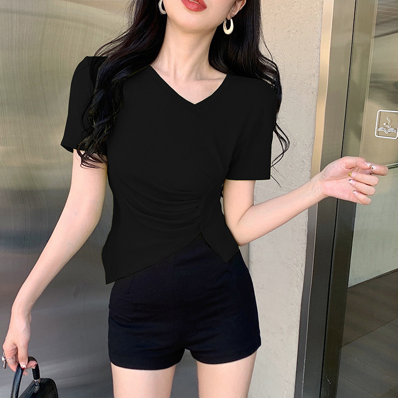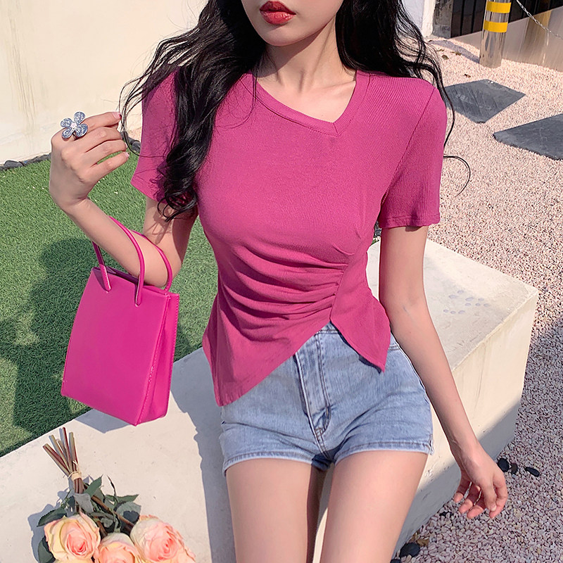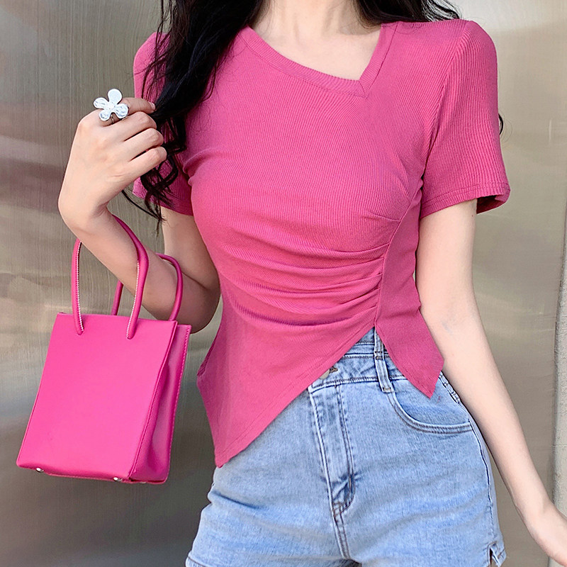RM12111#不规则设计感短袖t恤女夏季修身短款辣妹上衣ins潮