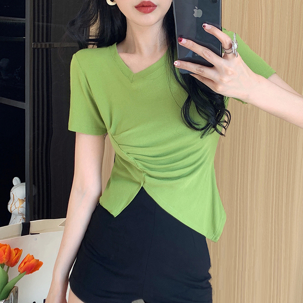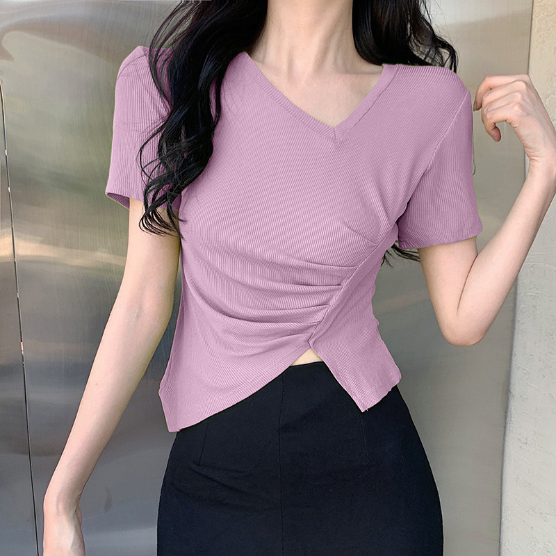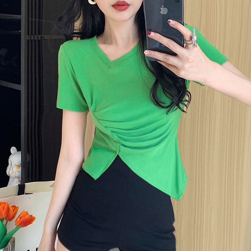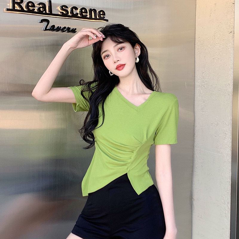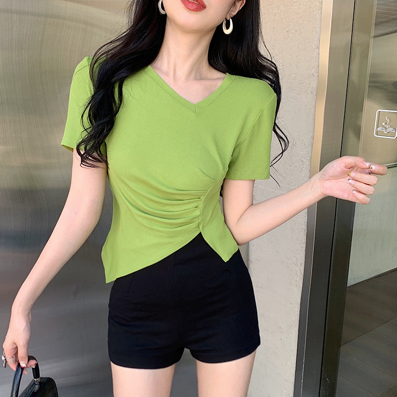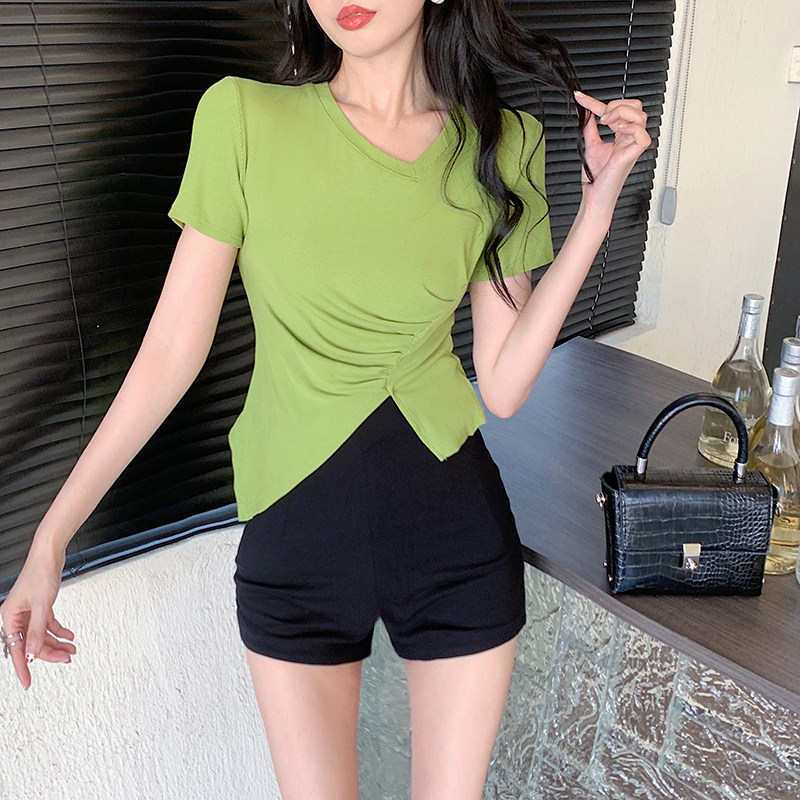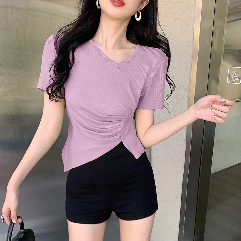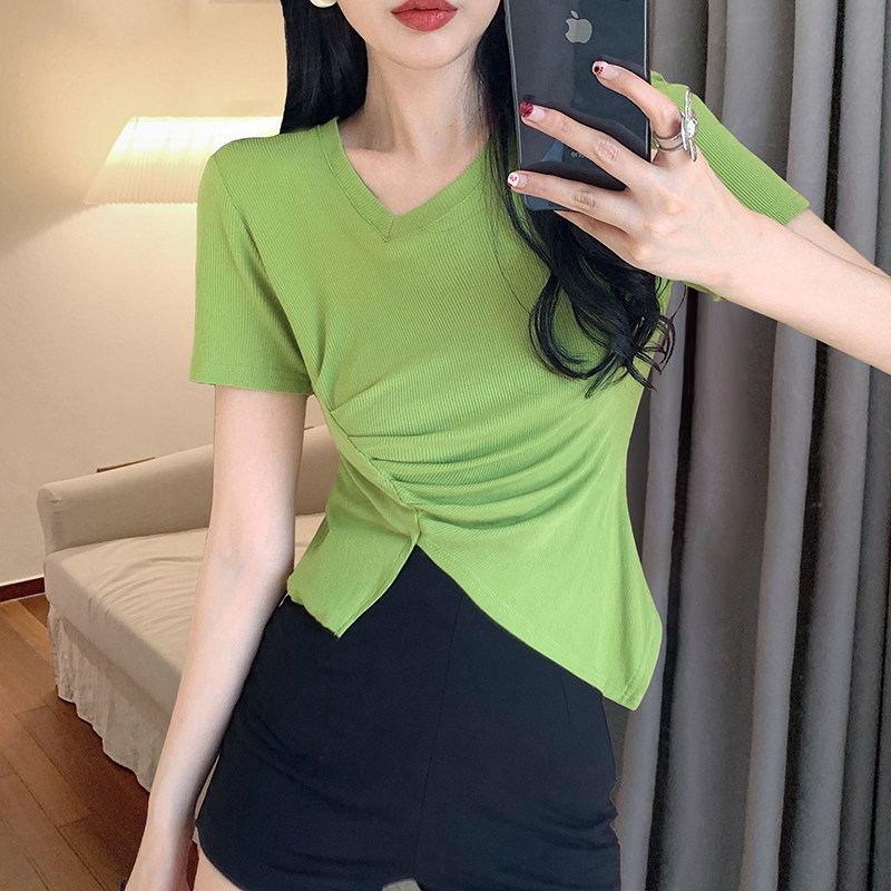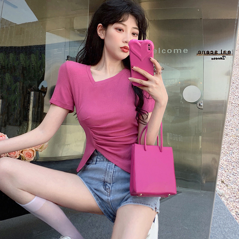 RM12111#不规则设计感短袖t恤女夏季修身短款辣妹上衣ins潮