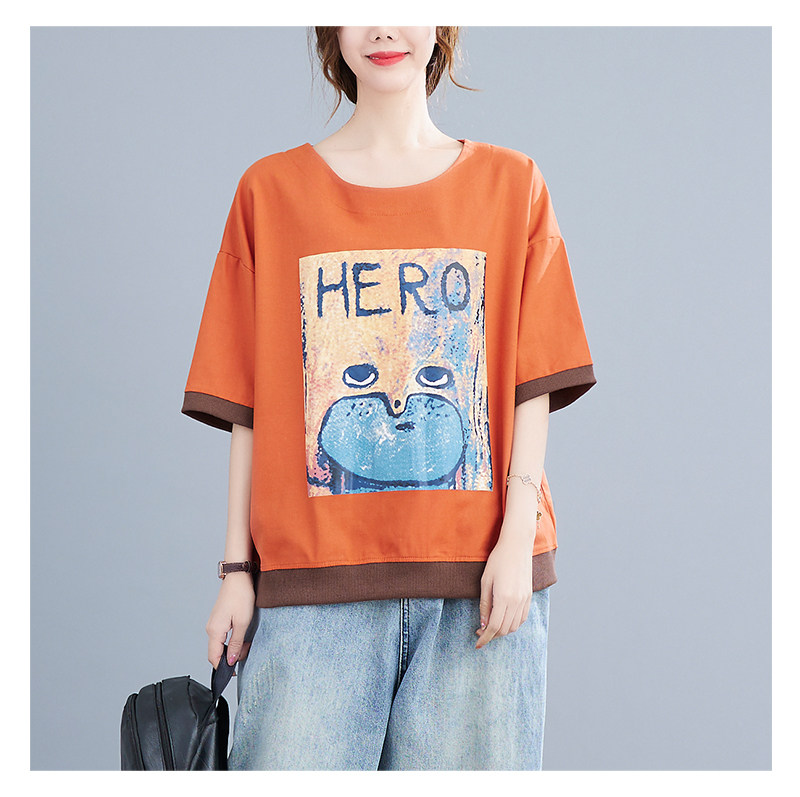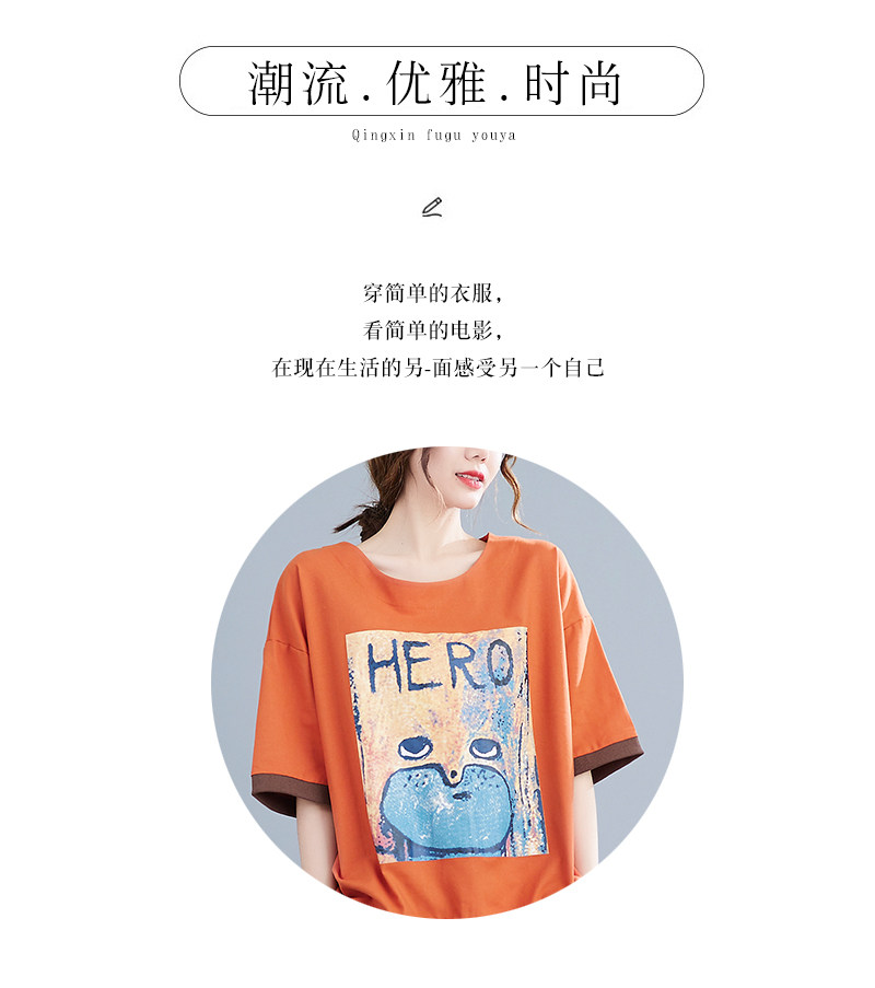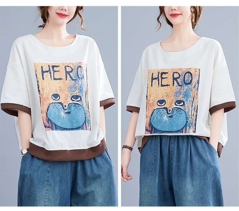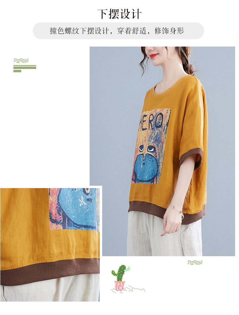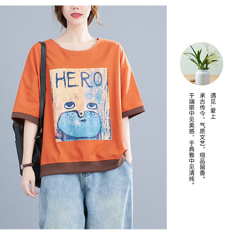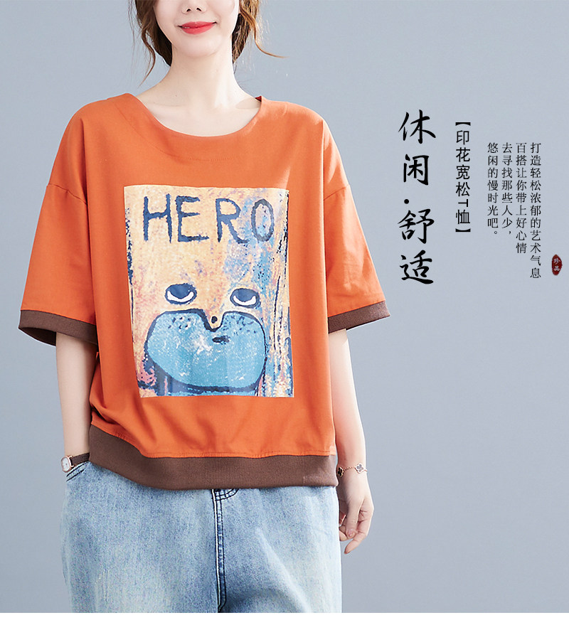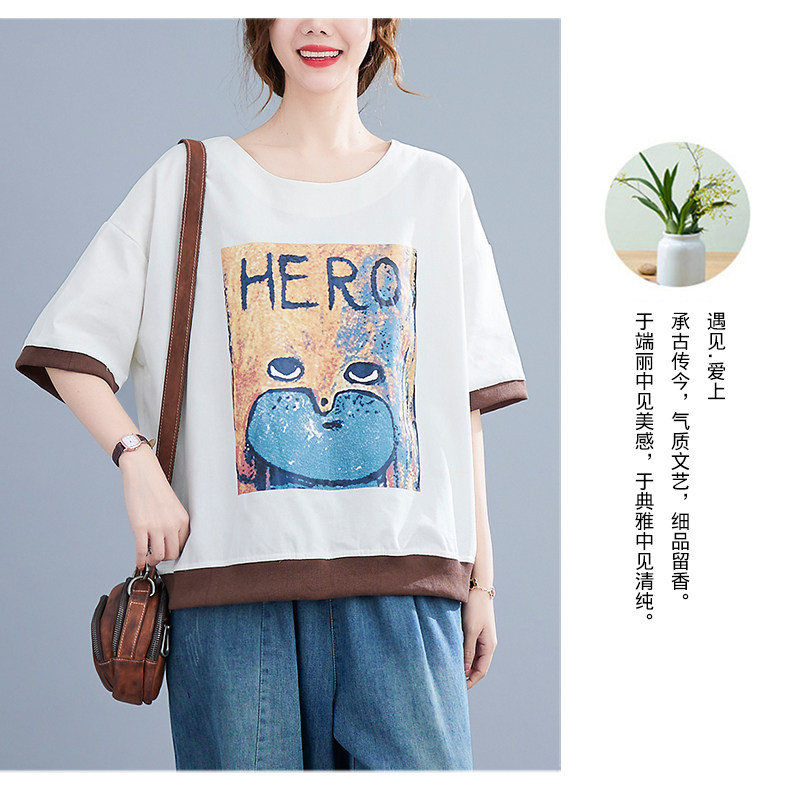 RY1520#宽松文艺短袖显瘦上衣夏装新款印花图案百搭休闲 t恤
