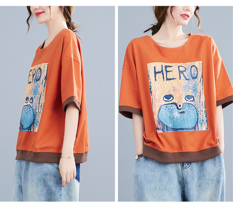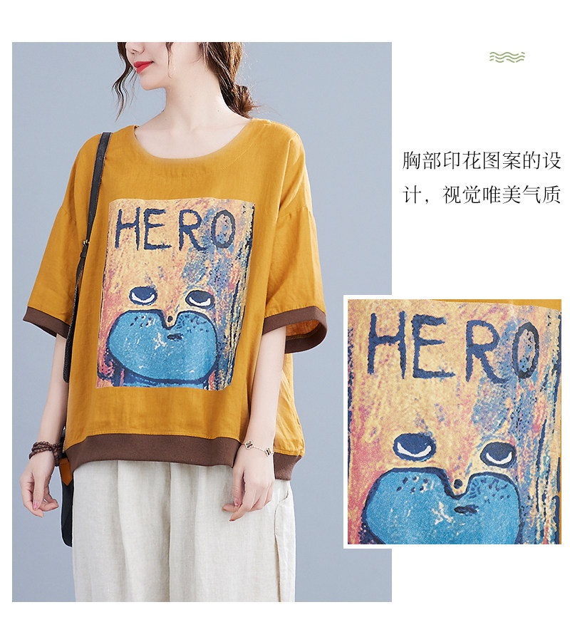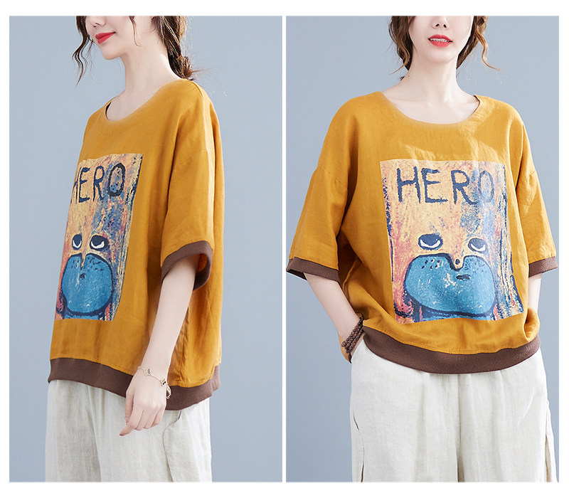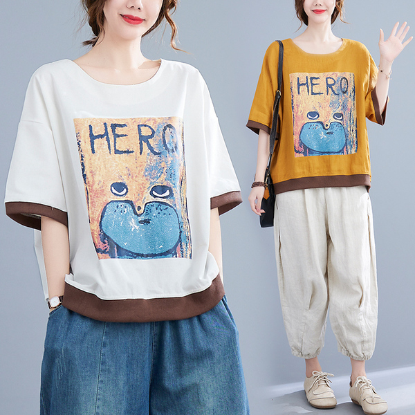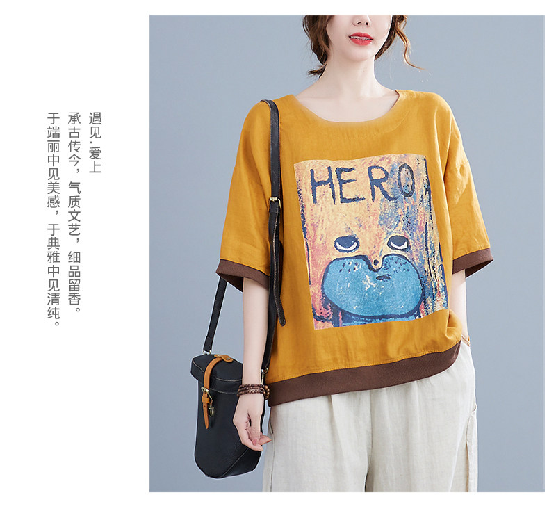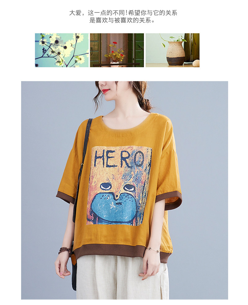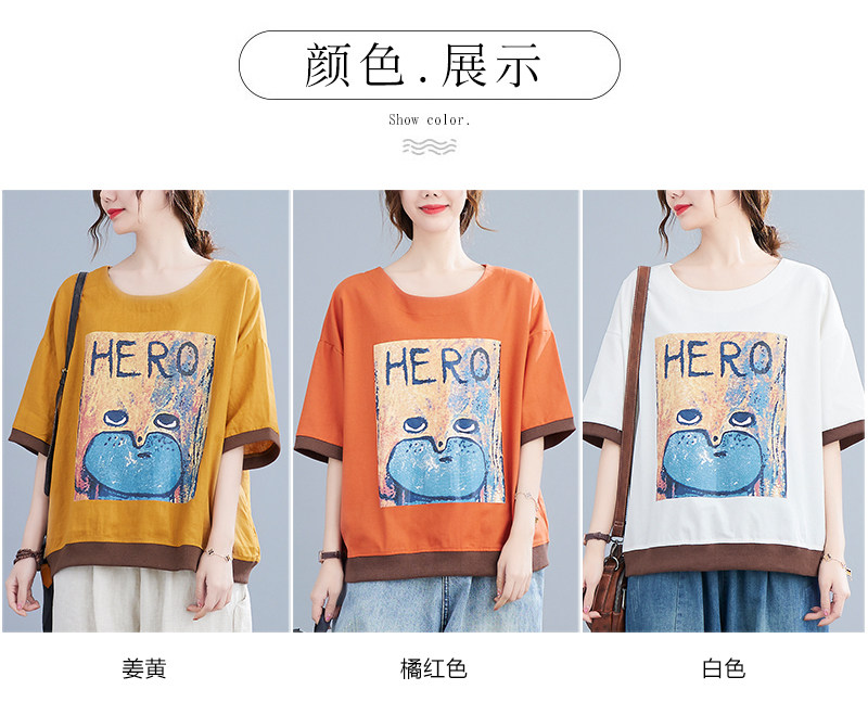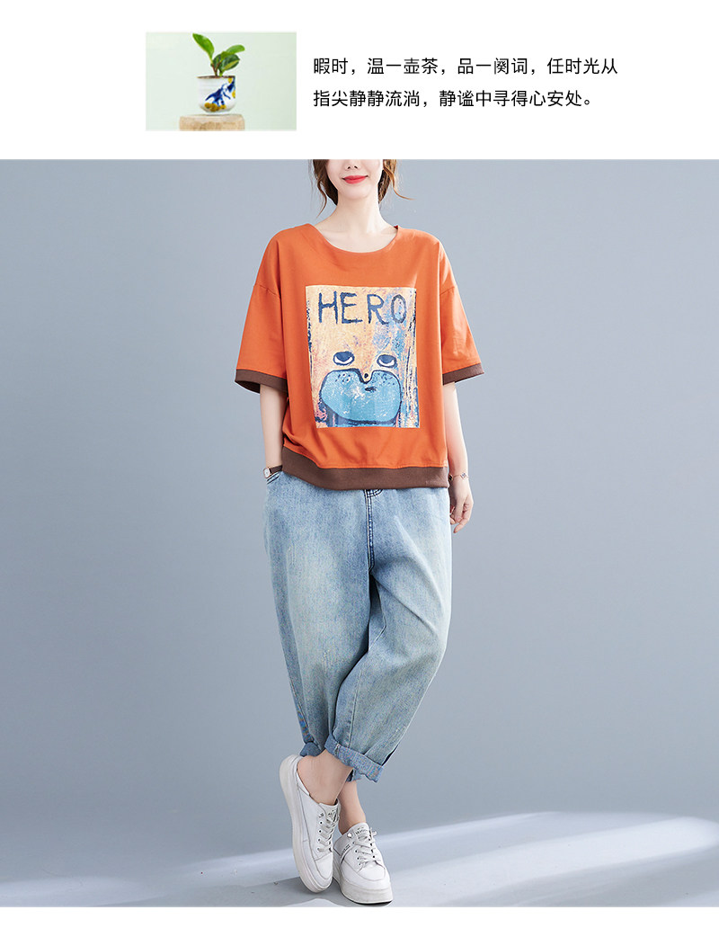 RY1520#宽松文艺短袖显瘦上衣夏装新款印花图案百搭休闲 t恤