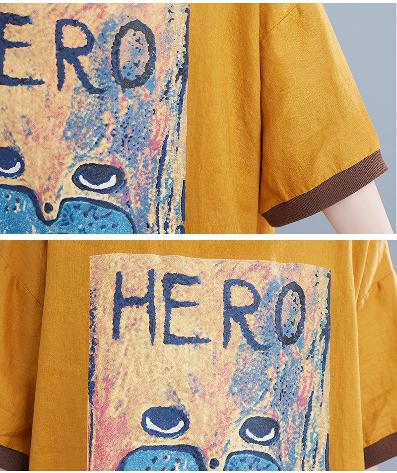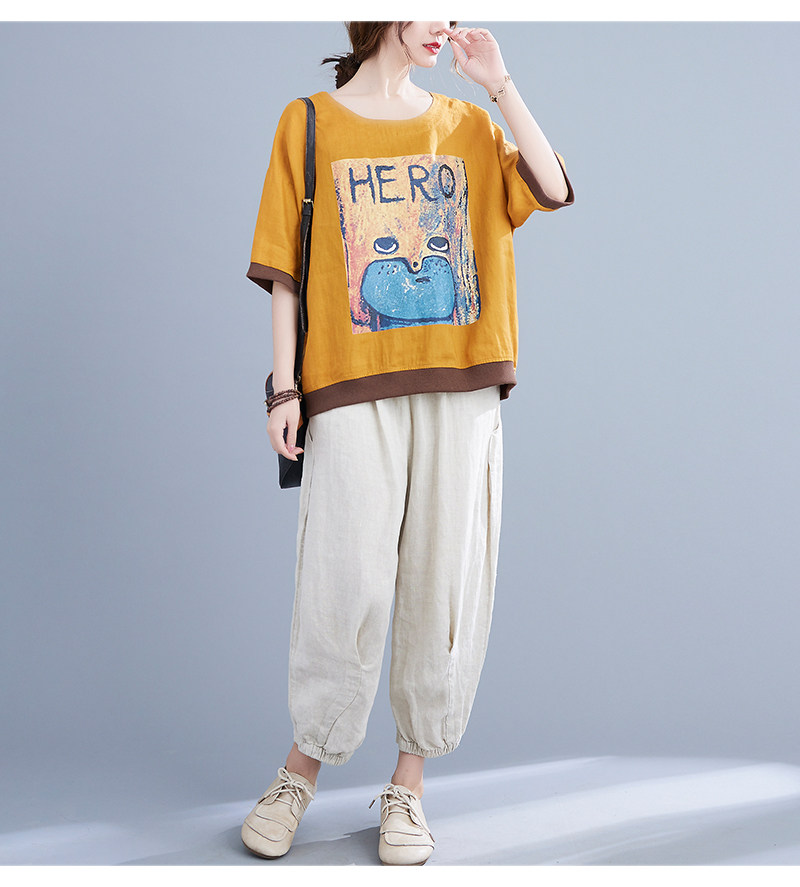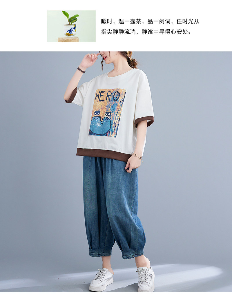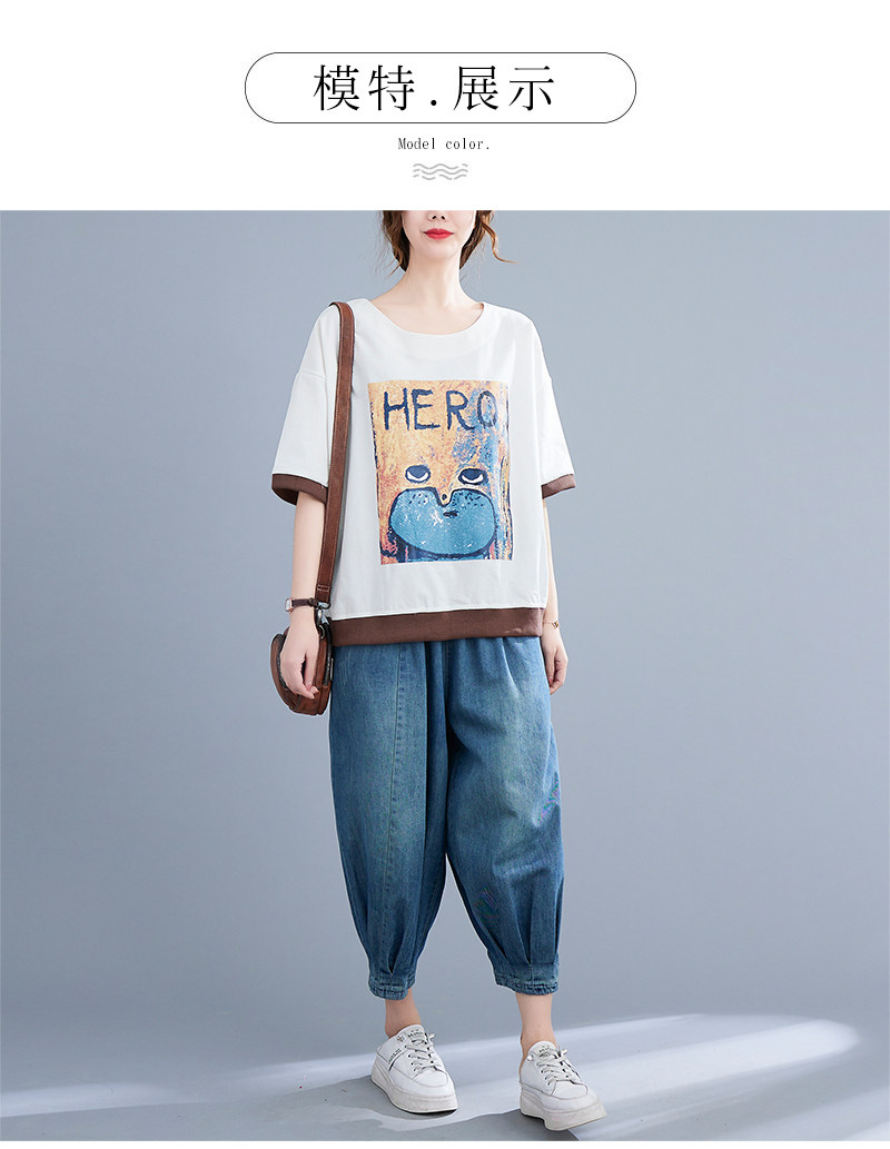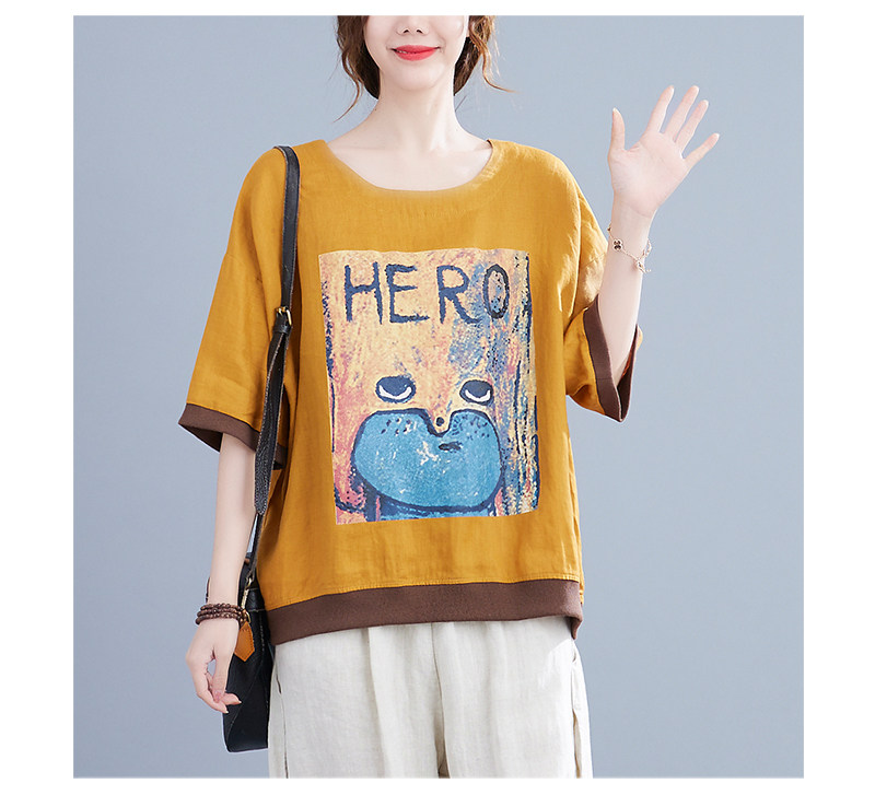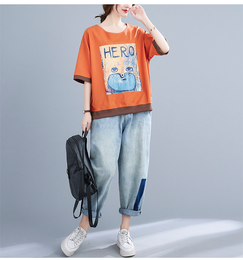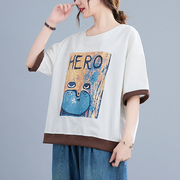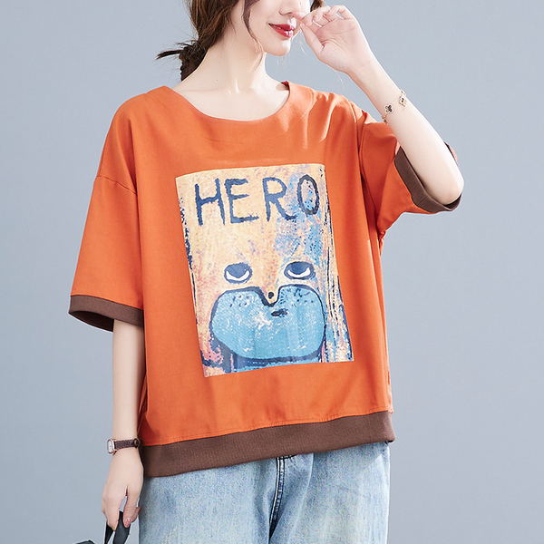 RY1520#宽松文艺短袖显瘦上衣夏装新款印花图案百搭休闲 t恤
