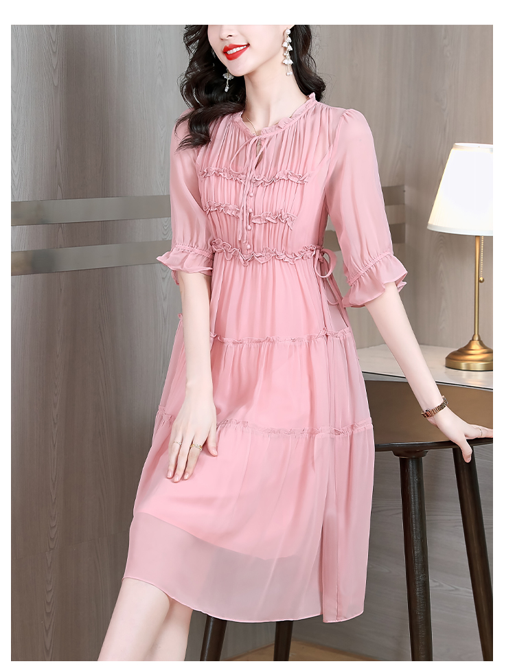 RM12276#连衣裙宽松型A字裙荷叶边裙中长裙夏季纱套头