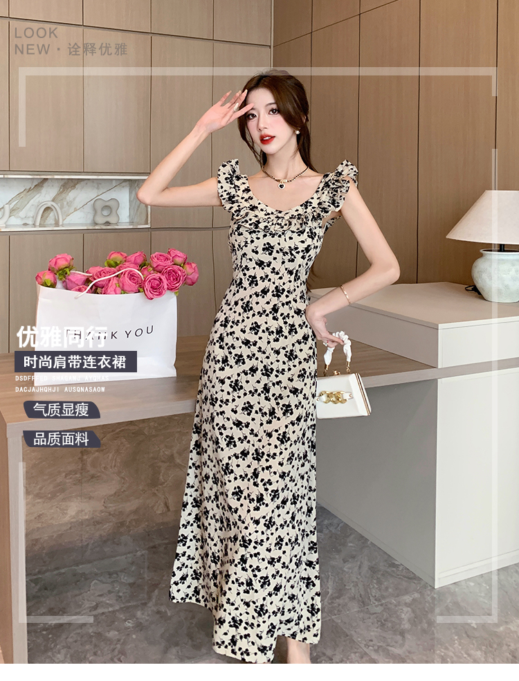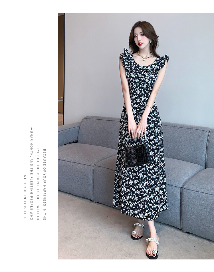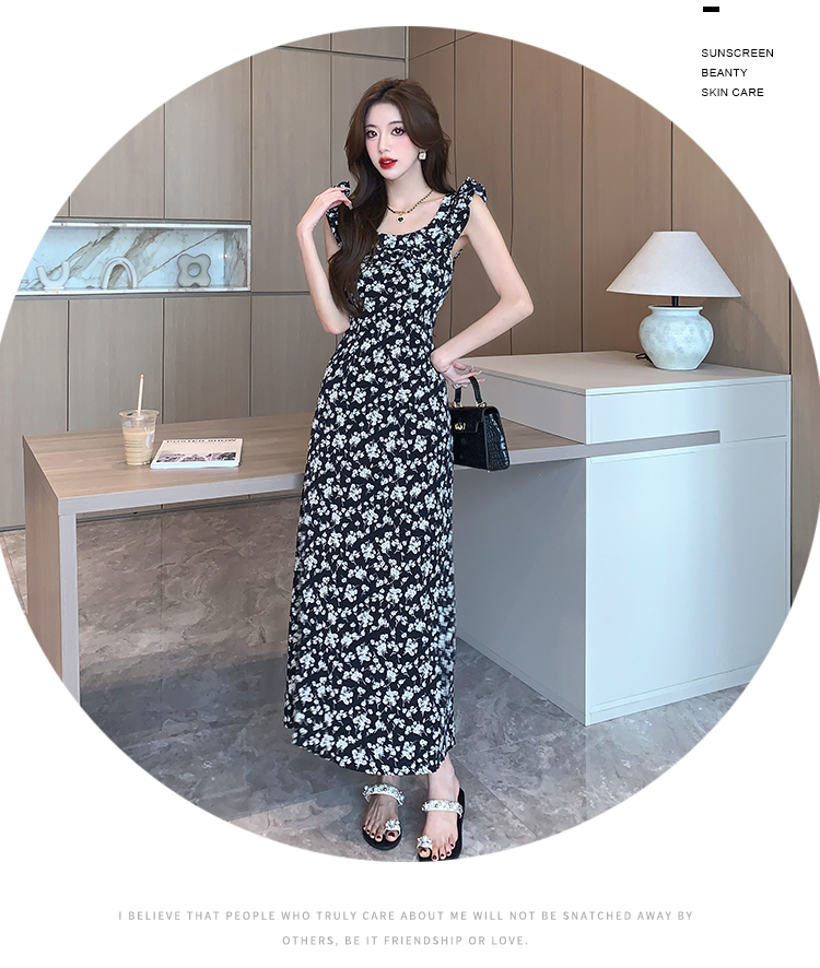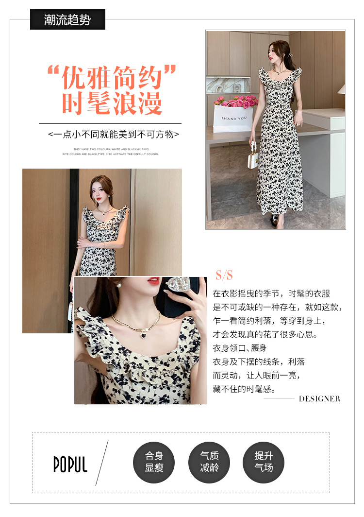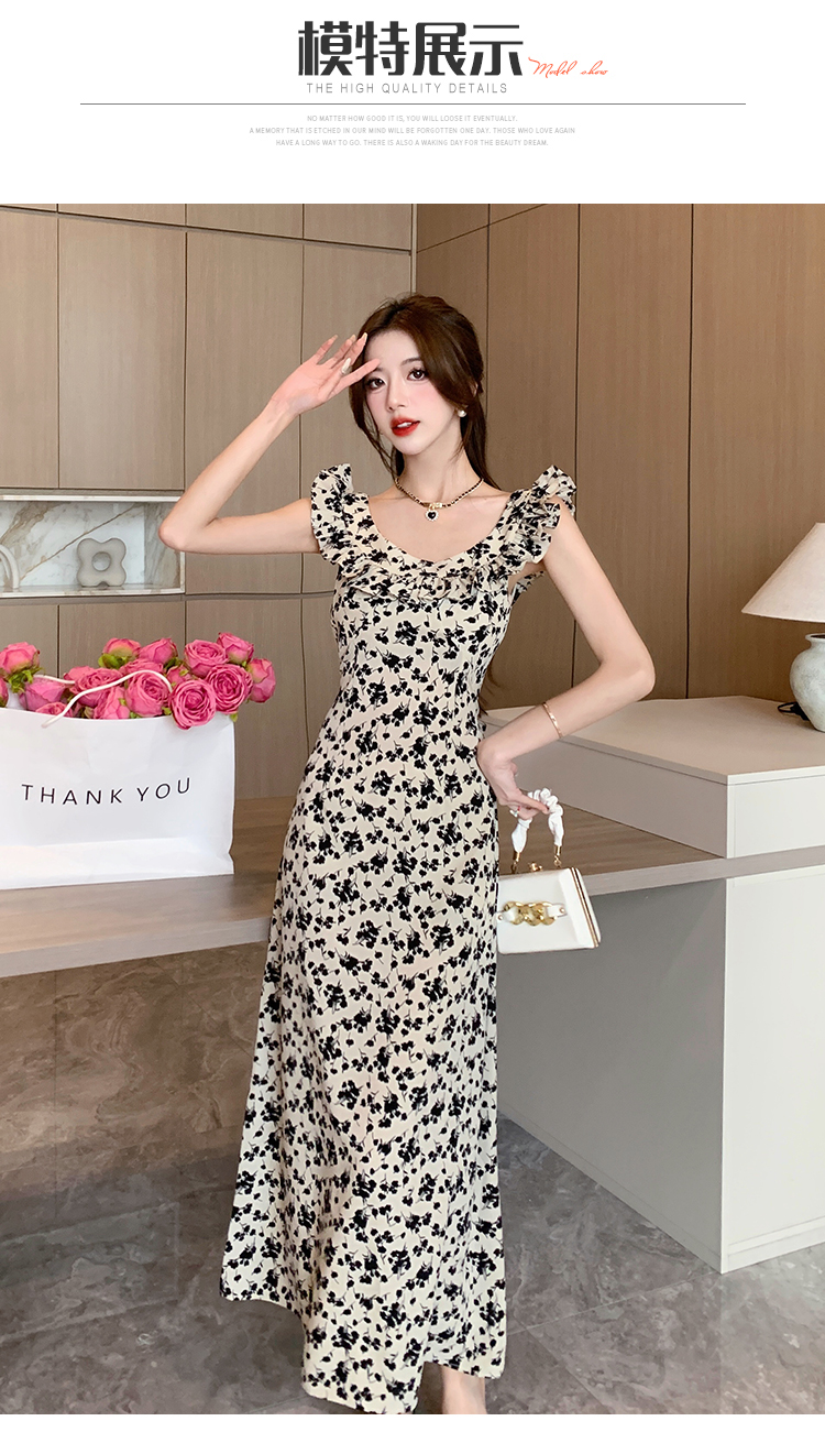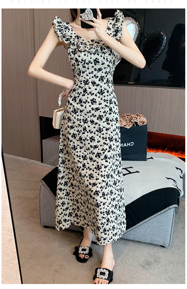 RM12289#法式黑白碎花小飞袖连衣裙子女夏季2023新款赫本气质长裙