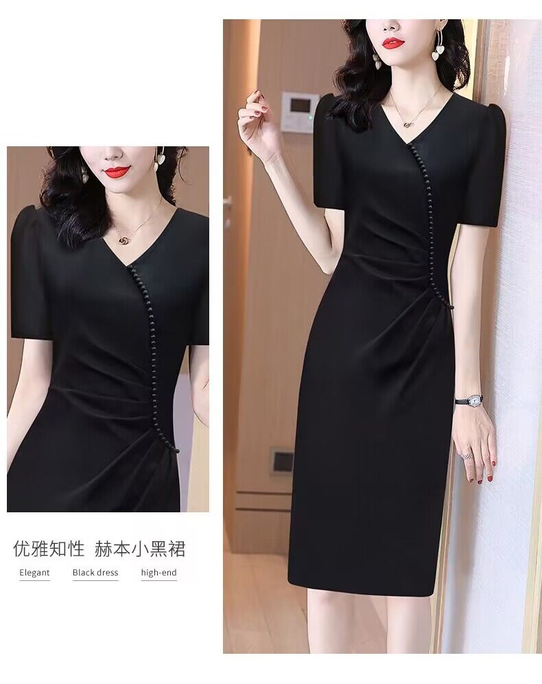 RM12308#连衣裙女2023新款高级感显瘦法式黑色高端包臀裙气质裙子夏季