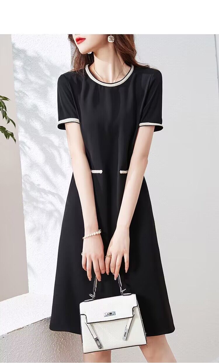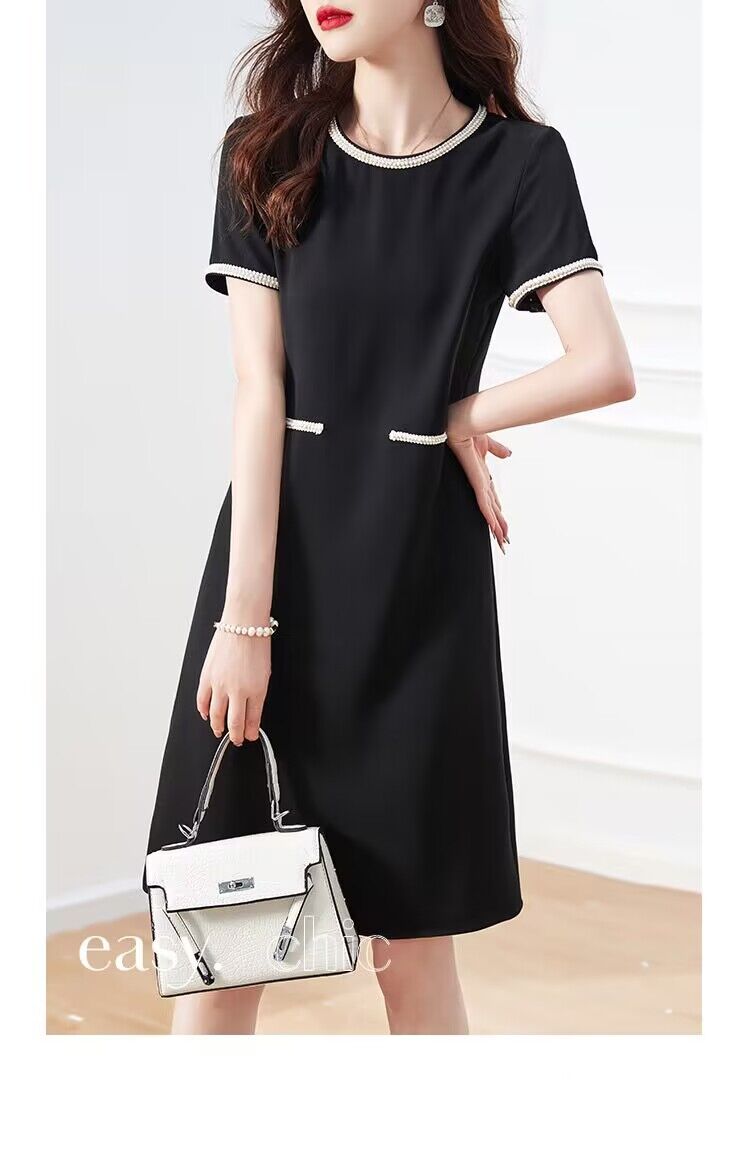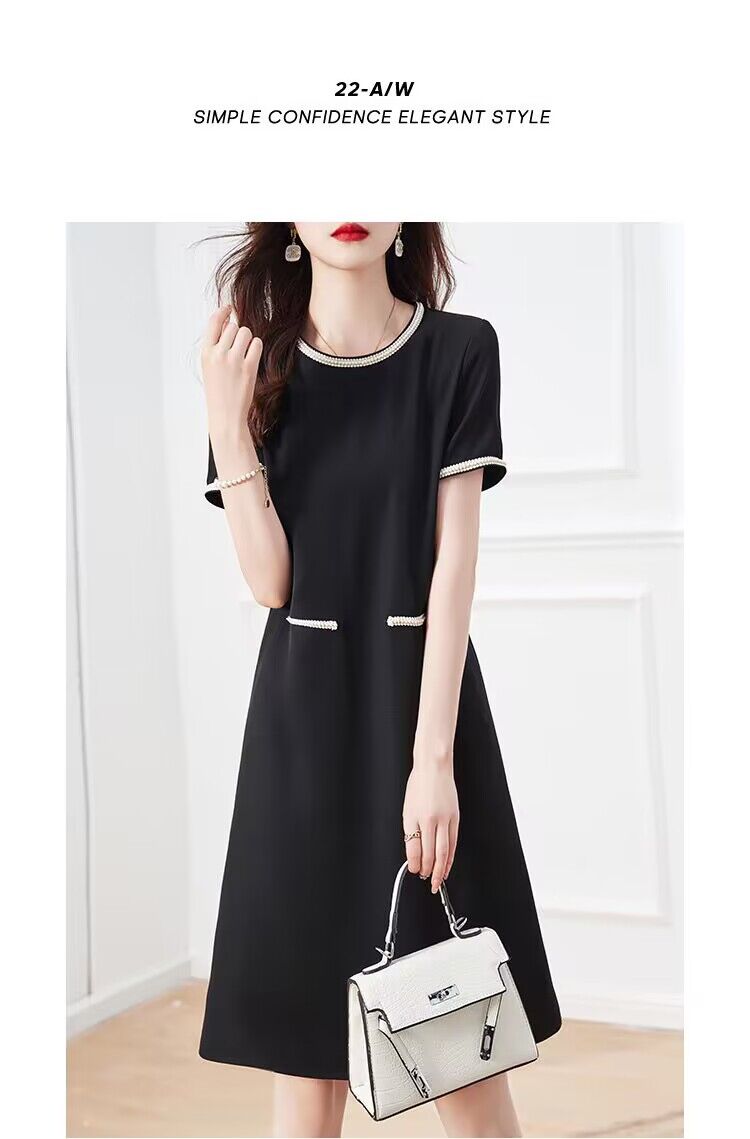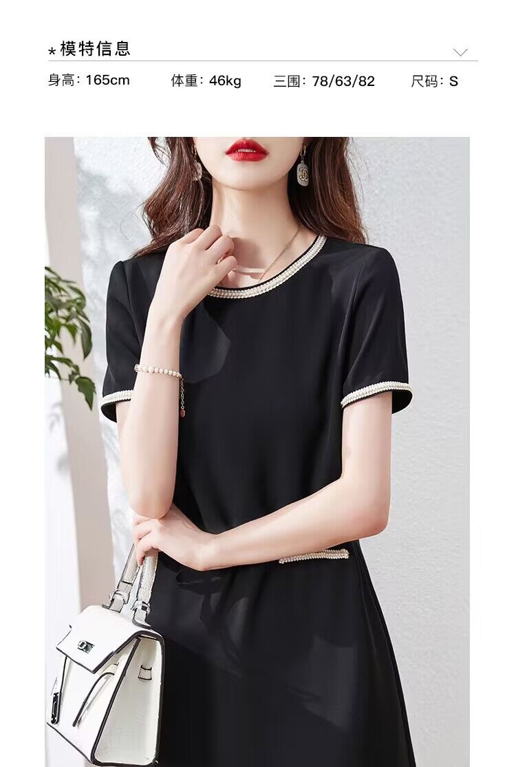 RM12315#简约气质 2023夏季时尚钉珠显瘦轻奢气质小黑裙