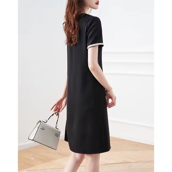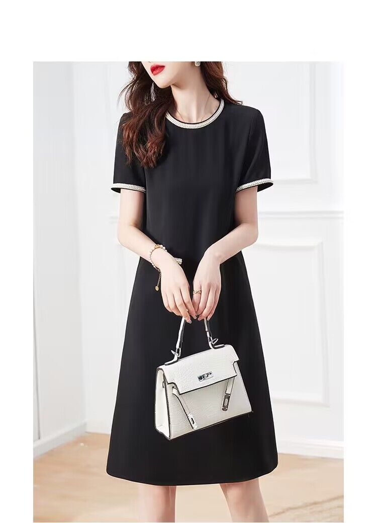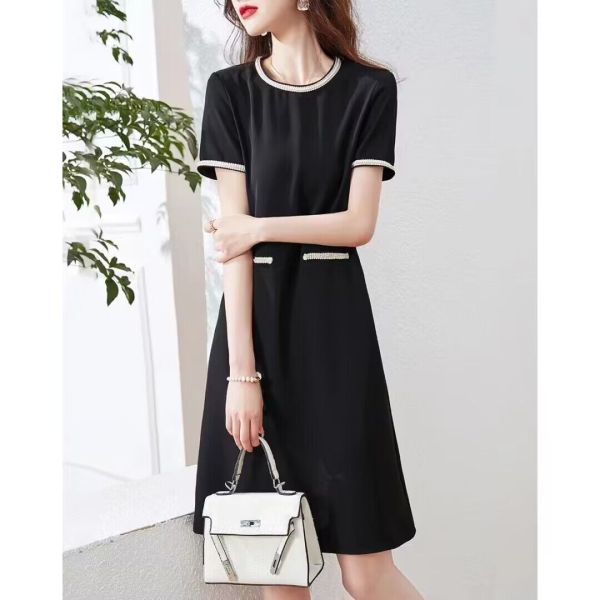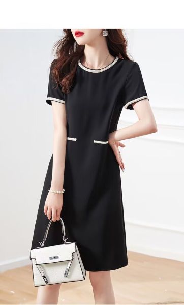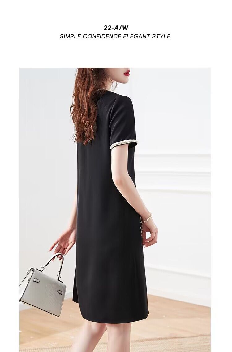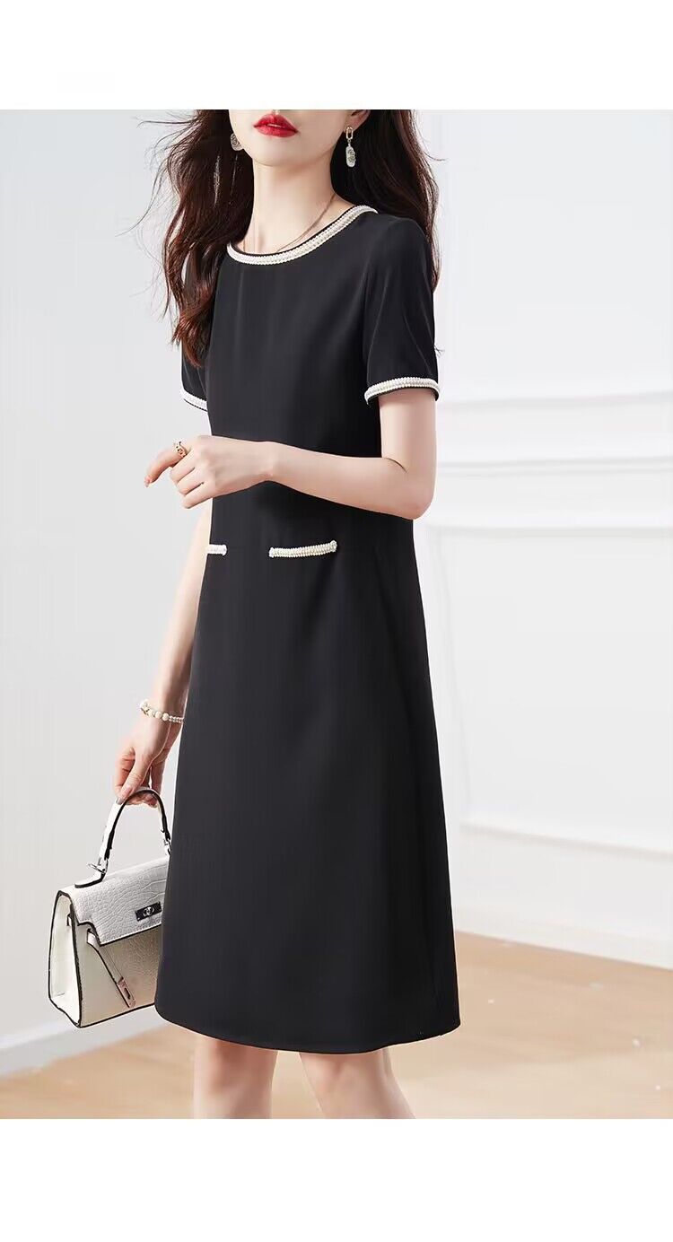 RM12315#简约气质 2023夏季时尚钉珠显瘦轻奢气质小黑裙