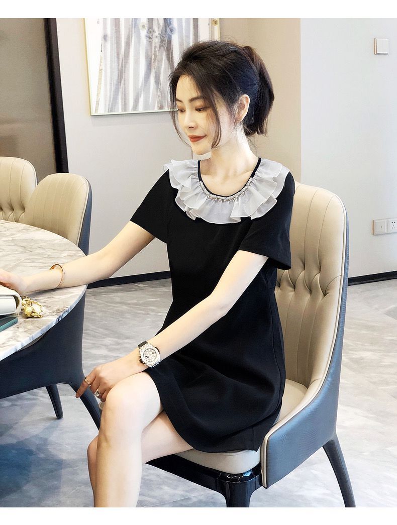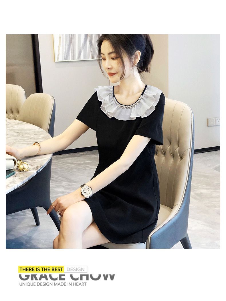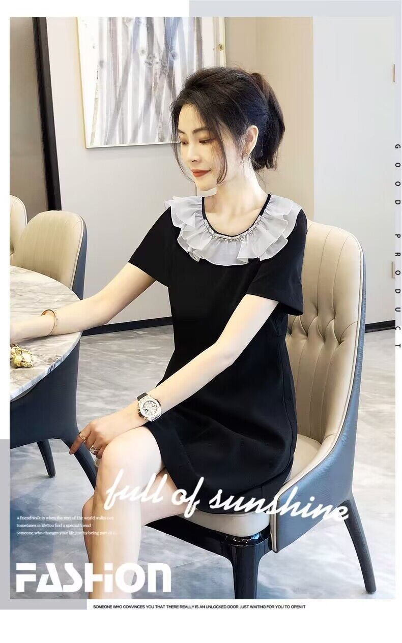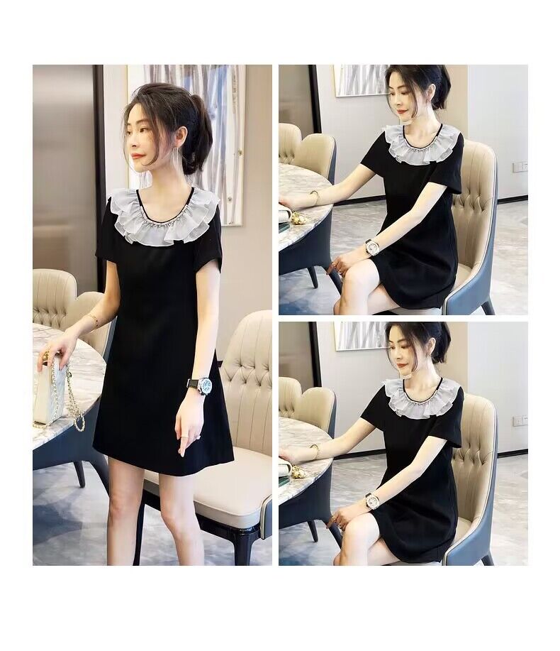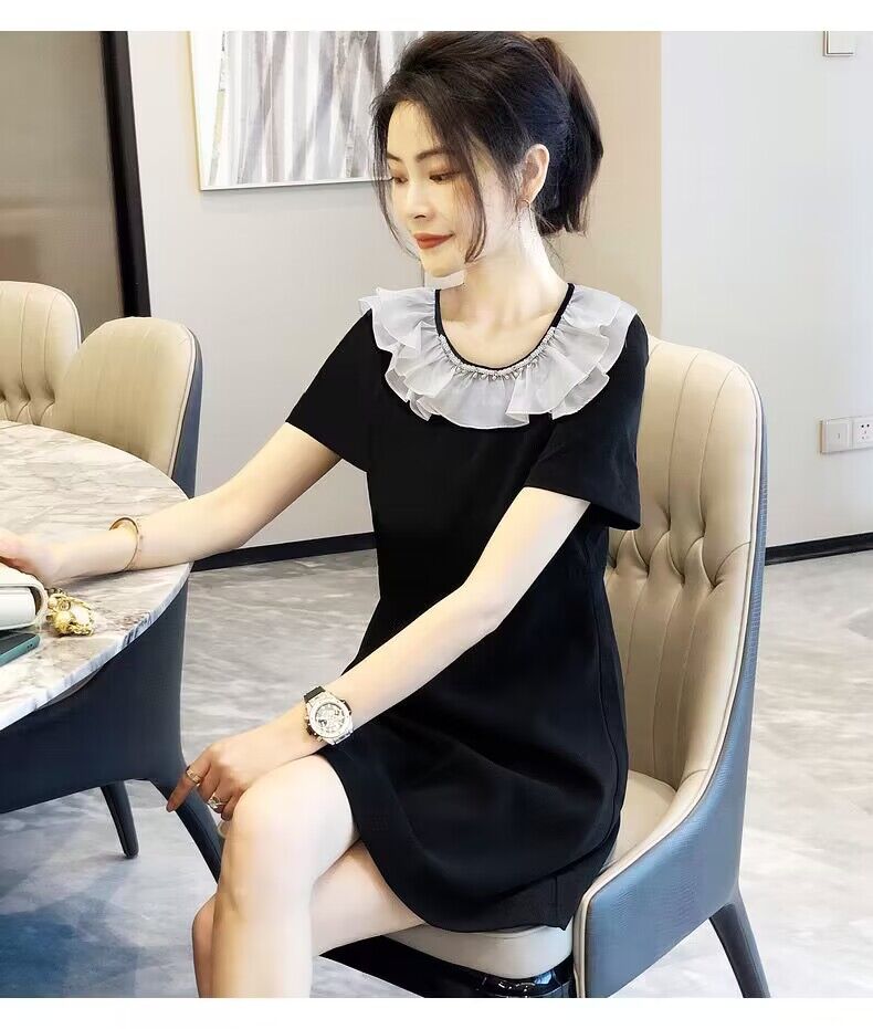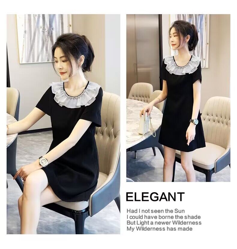 RM12320#荷叶边黑色连衣裙女小个子微胖显瘦气质裙子夏季2023年新款欧洲站