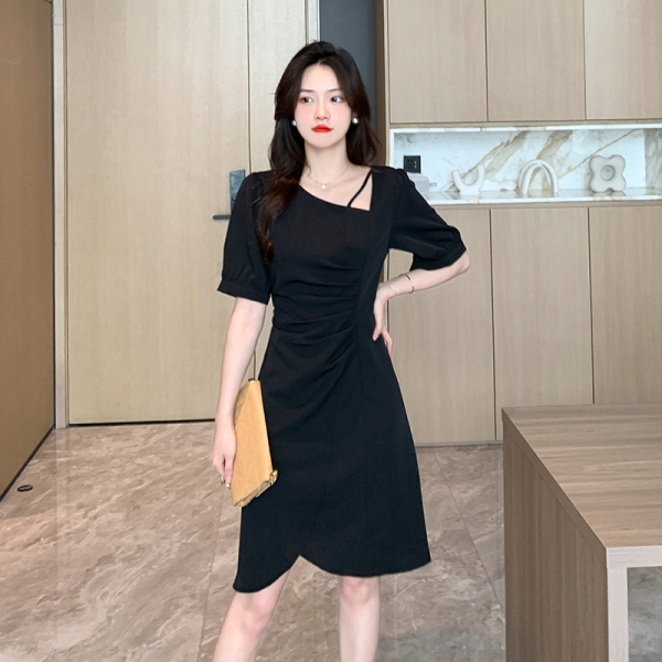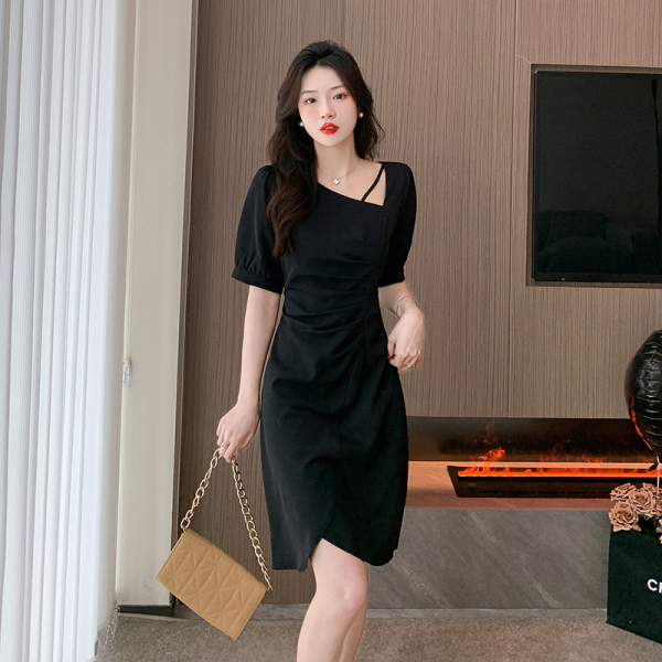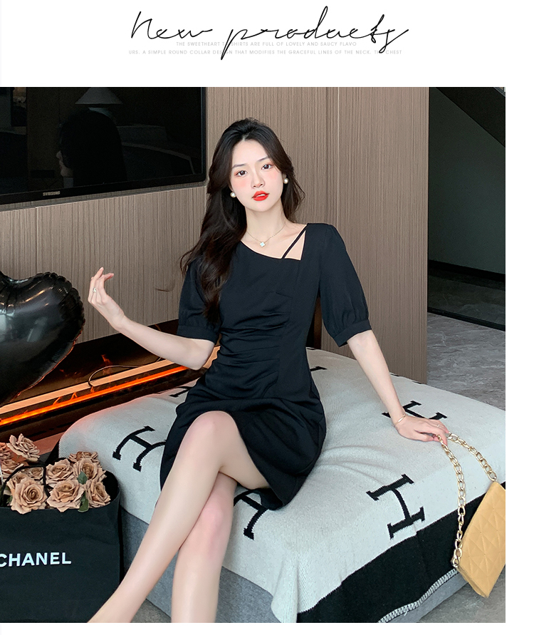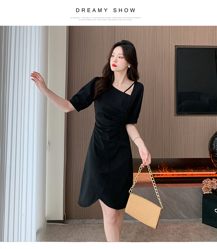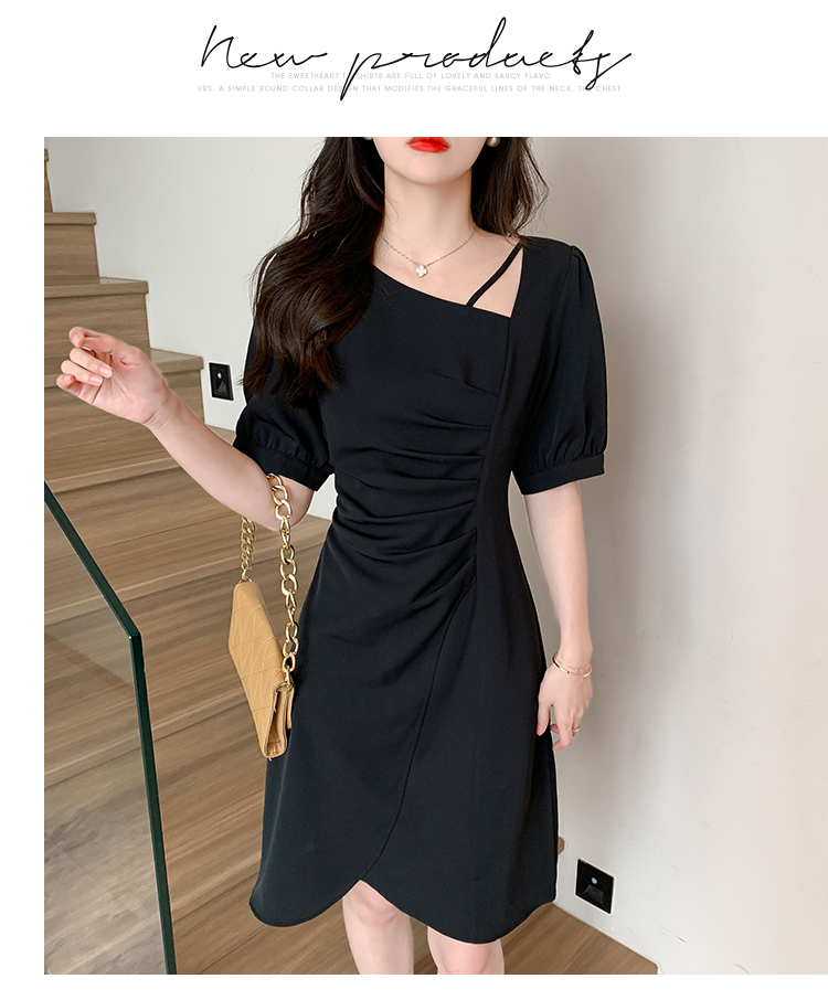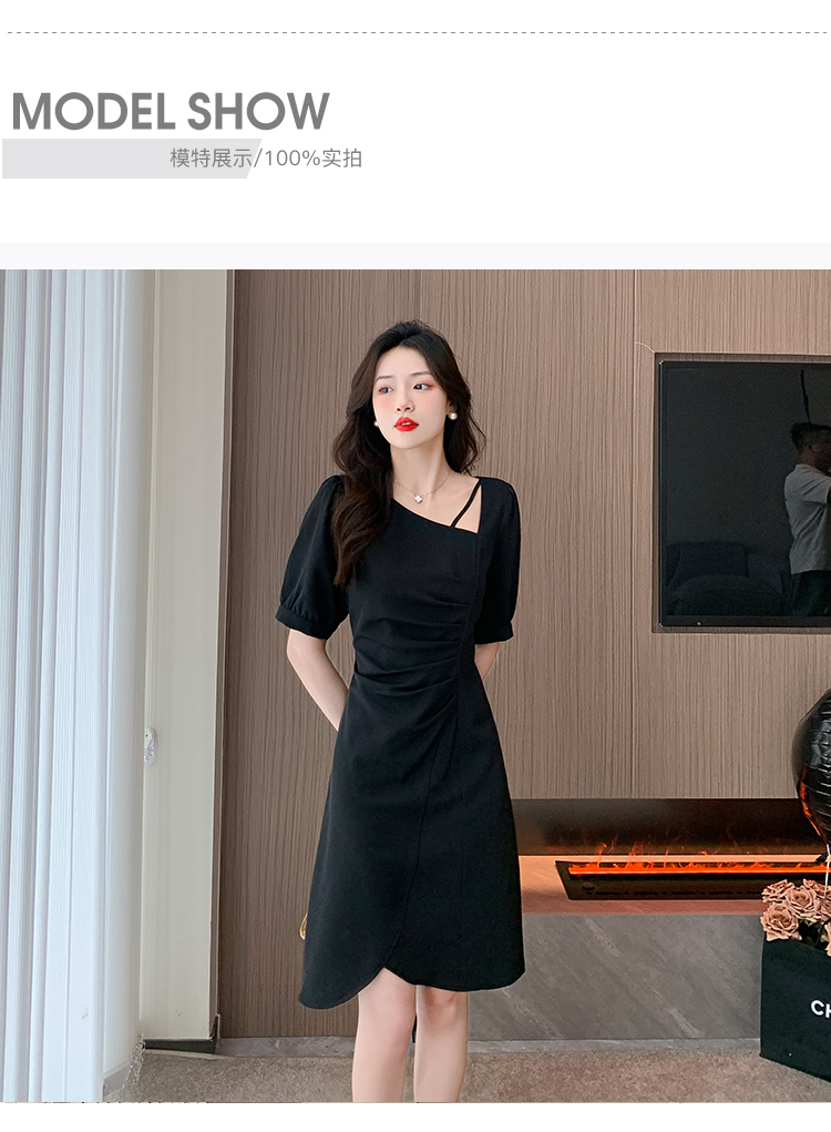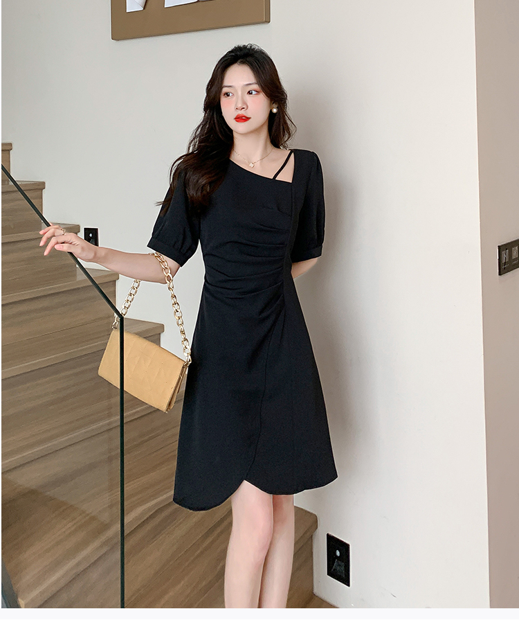 RM12325#新款法式复古赫本风收腰显瘦修身别致设计感炸街短袖连衣裙女