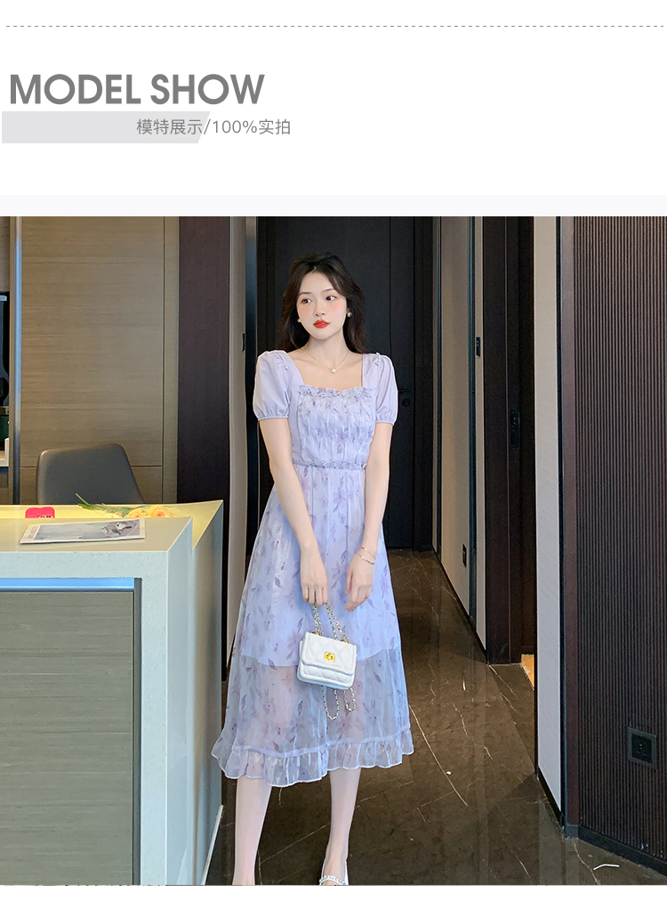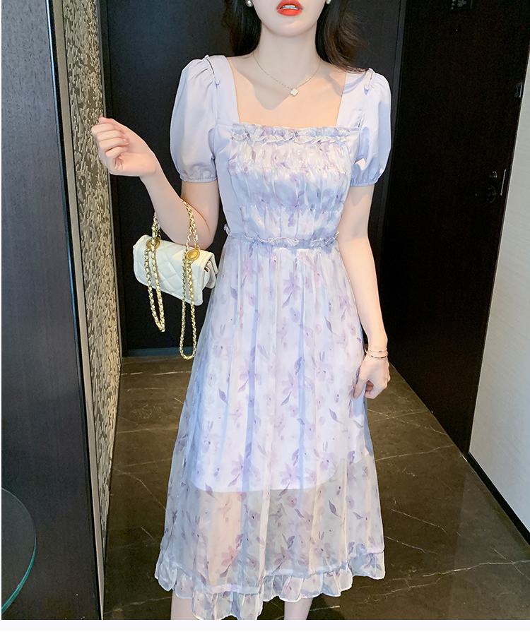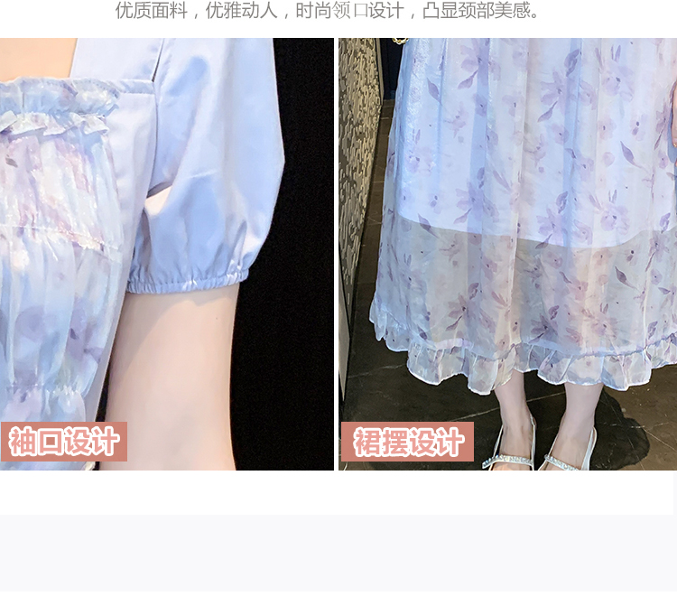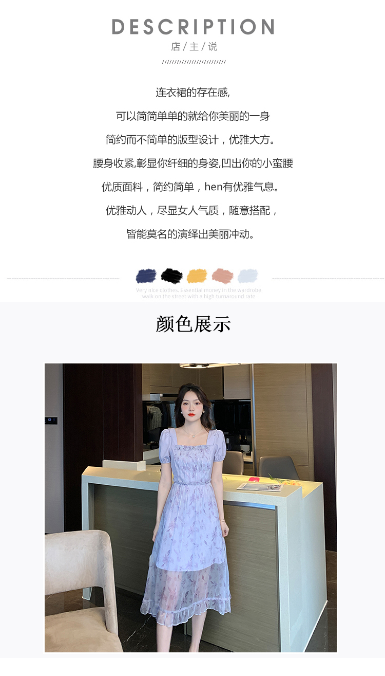 RM12326#夏新款淑女复古浪漫别致甜美通透花瓣印花连衣裙短袖方领