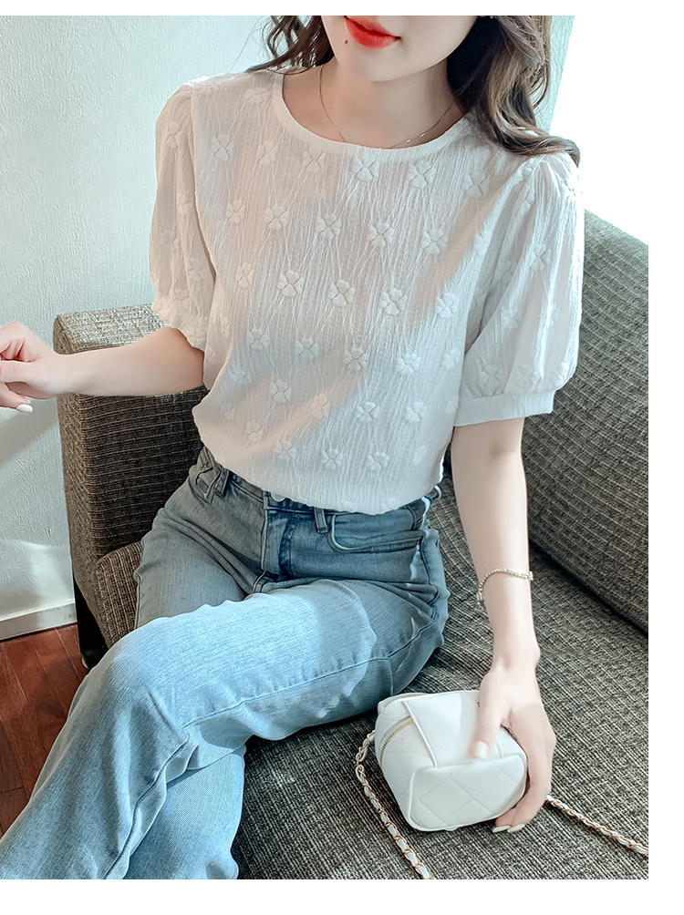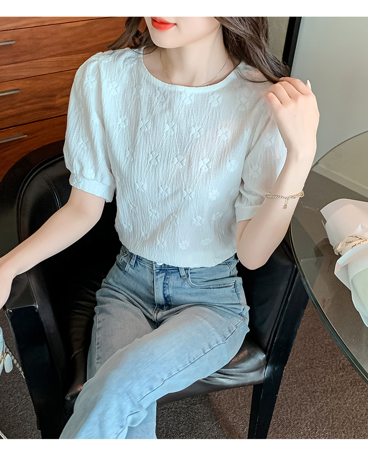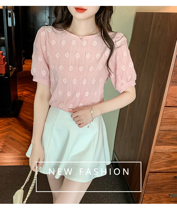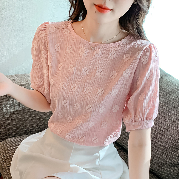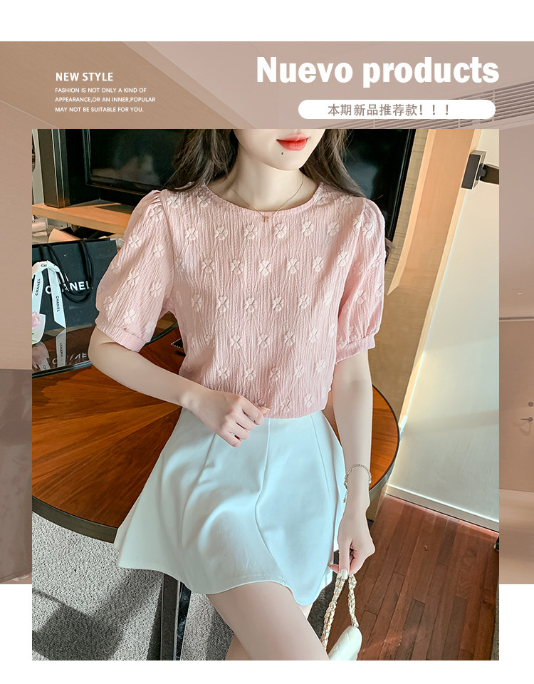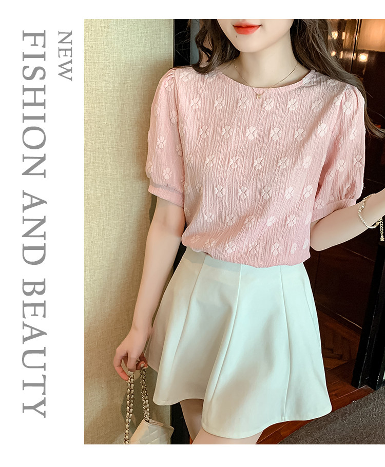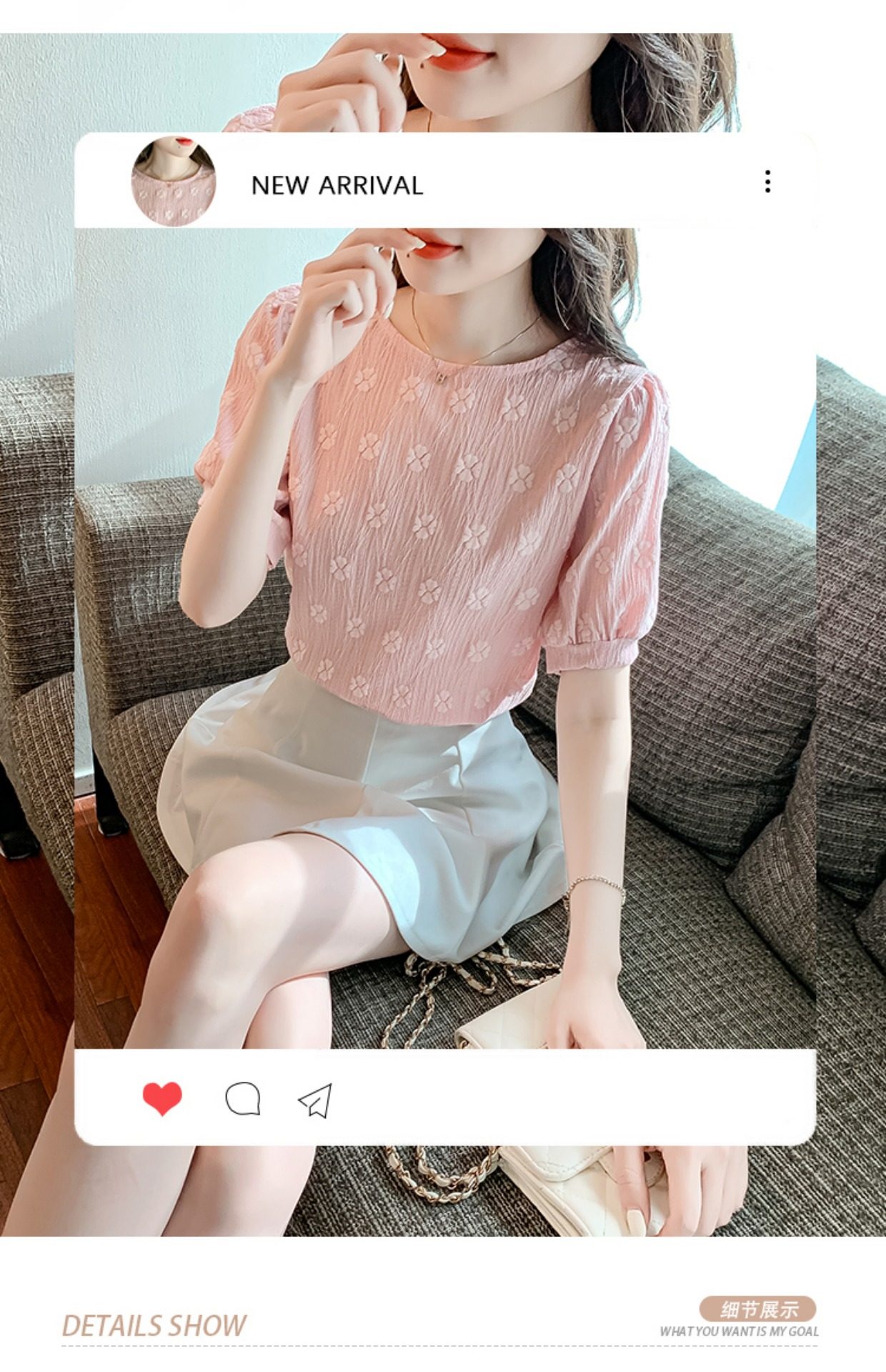 RM12365#夏装新款甜美花朵圆领宽松短袖上衣百搭显瘦温柔小衫t恤