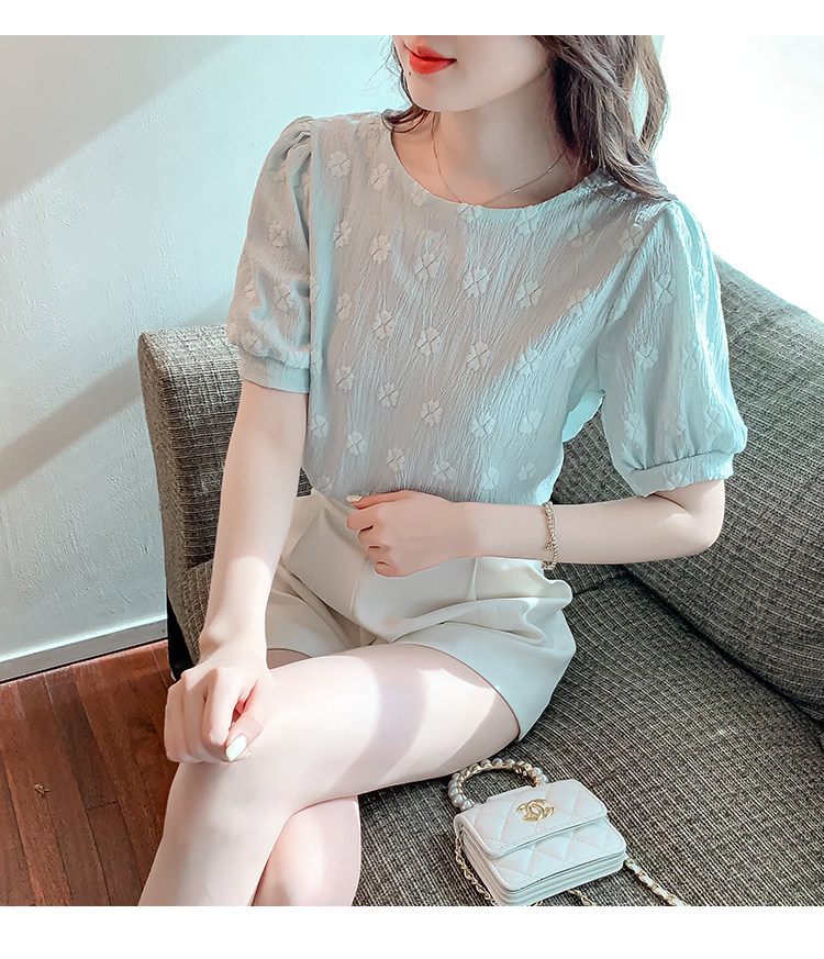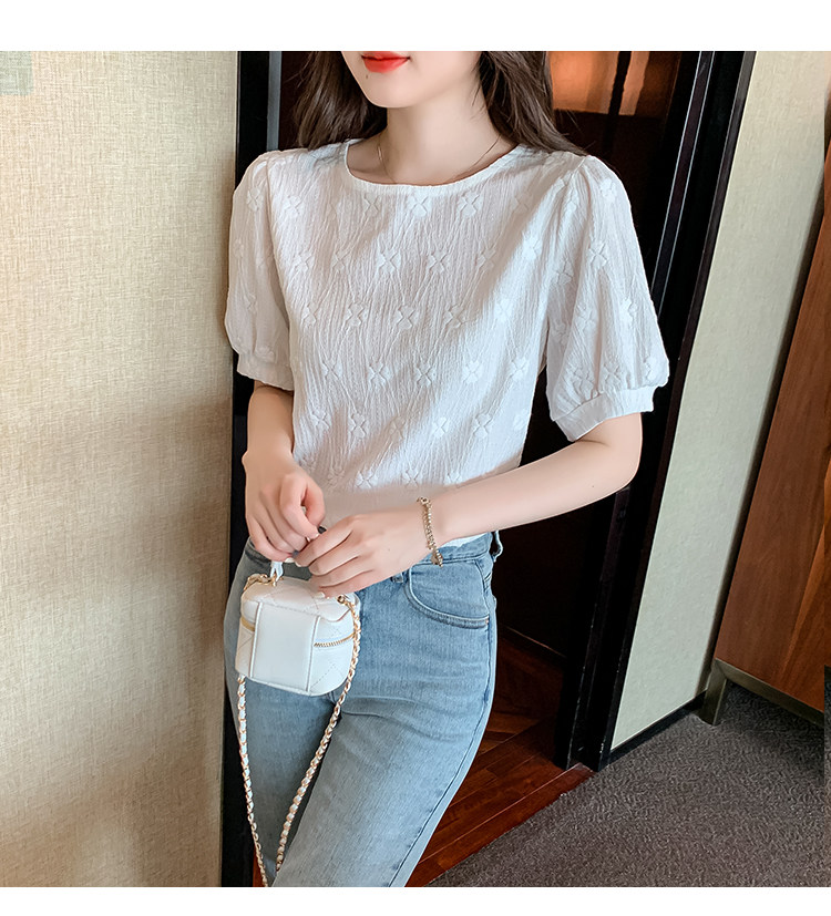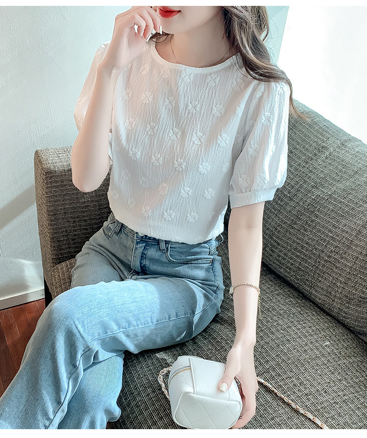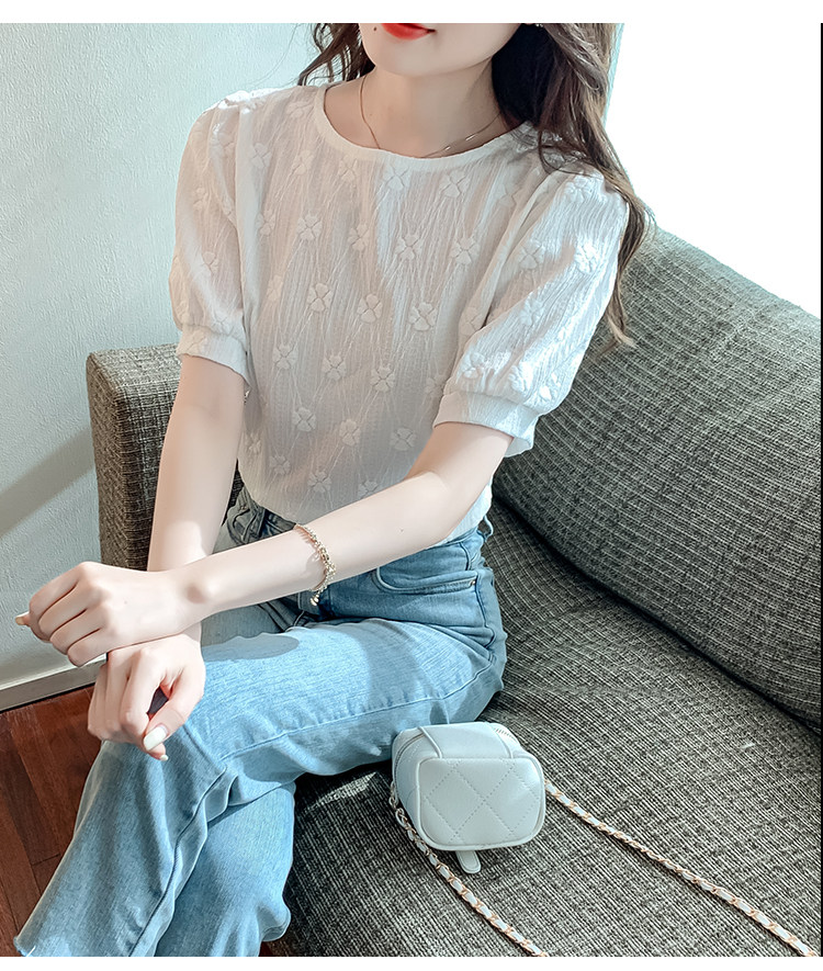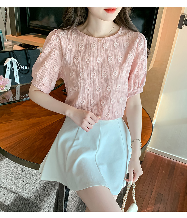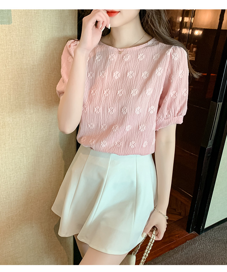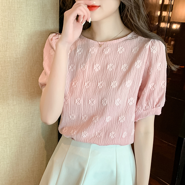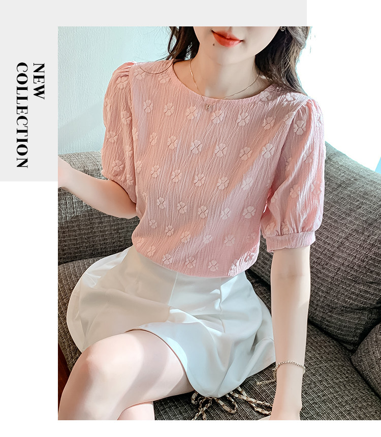 RM12365#夏装新款甜美花朵圆领宽松短袖上衣百搭显瘦温柔小衫t恤