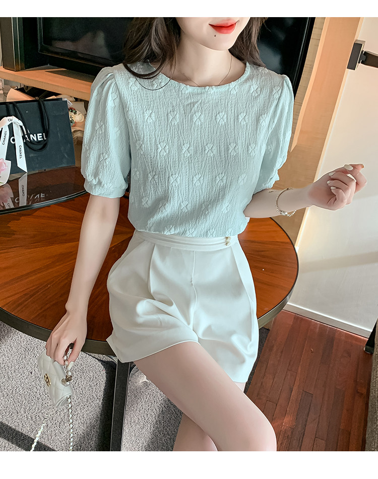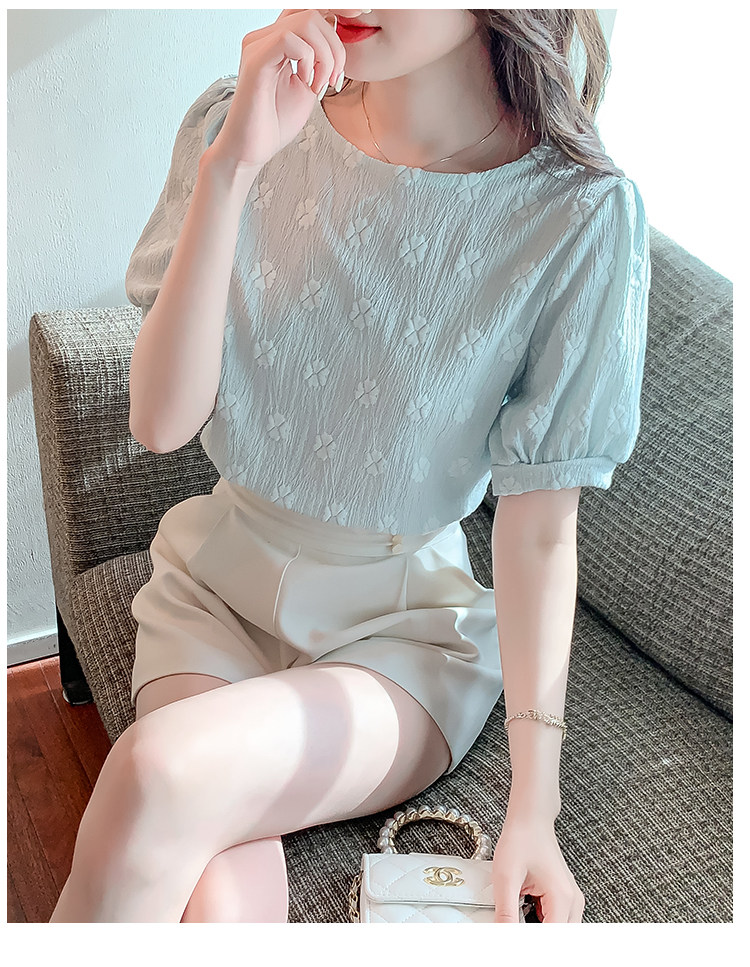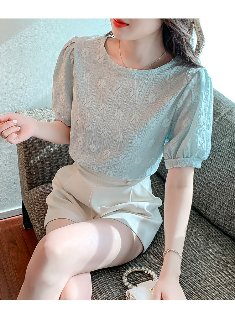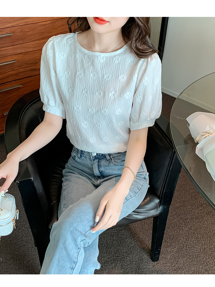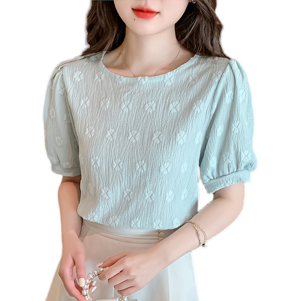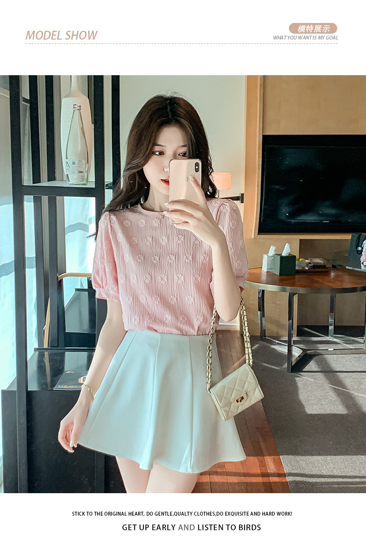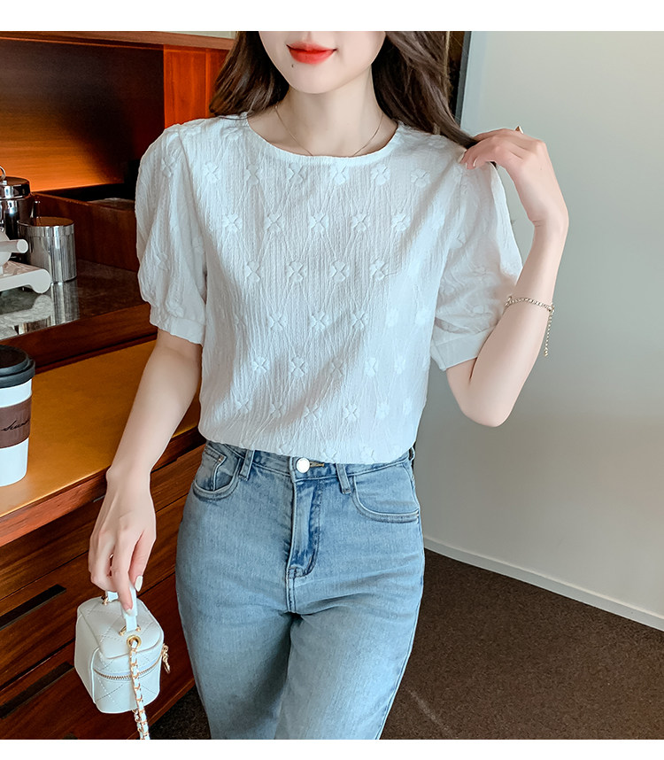 RM12365#夏装新款甜美花朵圆领宽松短袖上衣百搭显瘦温柔小衫t恤
