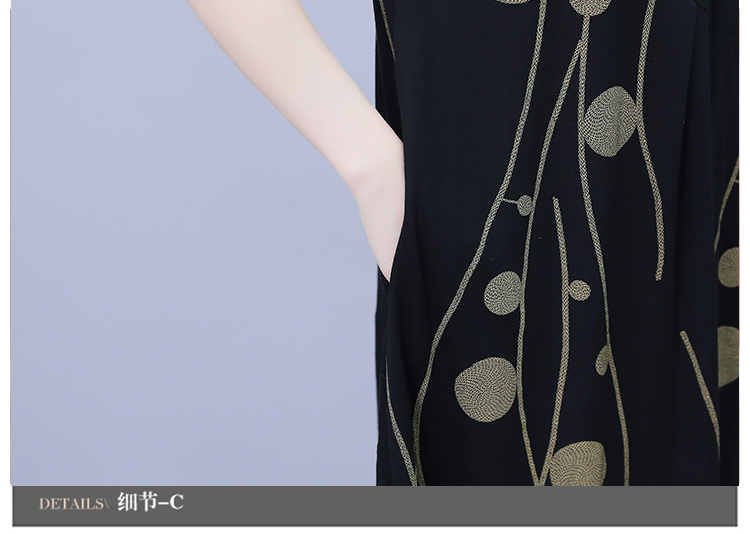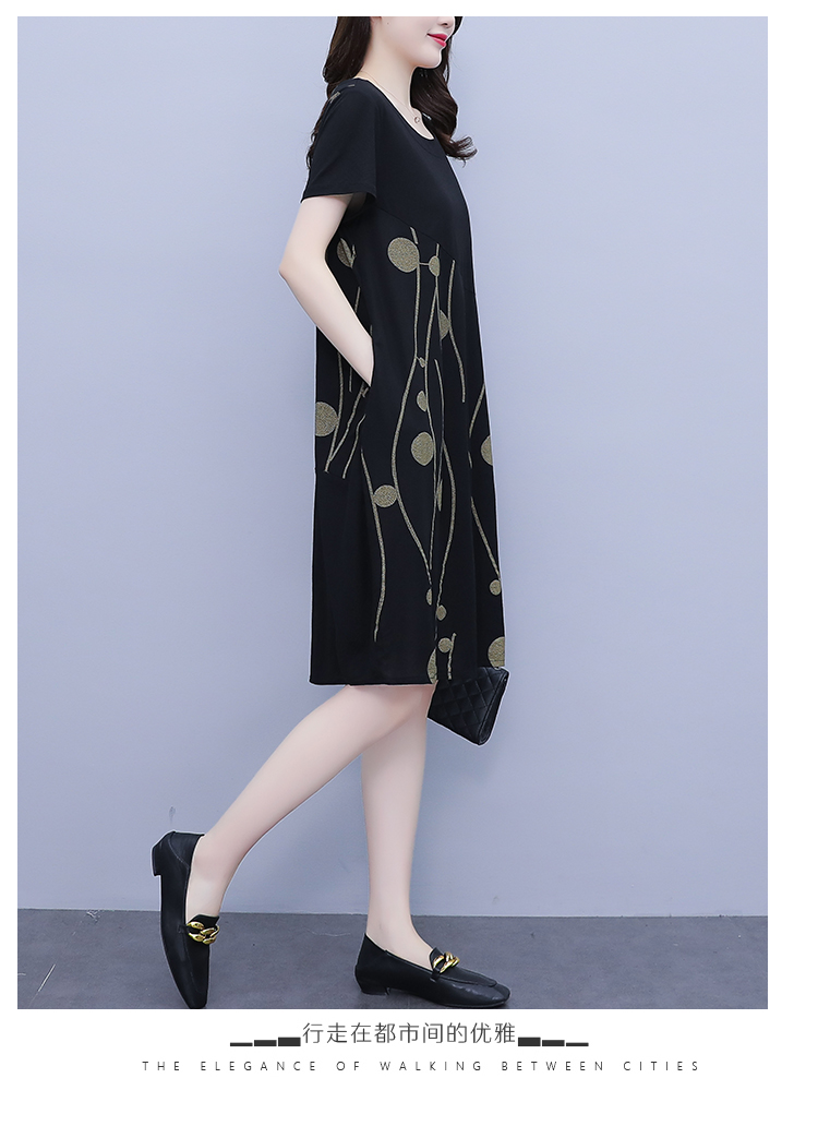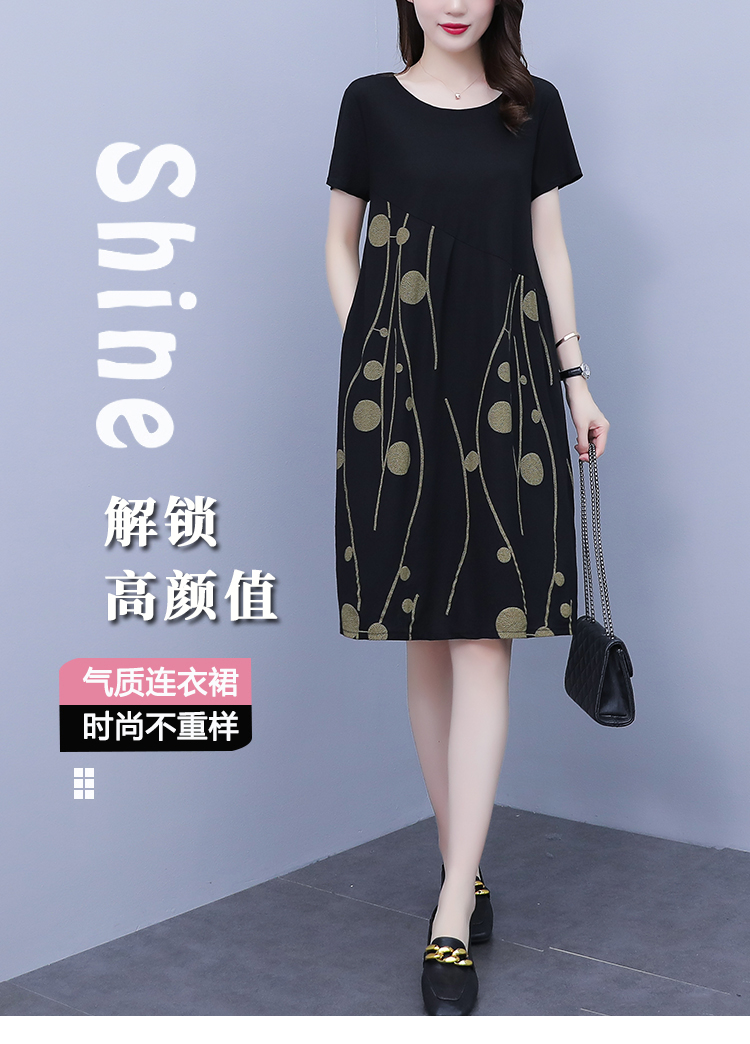 RM12382#大码女装2023年夏装新款时尚棉麻印花宽松显瘦遮肚子中长款连衣裙