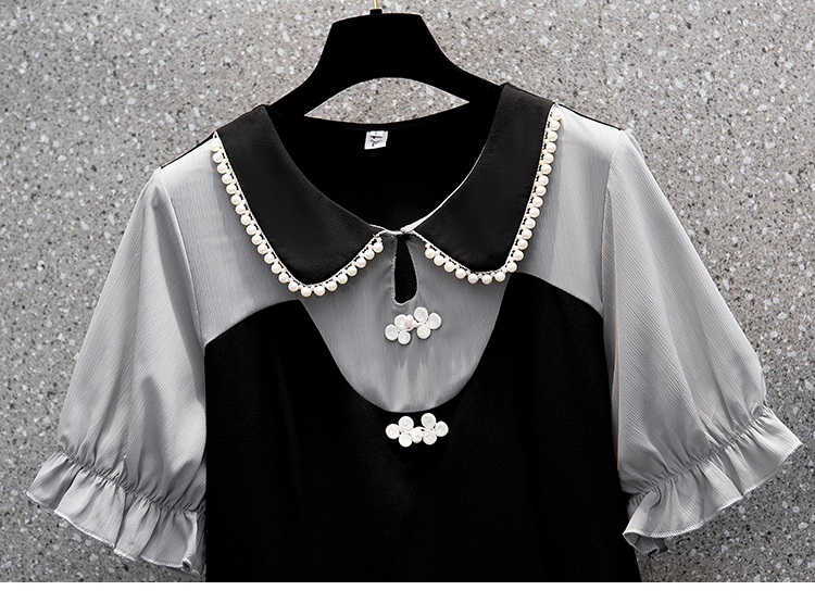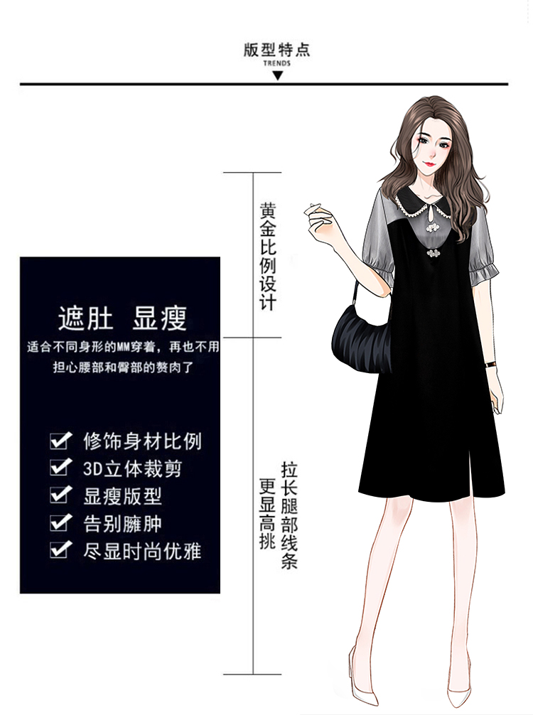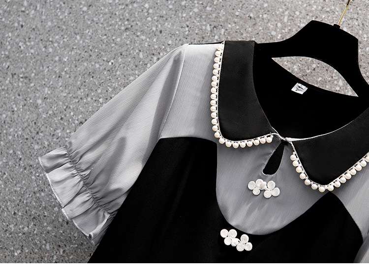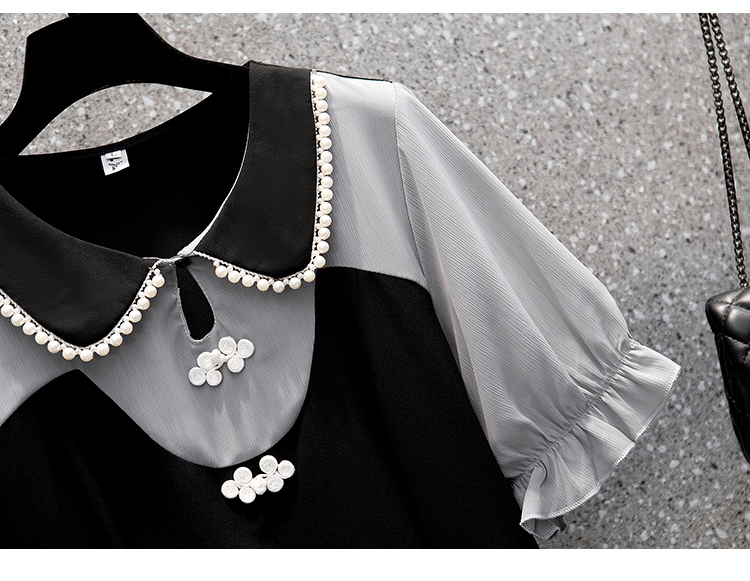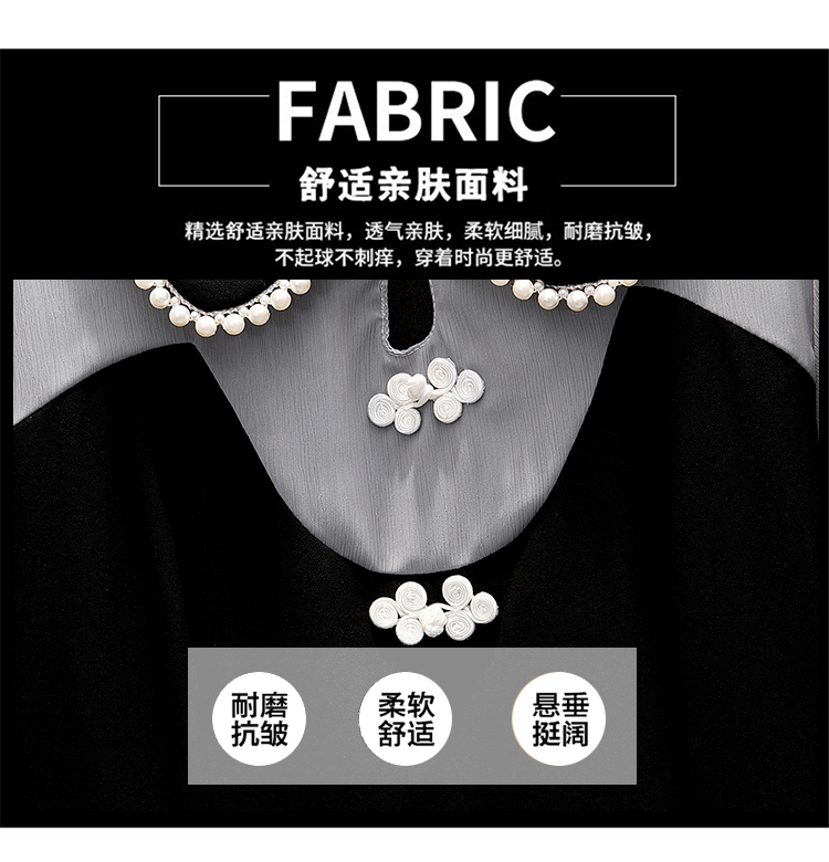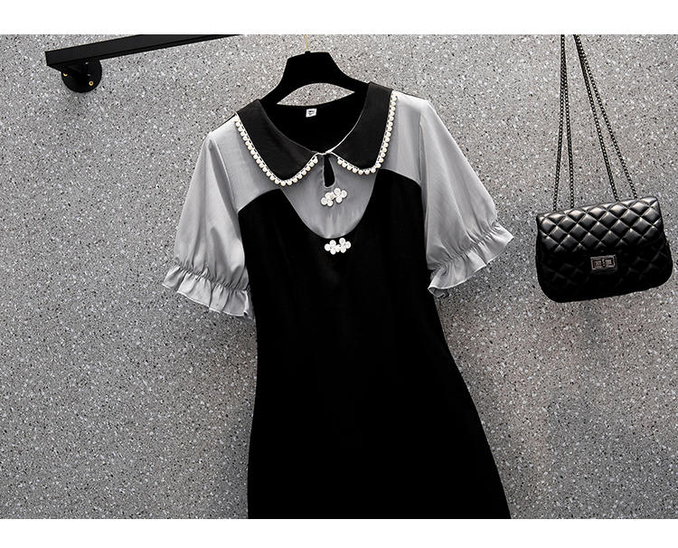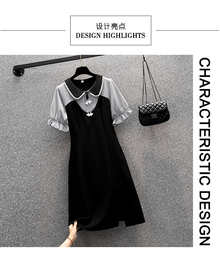 RM12435#夏季珍珠翻领显瘦中长款过膝旗袍改良大码气质连衣裙