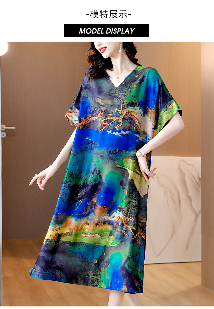 RM12474#真丝连衣裙女夏季2023新款中年妈妈复古红云纱重磅桑蚕丝裙子