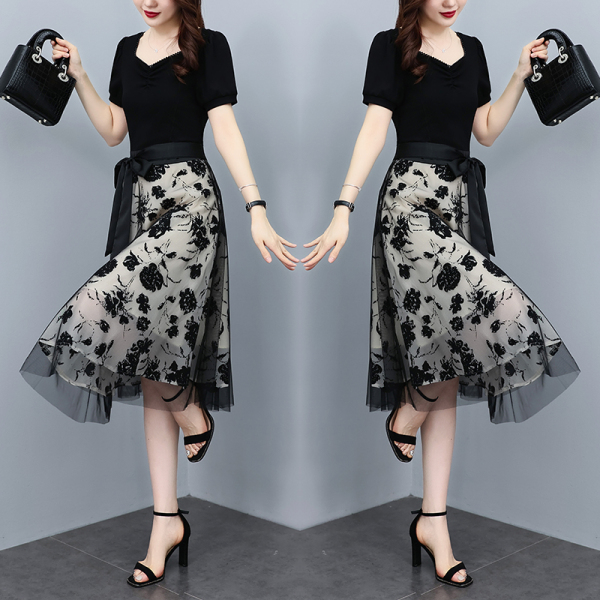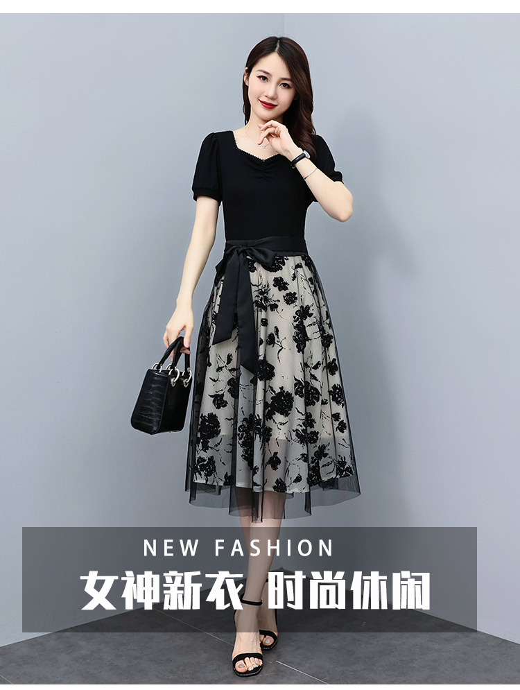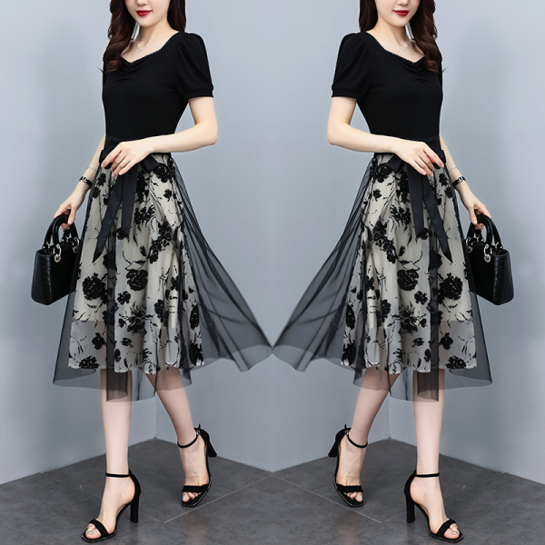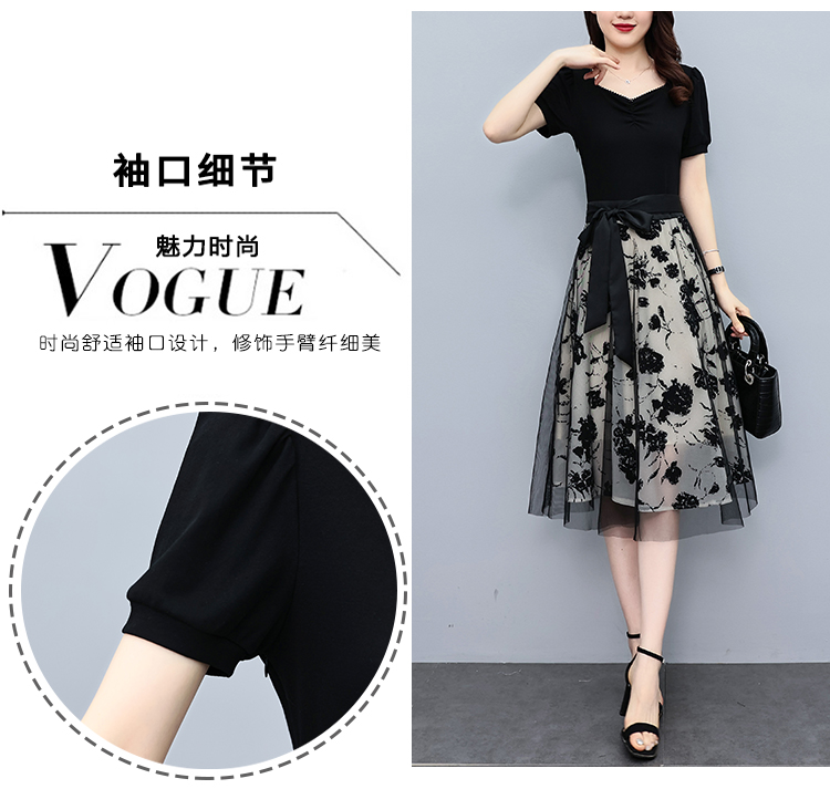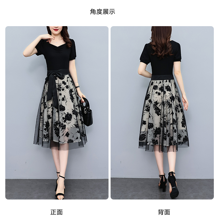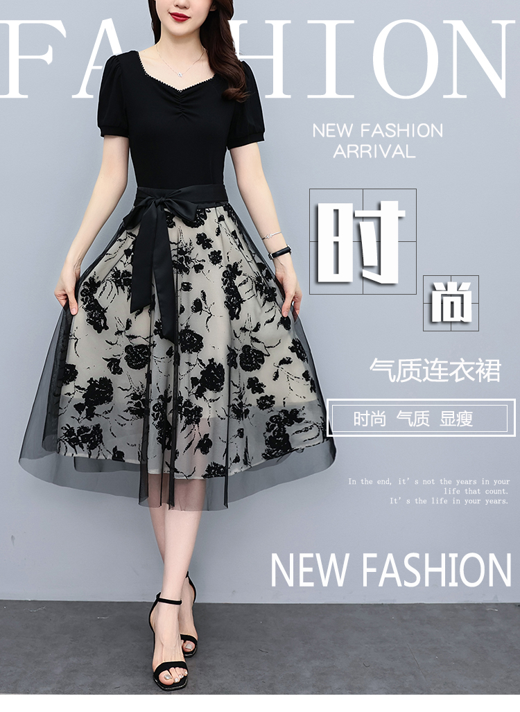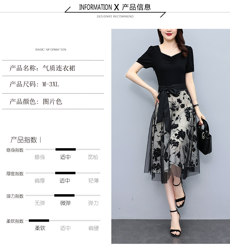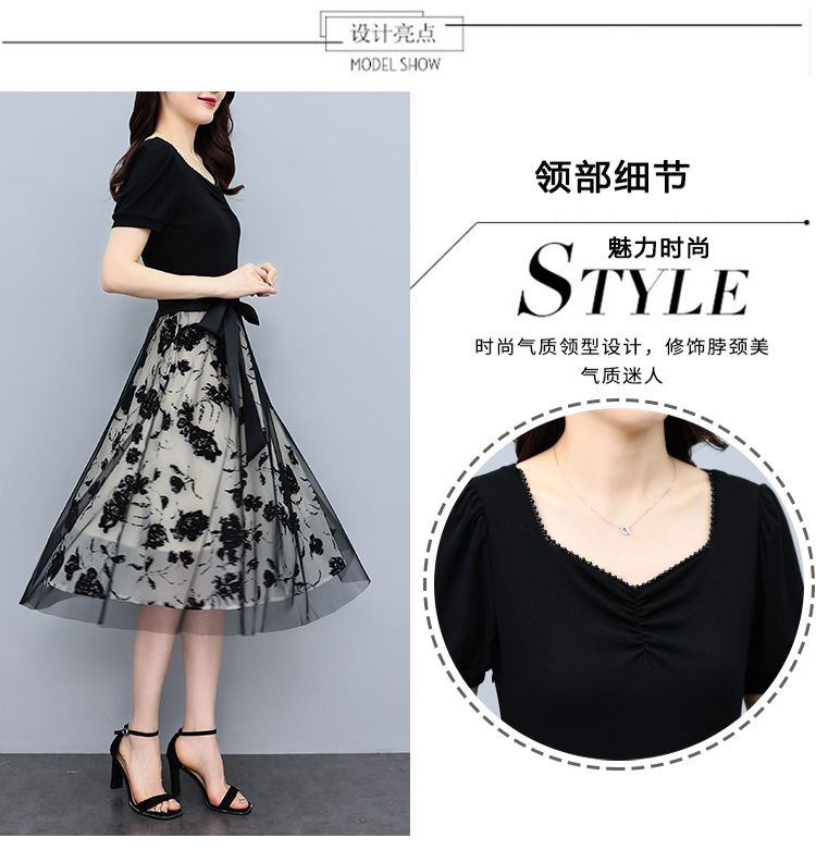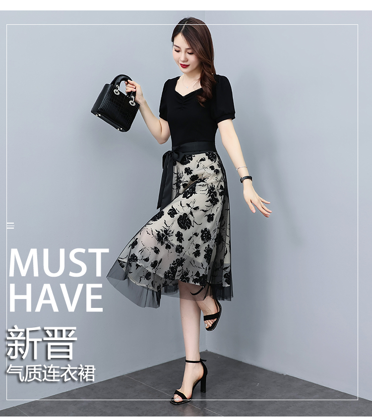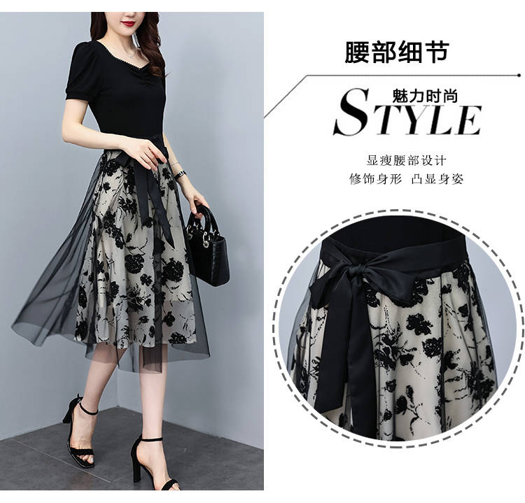 RM12542#假两件连衣裙女夏季2023新款高级感气质减龄洋气遮肚网纱拼接裙子
