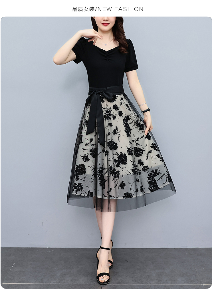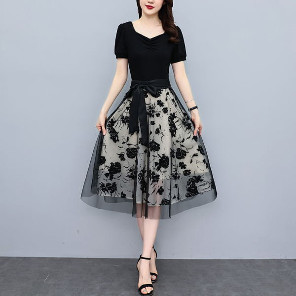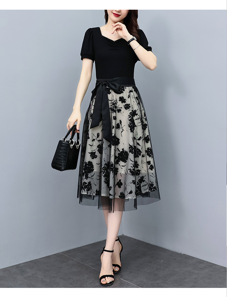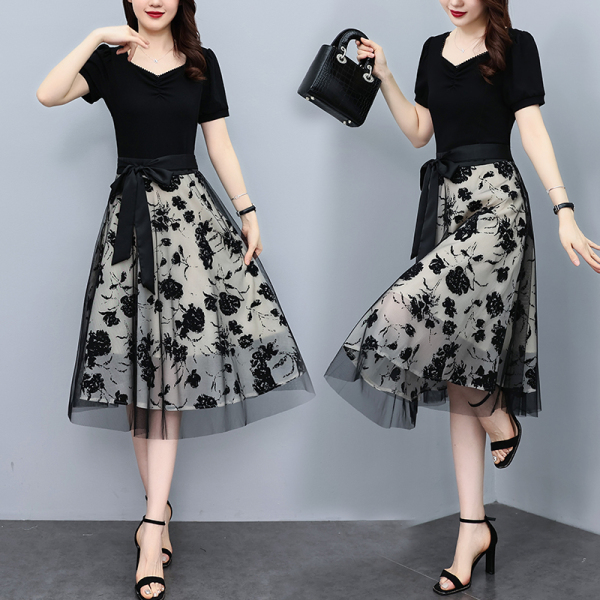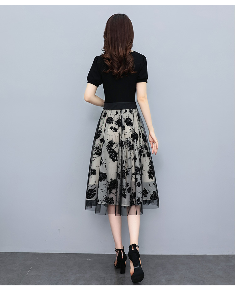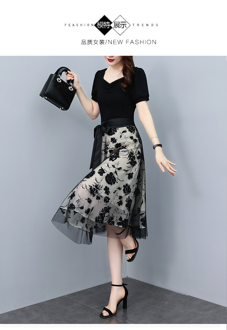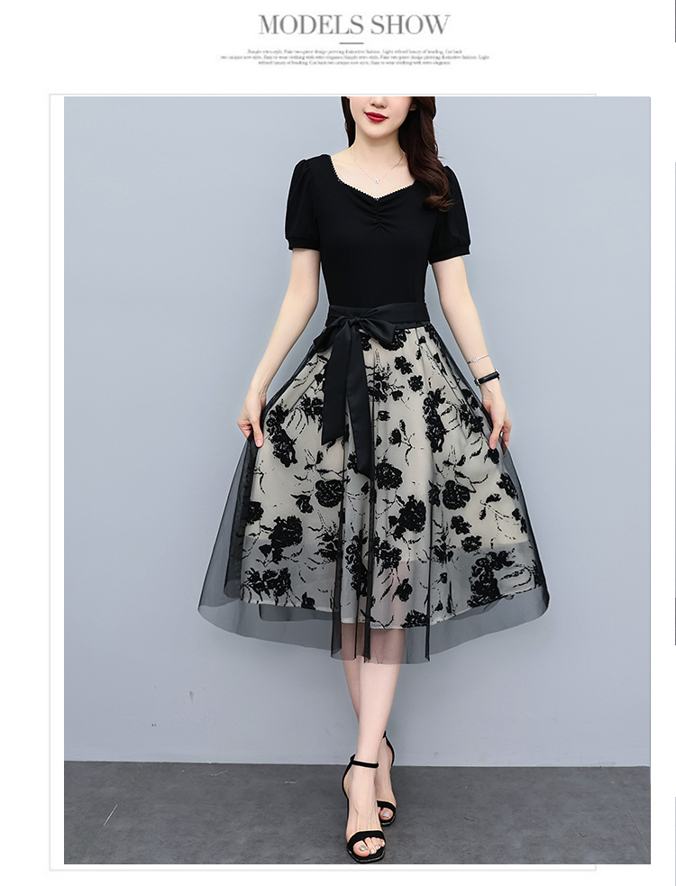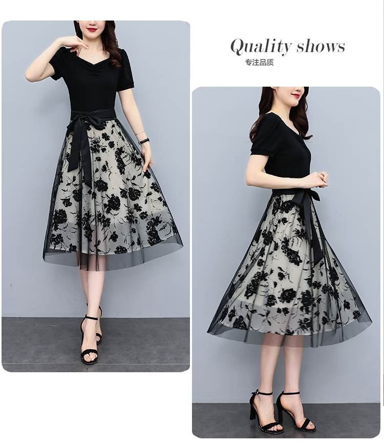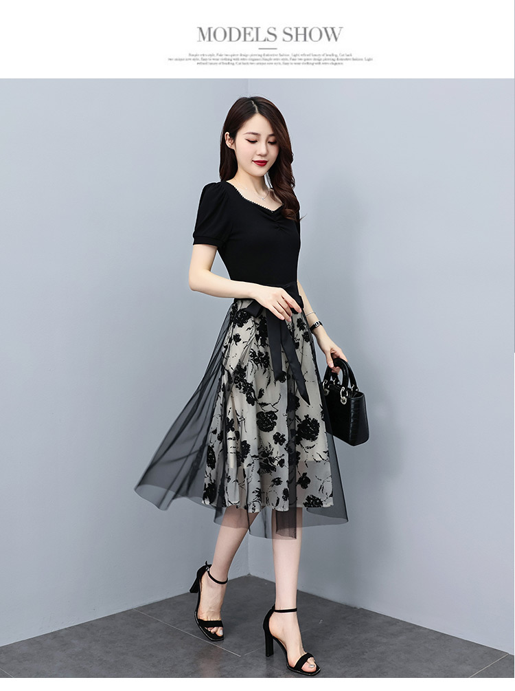 RM12542#假两件连衣裙女夏季2023新款高级感气质减龄洋气遮肚网纱拼接裙子
