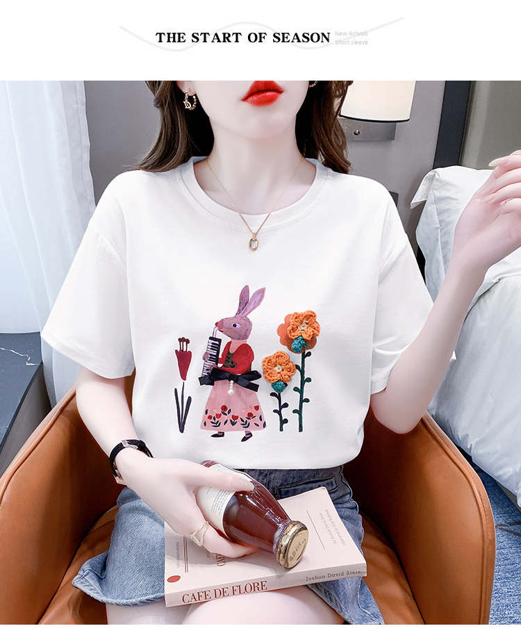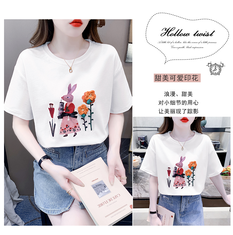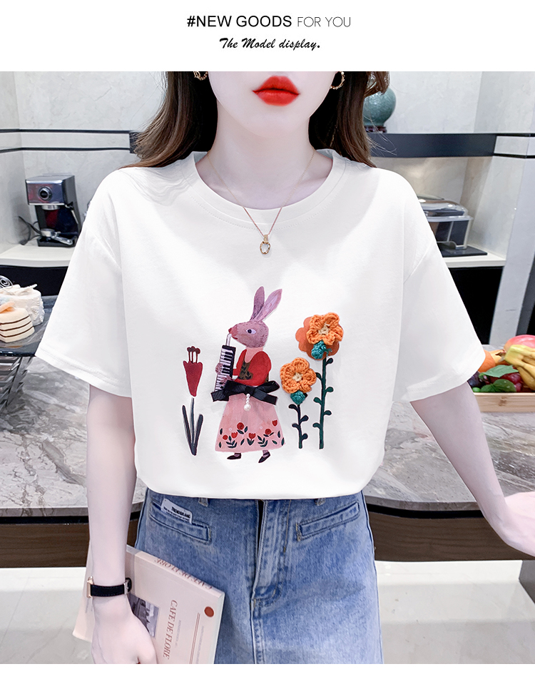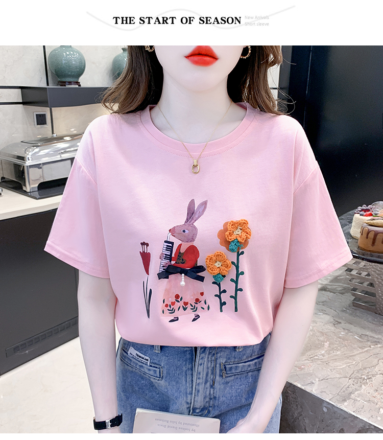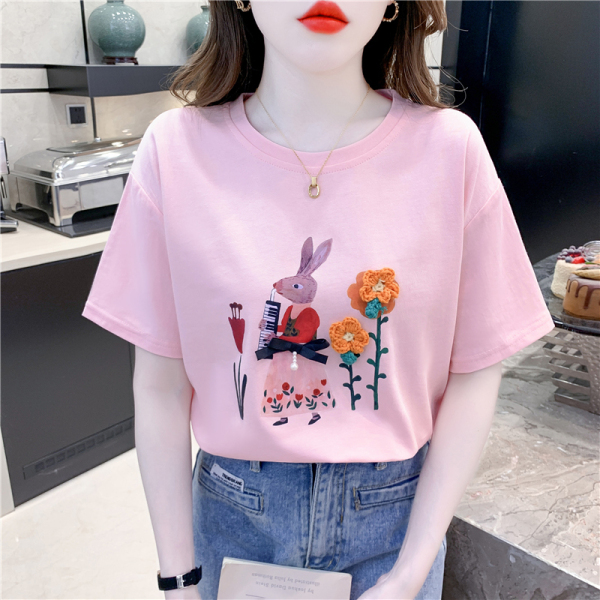 RM12585#夏新款卡通小兔立体花朵短袖圆领t恤女百搭宽松显瘦上衣