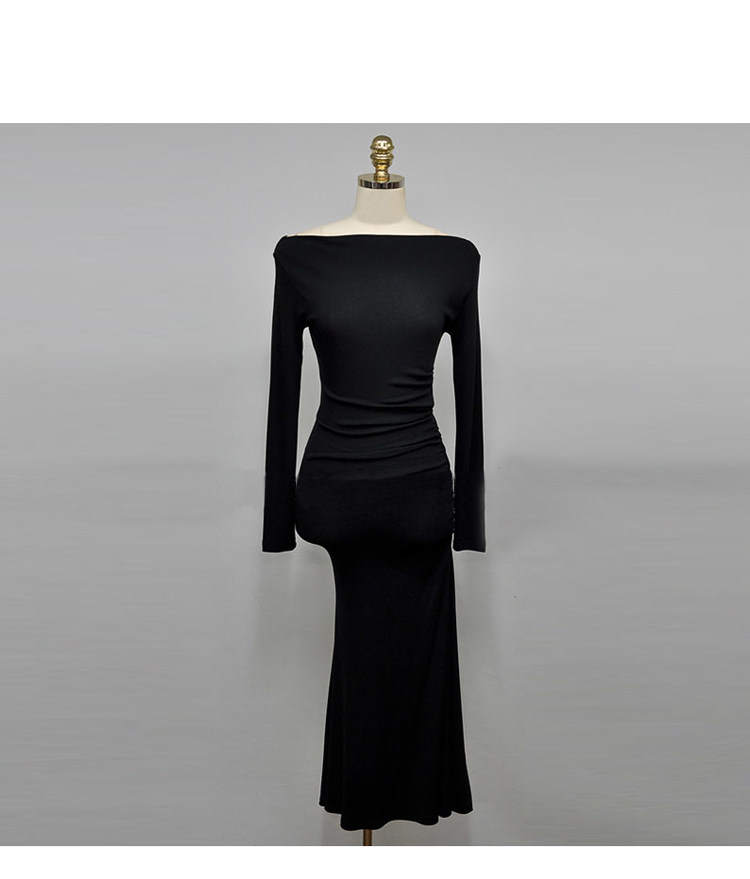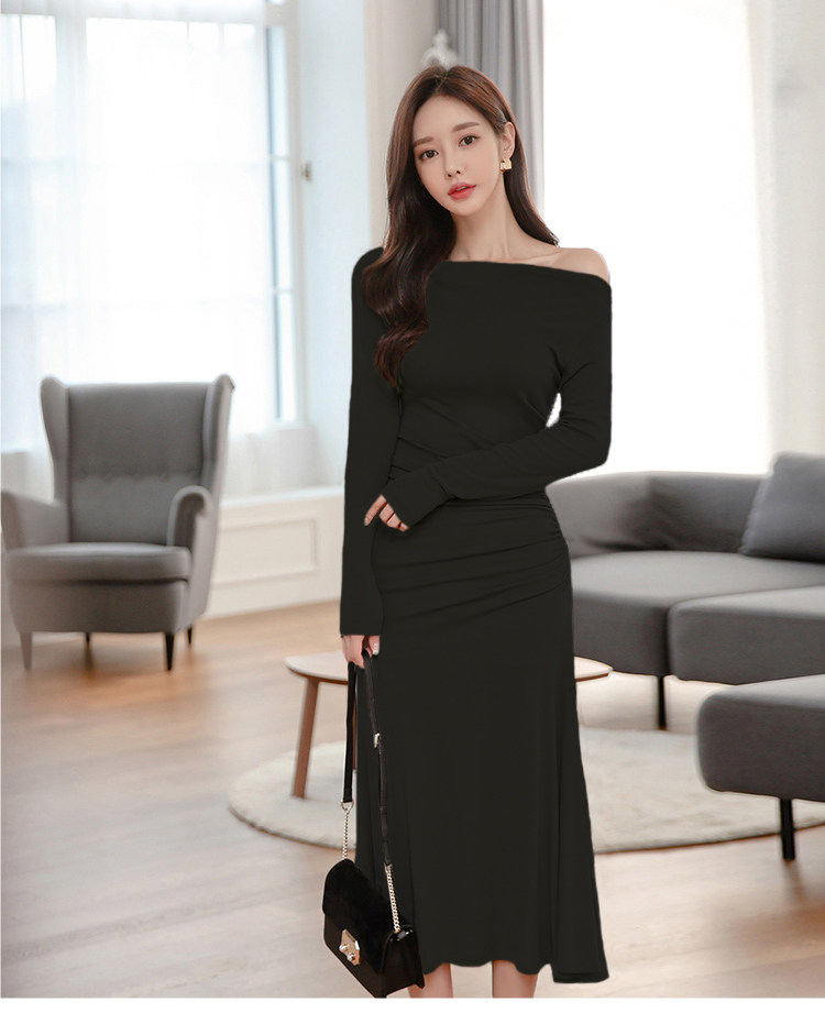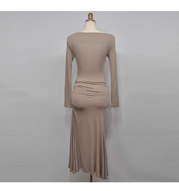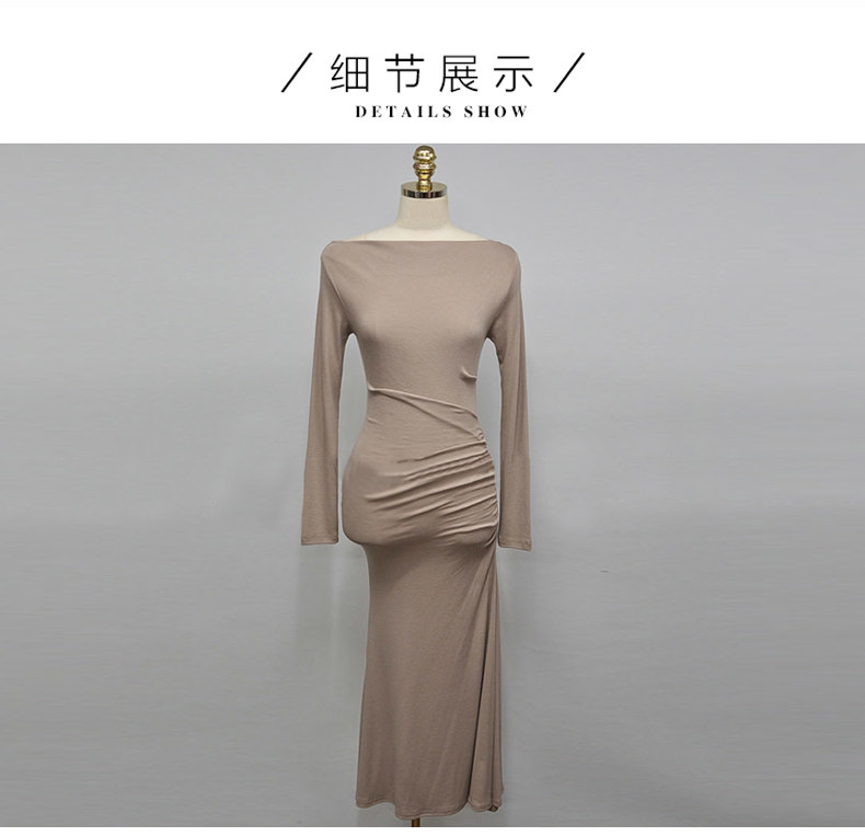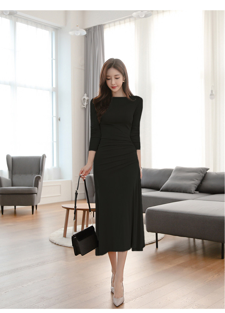 RY1533#秋装连衣裙修身紧身包臀气质收腰显瘦轻熟风长袖打底长裙