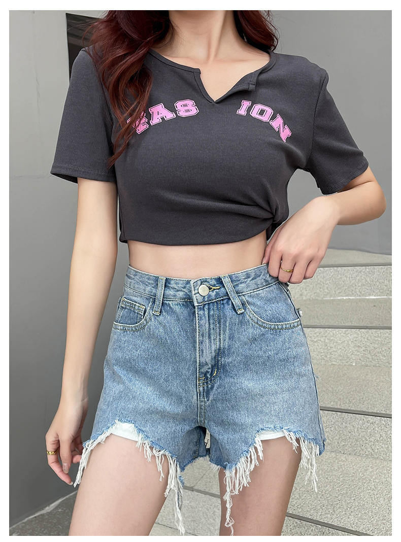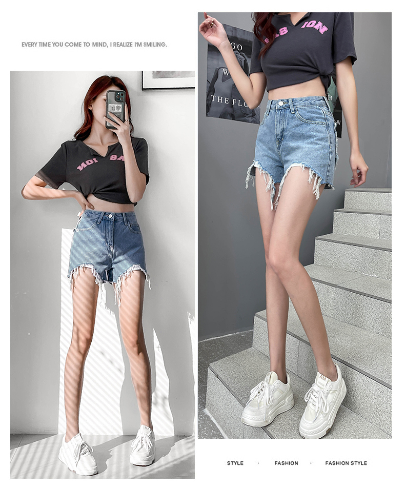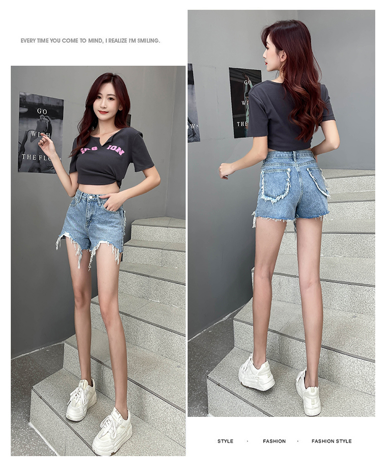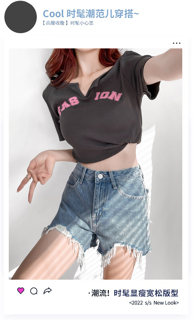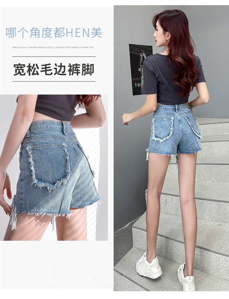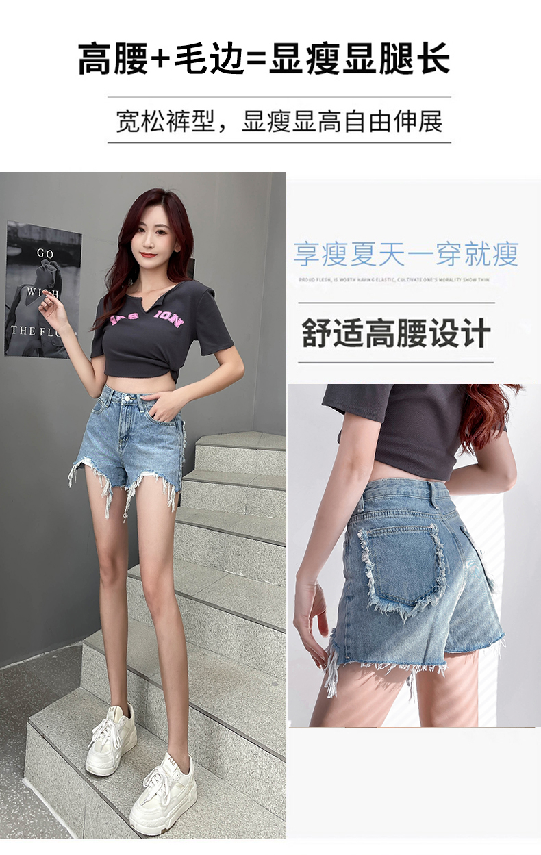 RM12738#甜辣高腰毛边牛仔短裤女夏季2023辣妹a字网红显瘦流苏阔腿热裤子