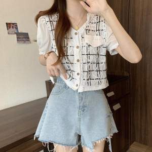 RM12801#夏季新款大码花边拼接雪纺袖简约时尚短袖开衫
