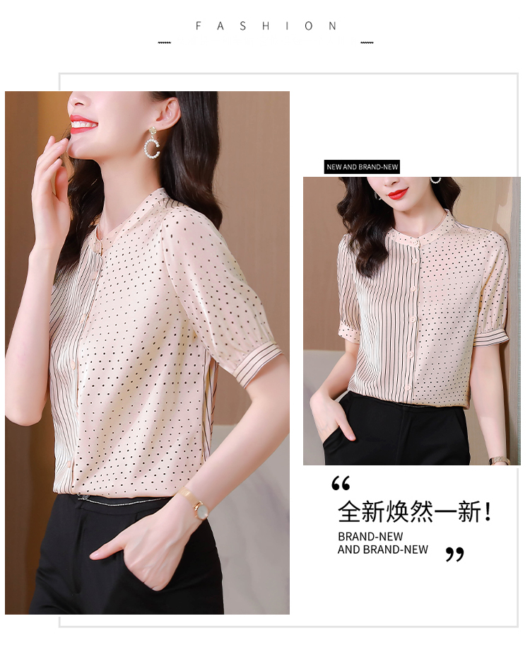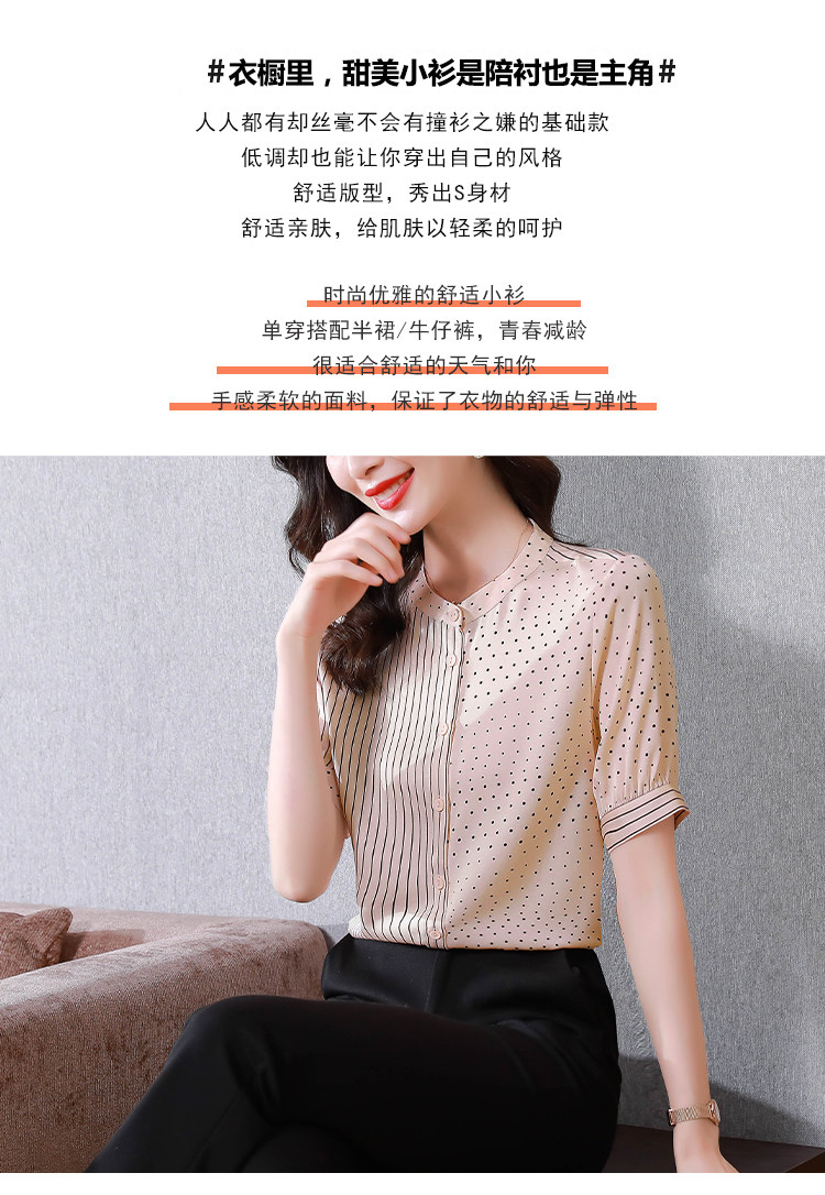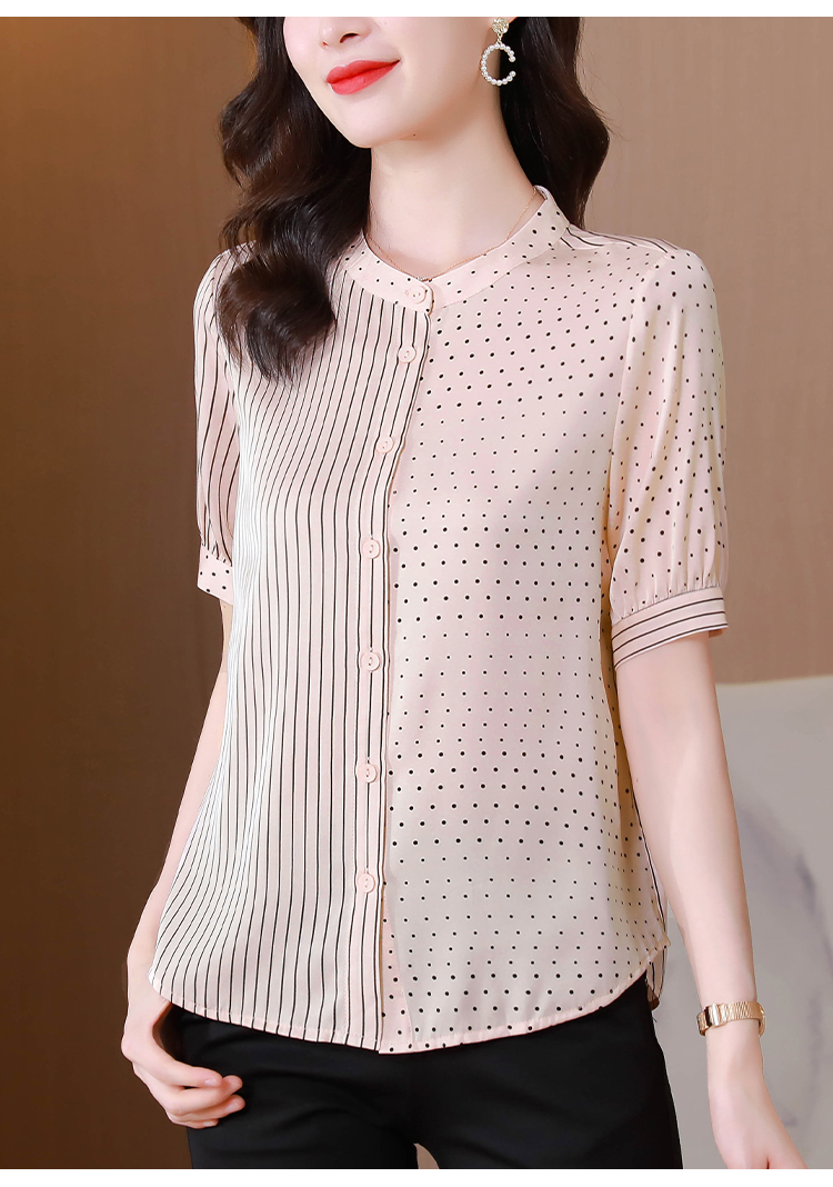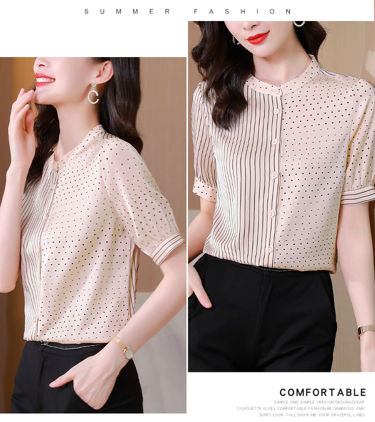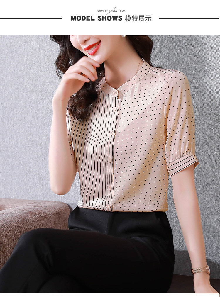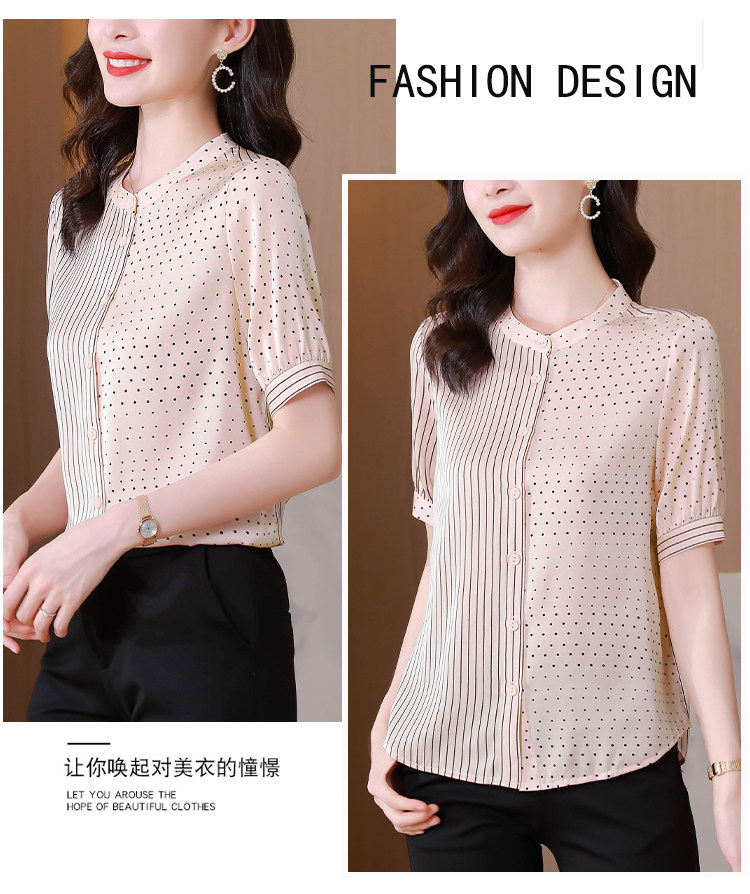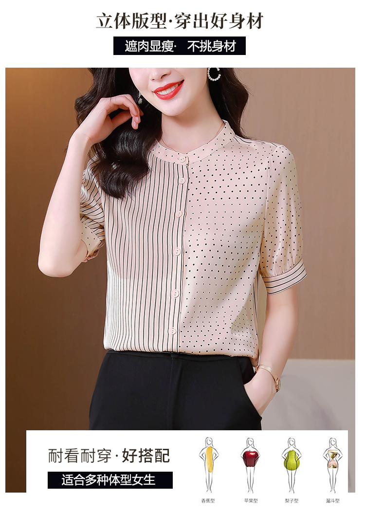 RM12822#夏季大码短袖圆点印花立领桑蚕丝减龄女士衬衫百搭真丝上衣