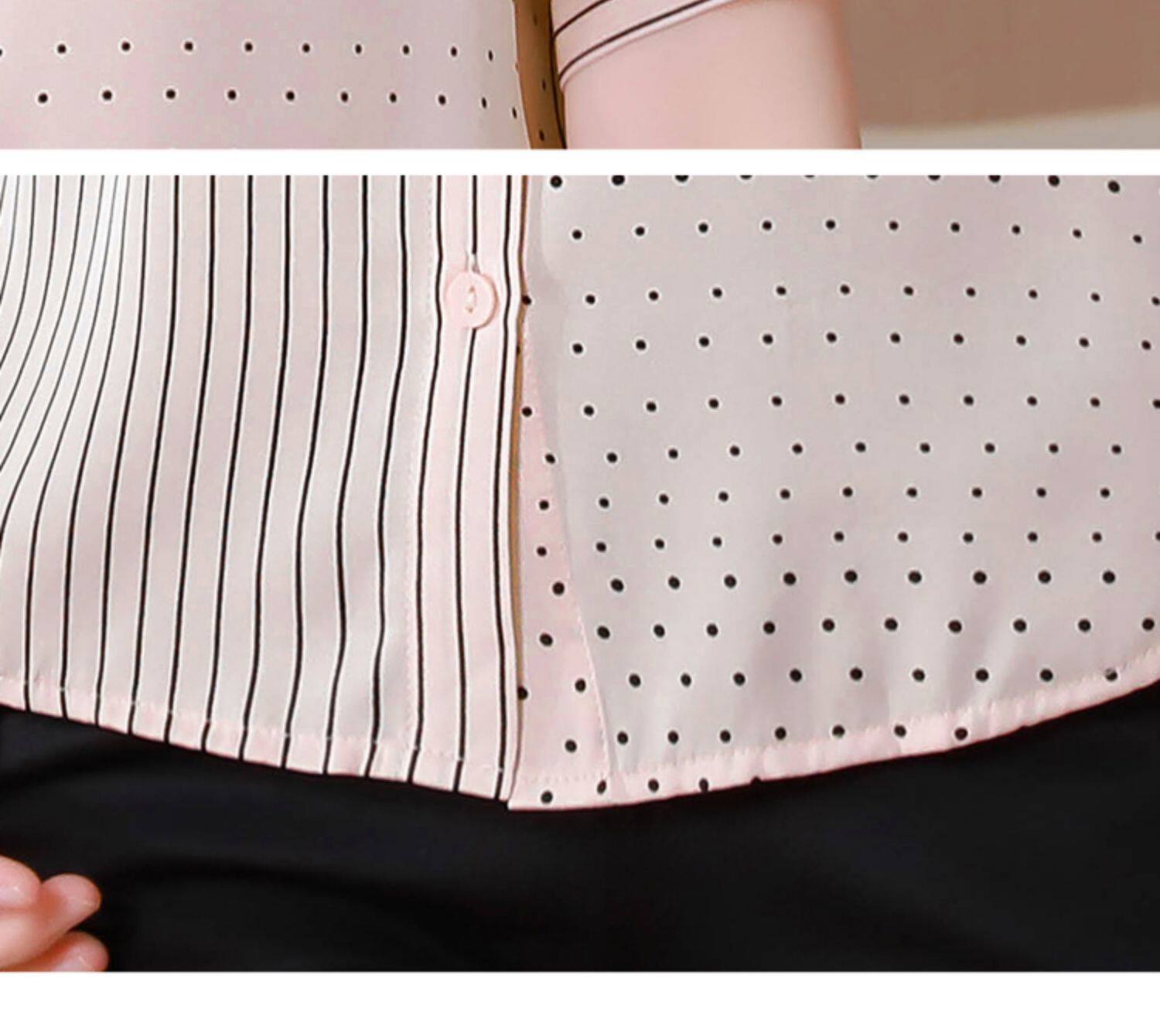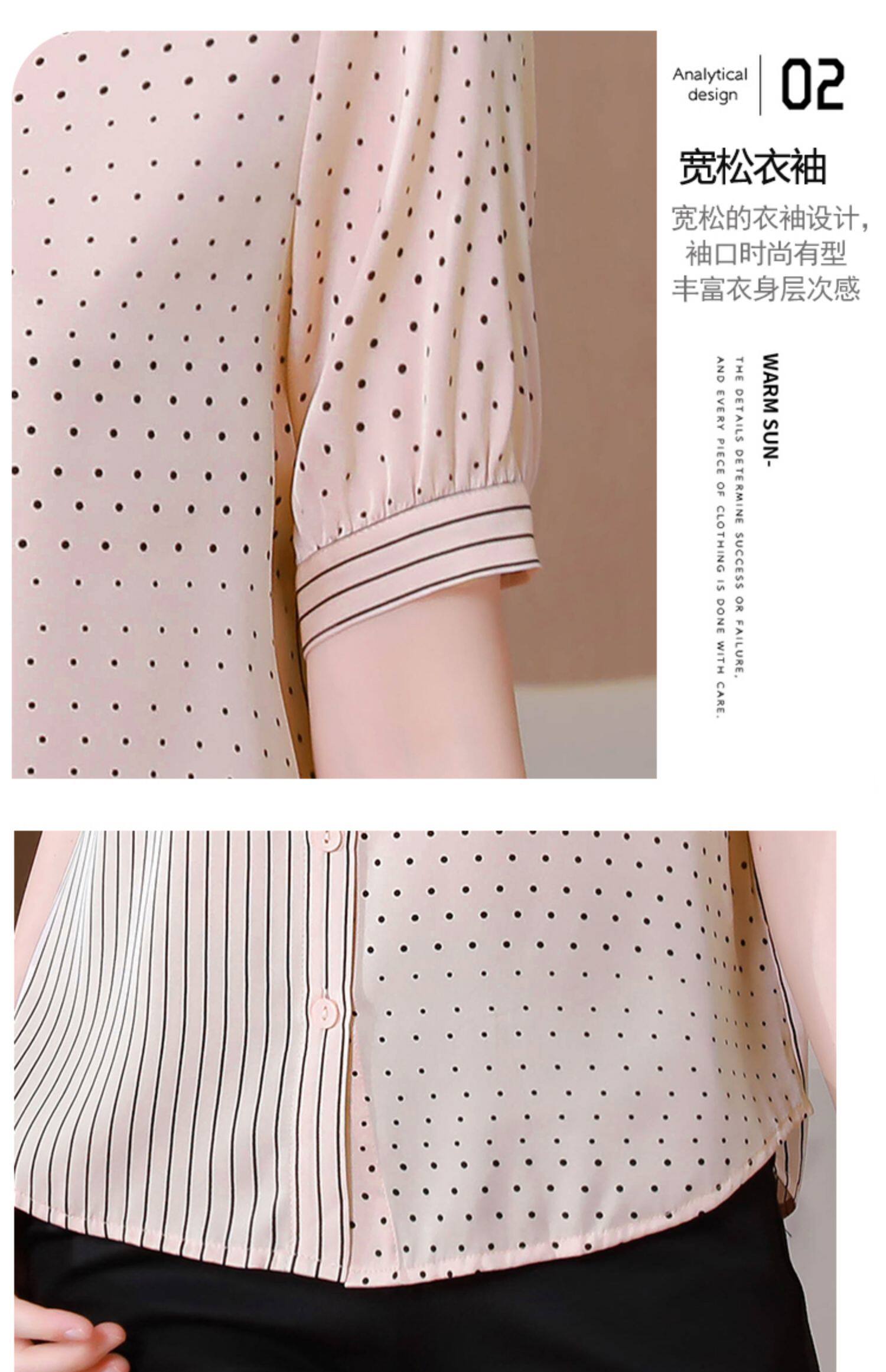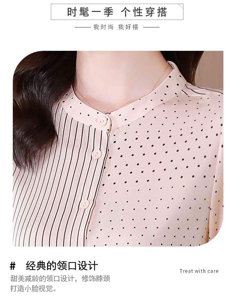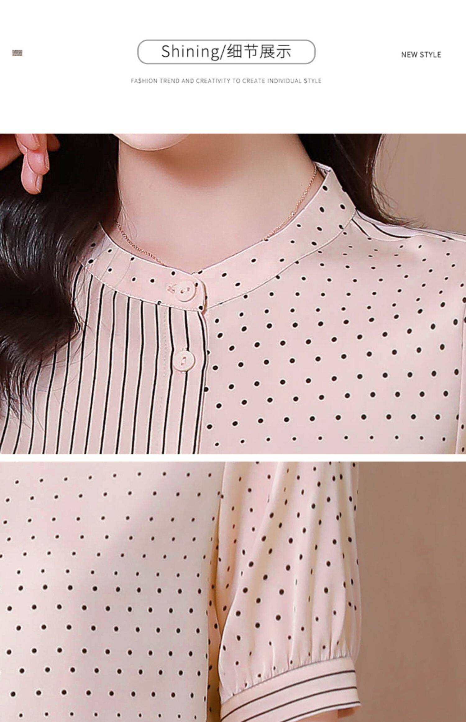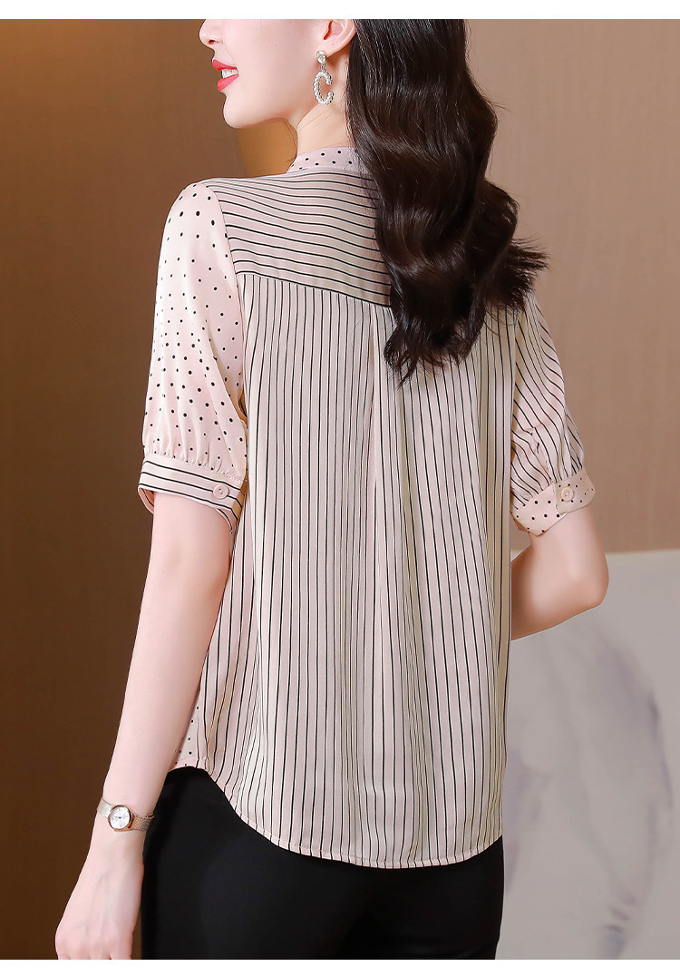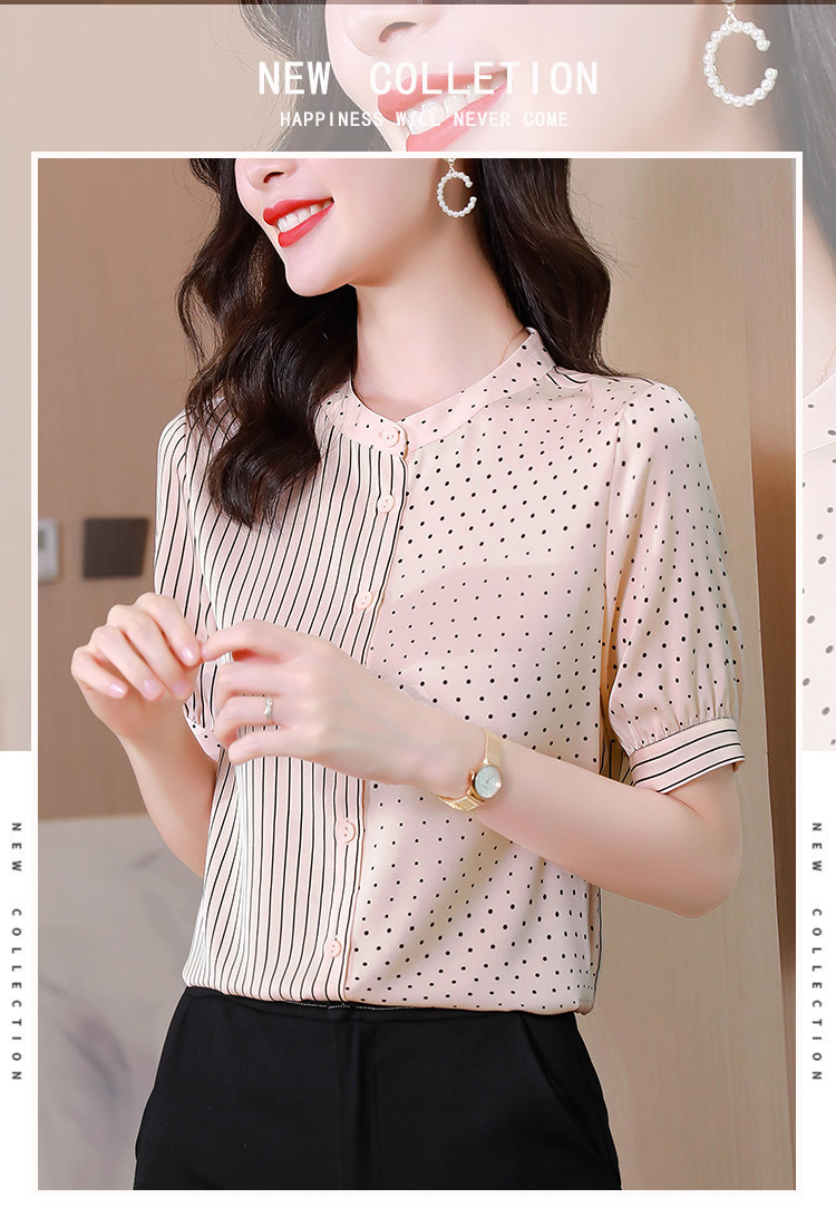RM12822#夏季大码短袖圆点印花立领桑蚕丝减龄女士衬衫百搭真丝上衣