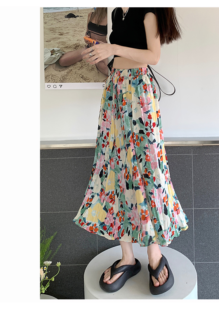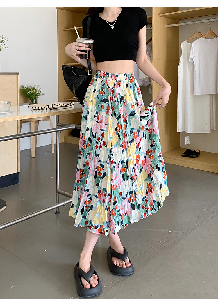 RM12905#韩版茶系穿搭套装2023春夏宽松衬衫印花半身裙长裙