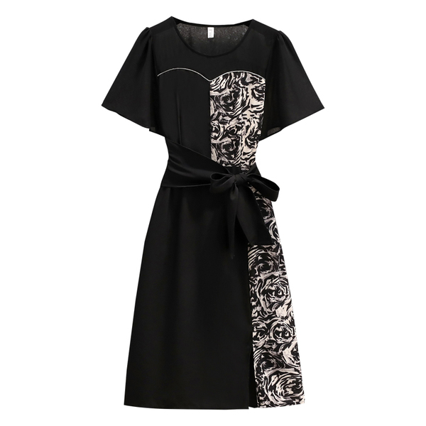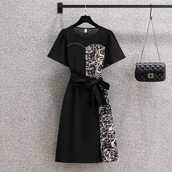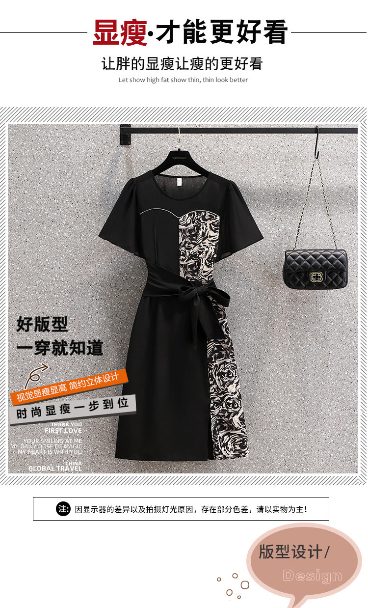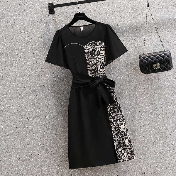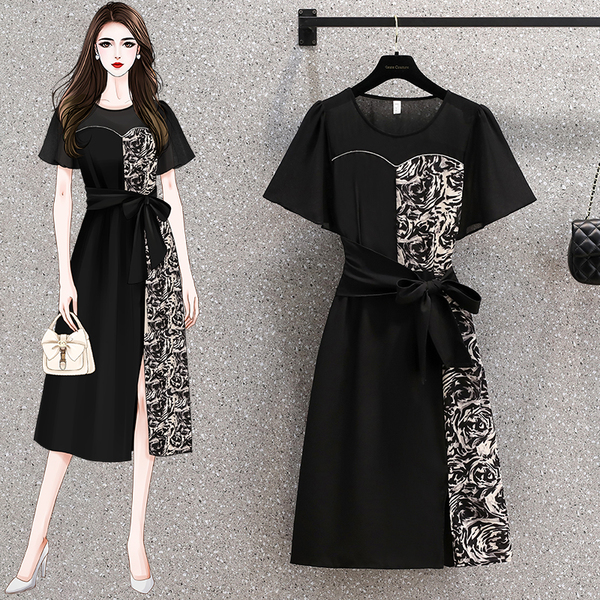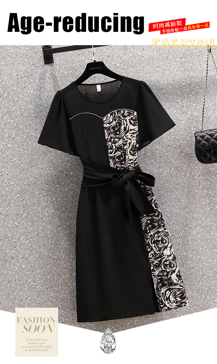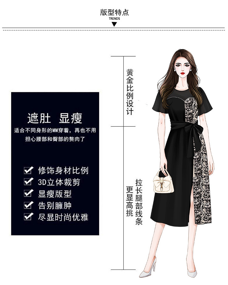 RM12978#夏季新款时尚大码拼接贵夫人百搭洋气高贵修身显瘦连衣裙