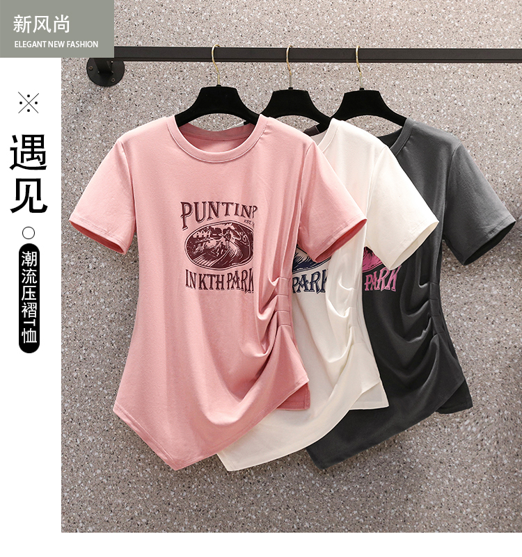RM13016#大码200斤不规则修身上衣女夏季新款设计感小众短袖T恤