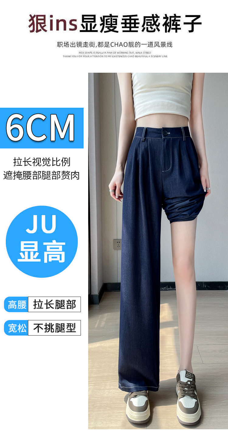 RM13138#天丝牛仔阔腿裤女2023夏季新款冰丝高腰垂感宽松直筒拖地裤