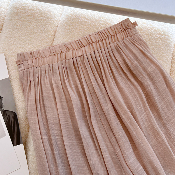 RM13214#复古冰丝麻棉百褶飘飘阔腿长裙裤女春夏掐腰垂感百搭大摆休闲裤子
