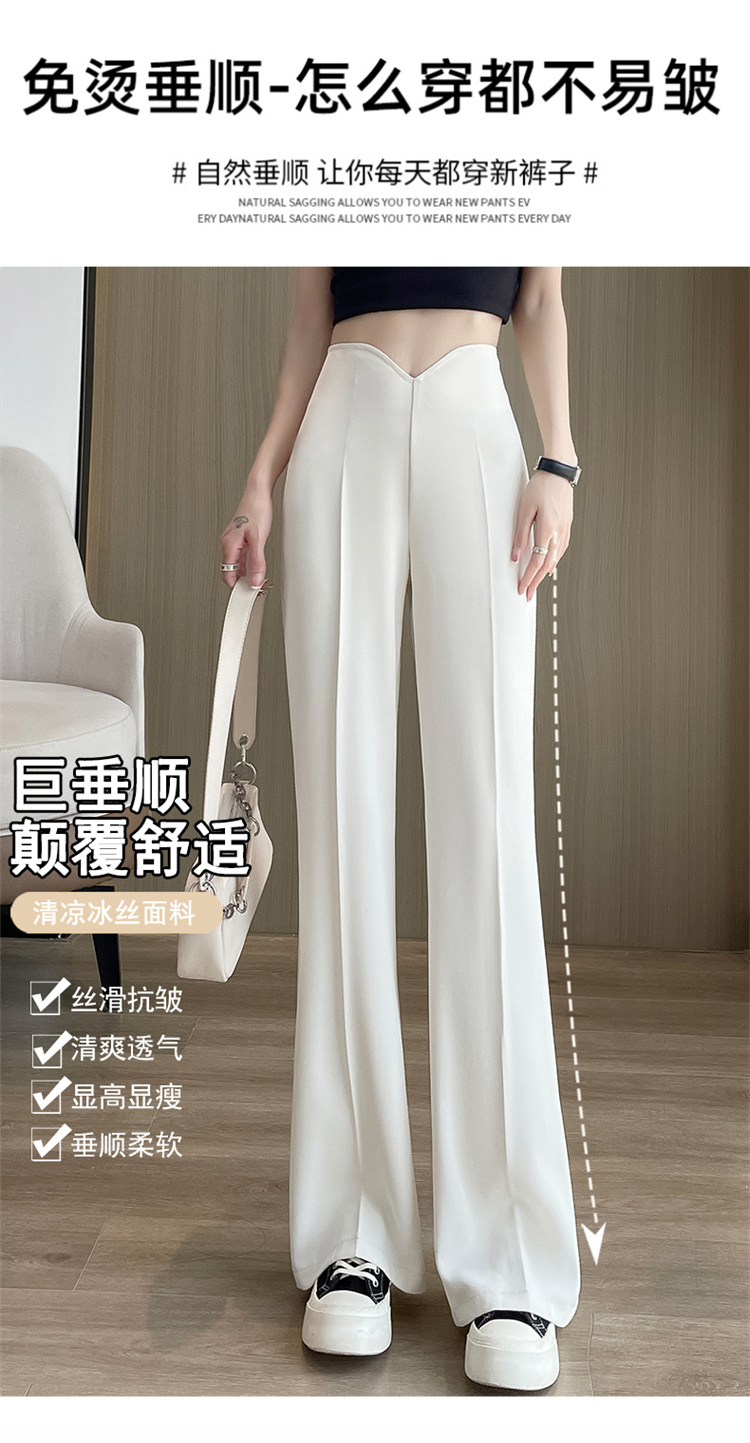 RM13226#夏季冰丝西装裤高腰窄版阔腿裤直筒大码薄款拖地裤女
