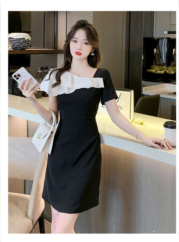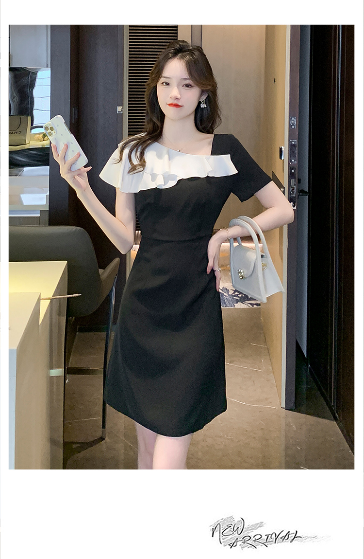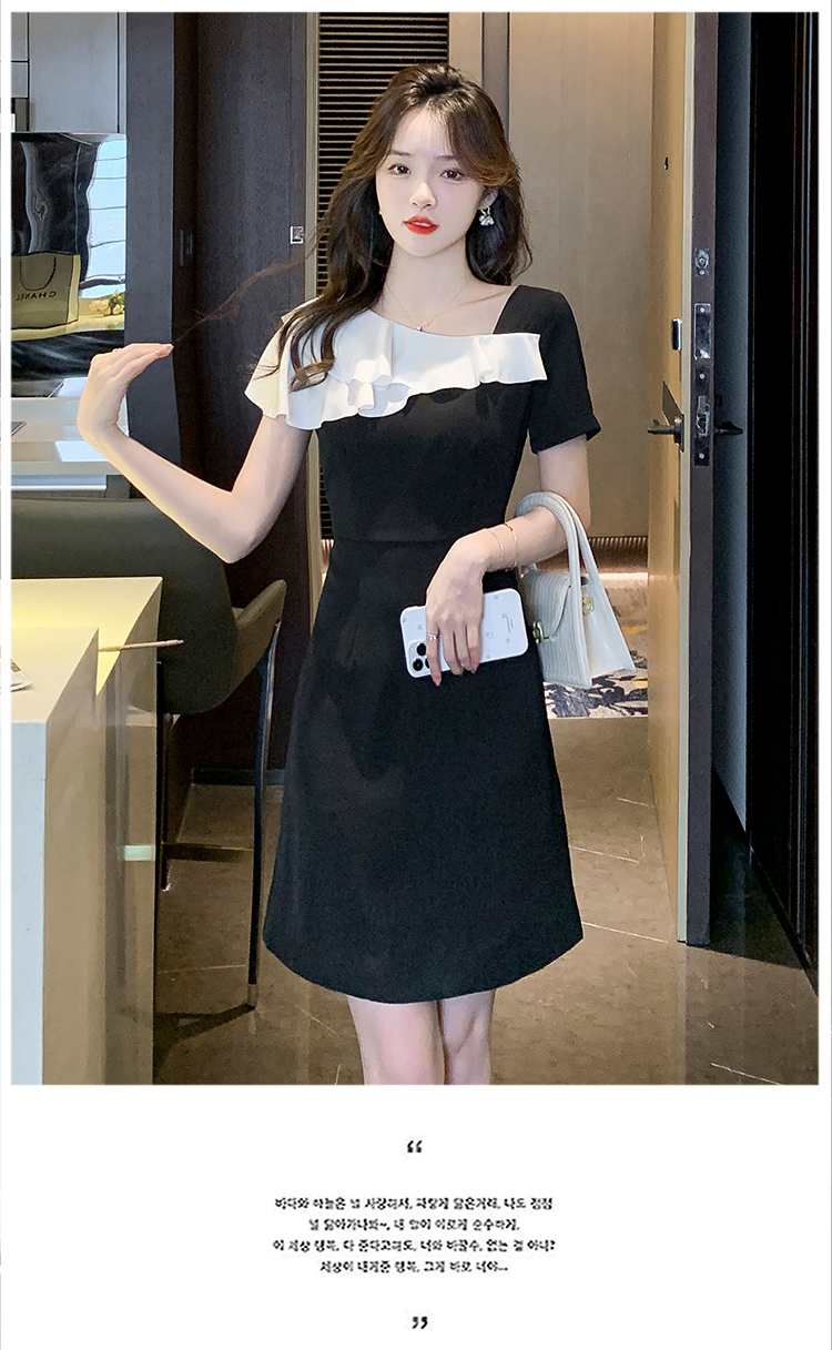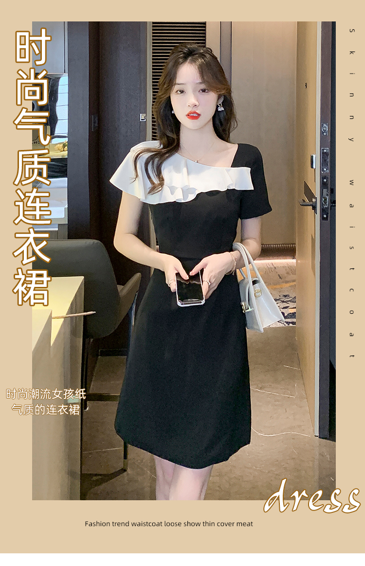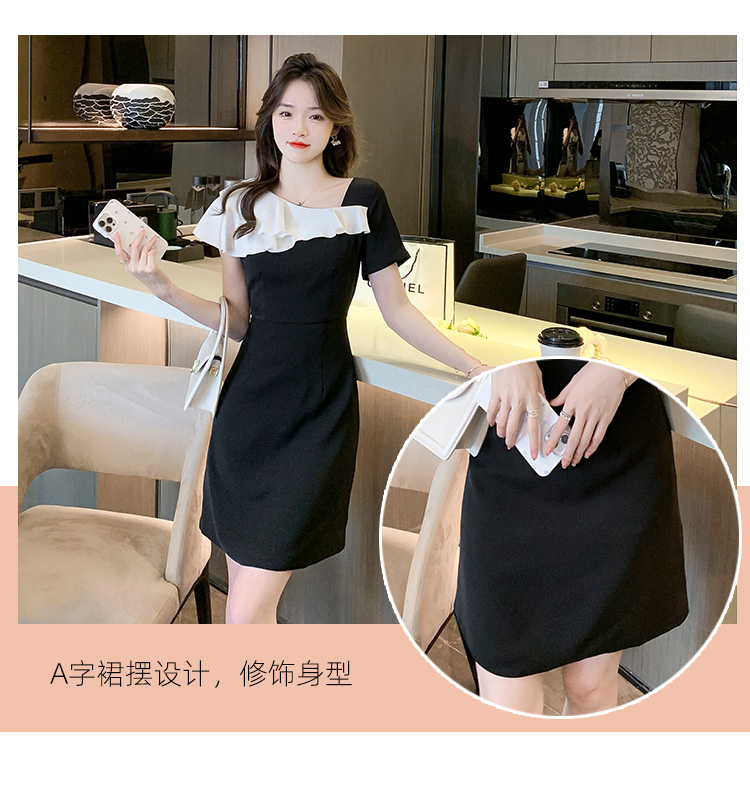 RM13237#小个子法式黑色荷叶边气质小个子连衣裙高级感夏女2023新款