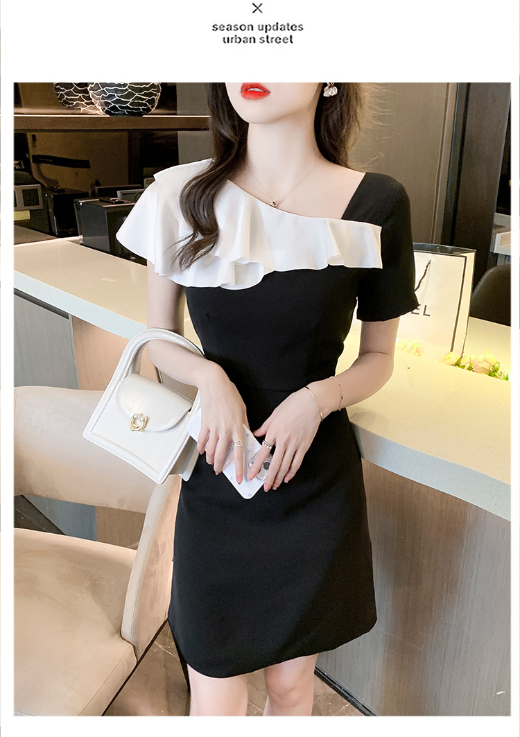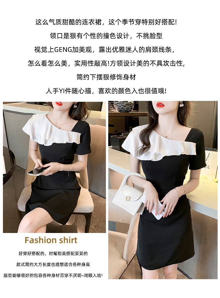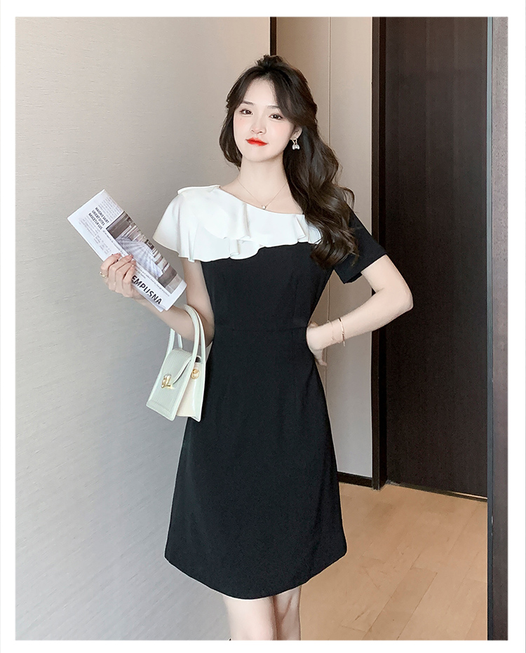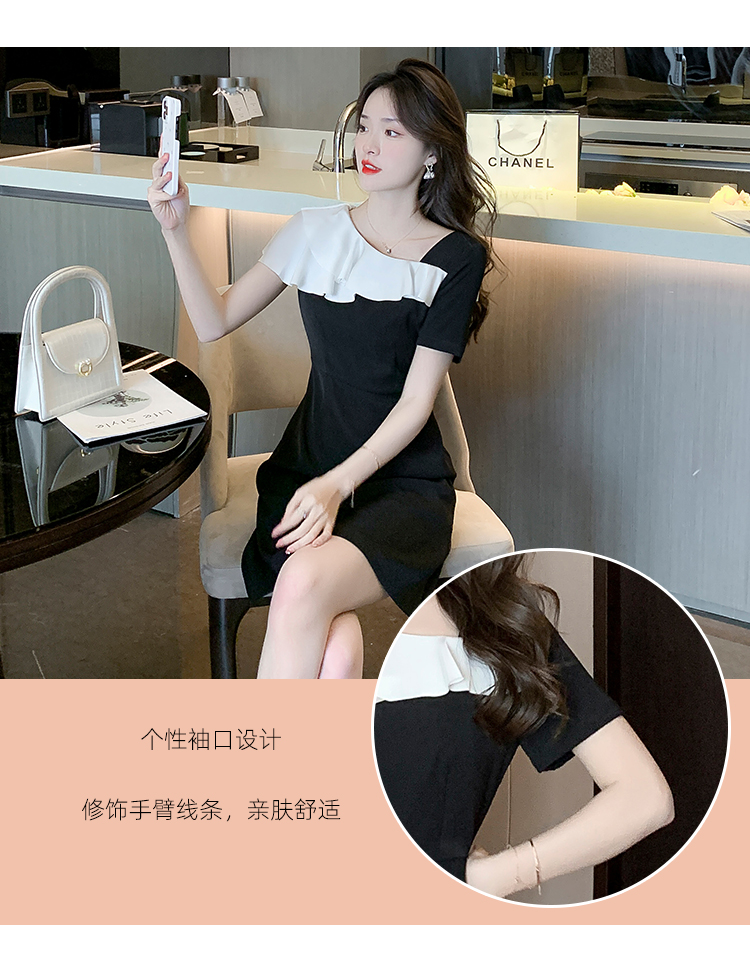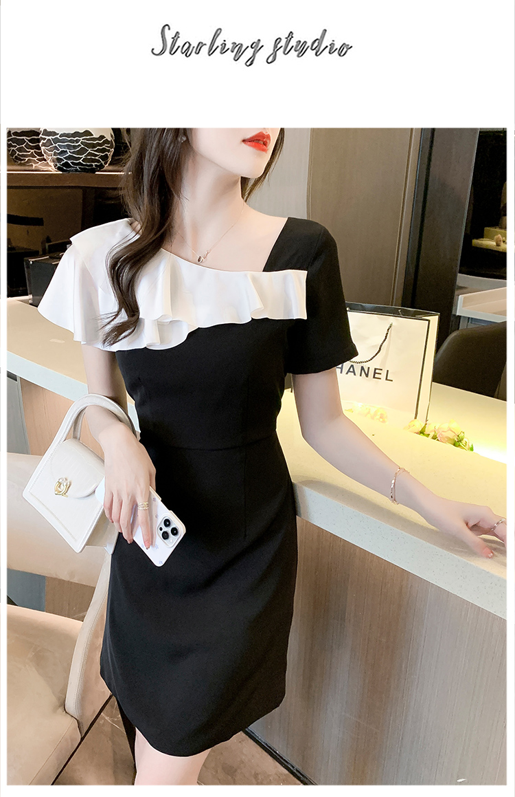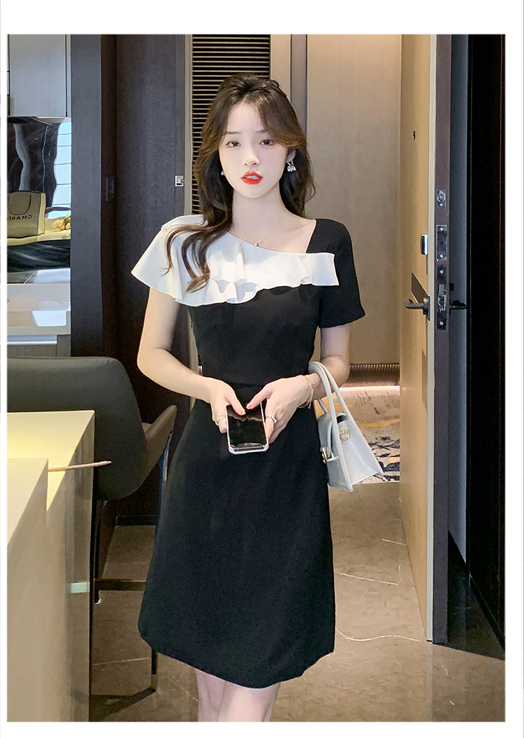RM13237#小个子法式黑色荷叶边气质小个子连衣裙高级感夏女2023新款