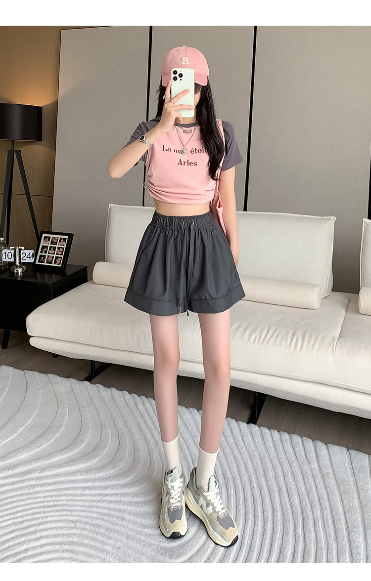 RM13373#高级感松紧腰高腰西装短裤子女阔腿宽松显瘦百搭2023夏新款