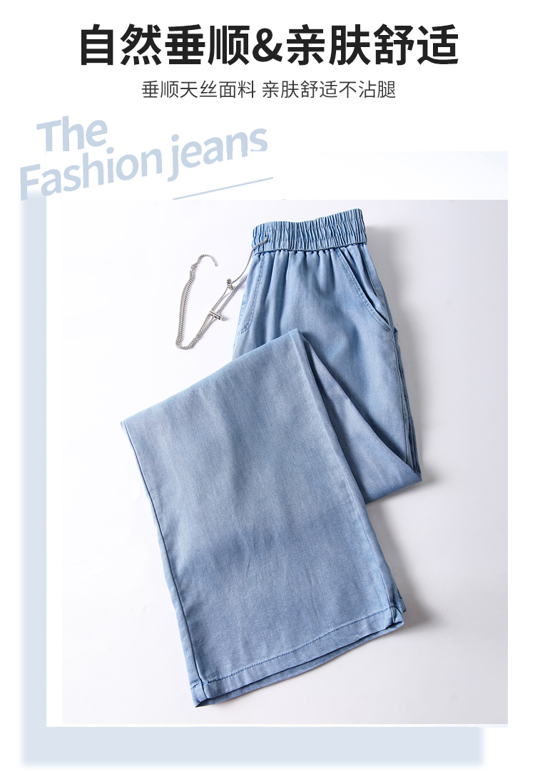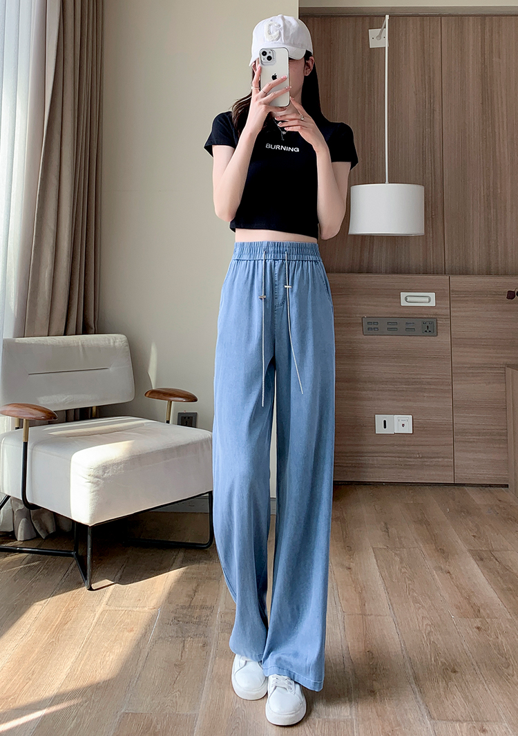 RM13394#天丝牛仔裤女2023年新款显瘦直筒高腰冰丝拖地链条阔腿裤子女