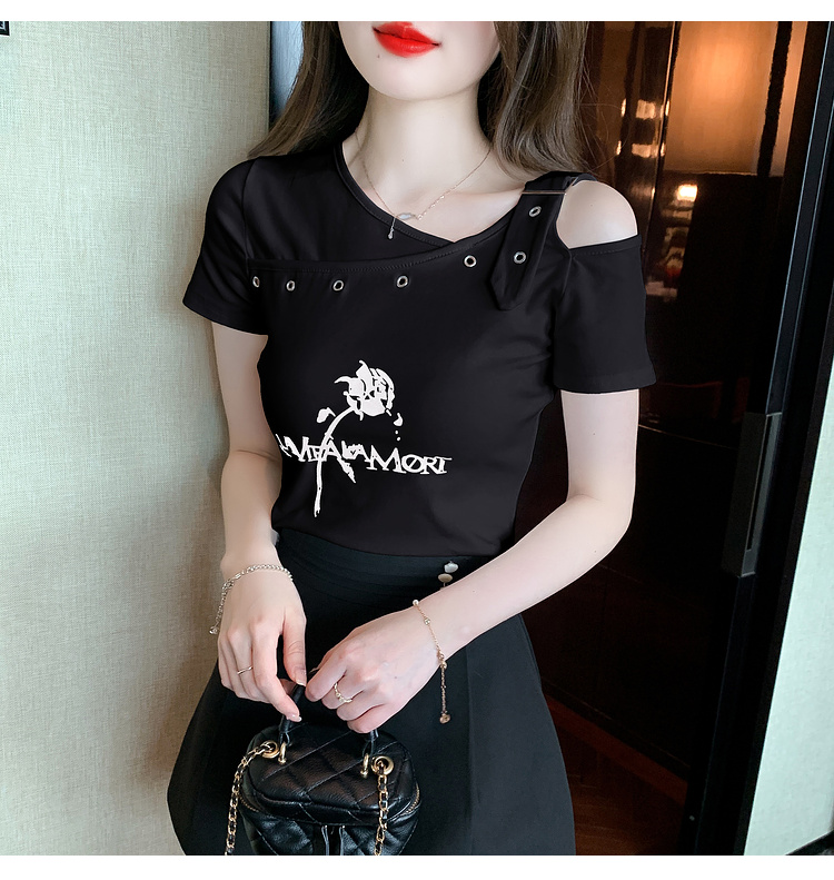 RM13461#上衣女新款2023夏季设计感短款露肩T恤短袖修身淑女上衣