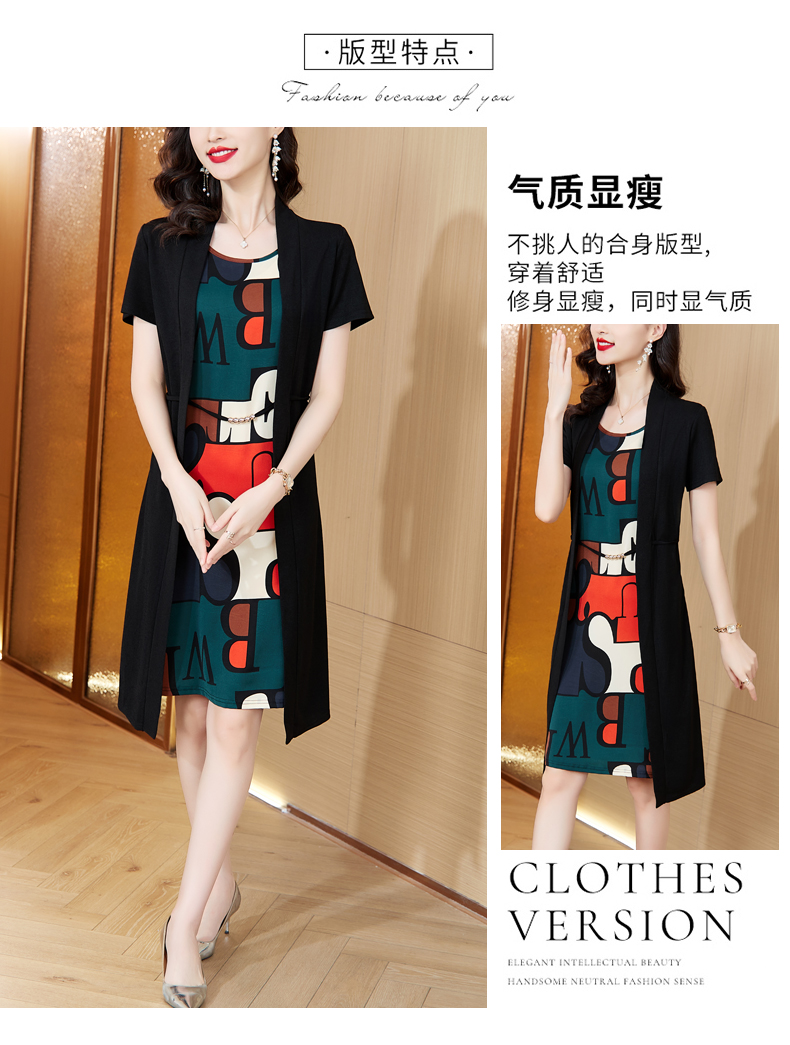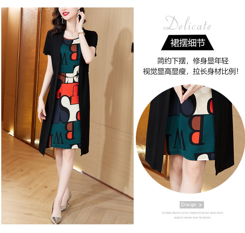 RM13555#贵夫人连衣裙高端洋气2023新款夏短袖小个子假两件气质裙子