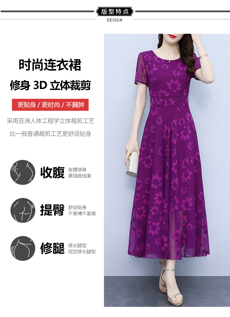 RM13559#紫色提花气质连衣裙长款女2023夏季新款显瘦短袖奢华超长裙