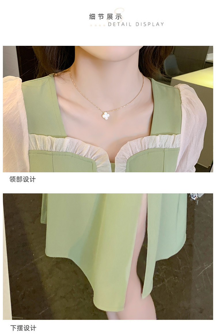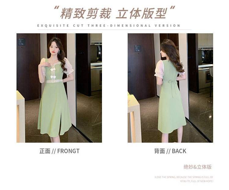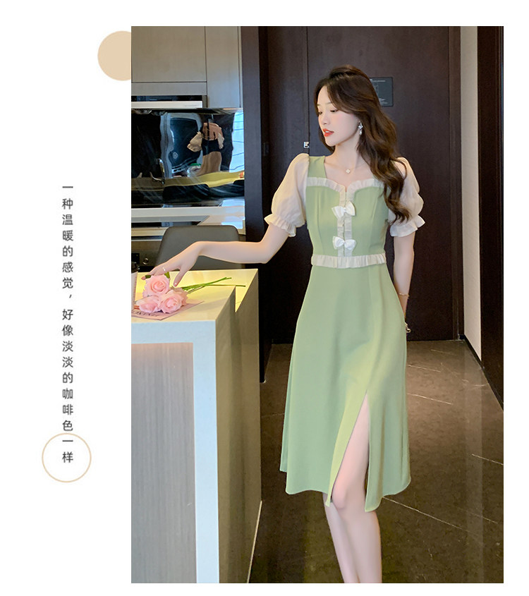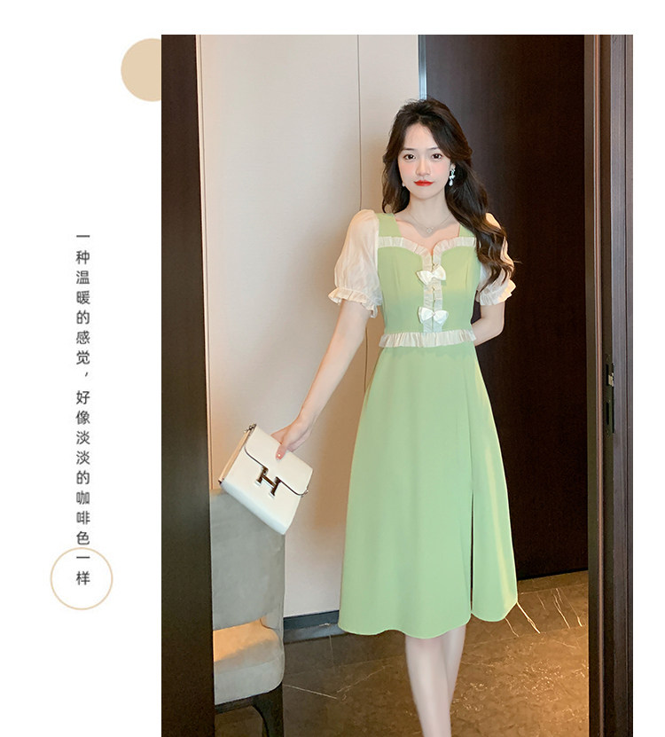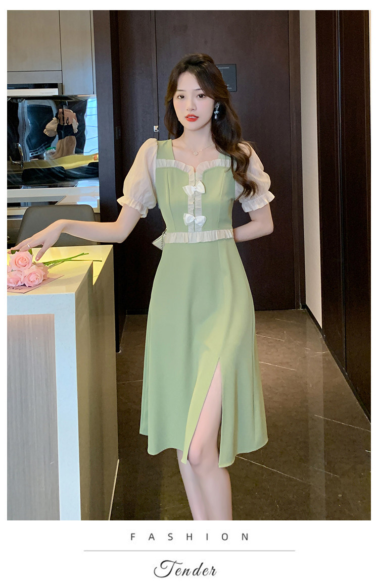 RM13629#夏季新款法式温柔风方领蝴蝶结拼接假两件套连衣裙