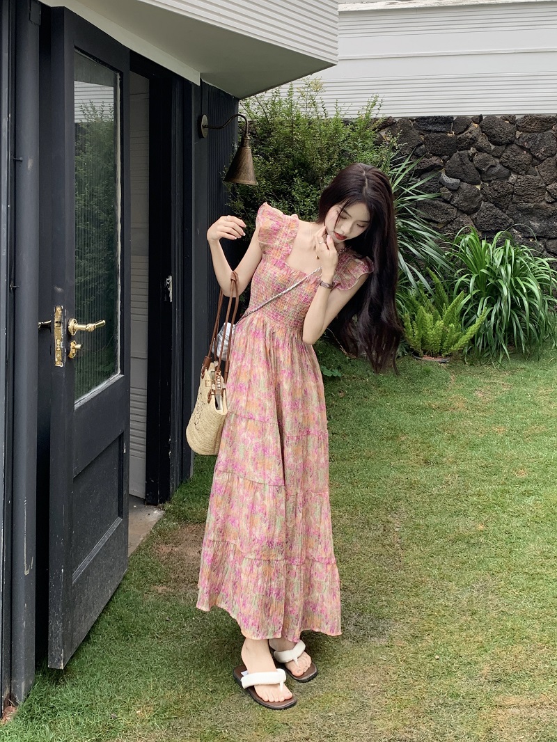 RM13680#飞飞袖碎花连衣裙设计感夏季新款仙女裙子洋气别致修身显瘦长裙潮