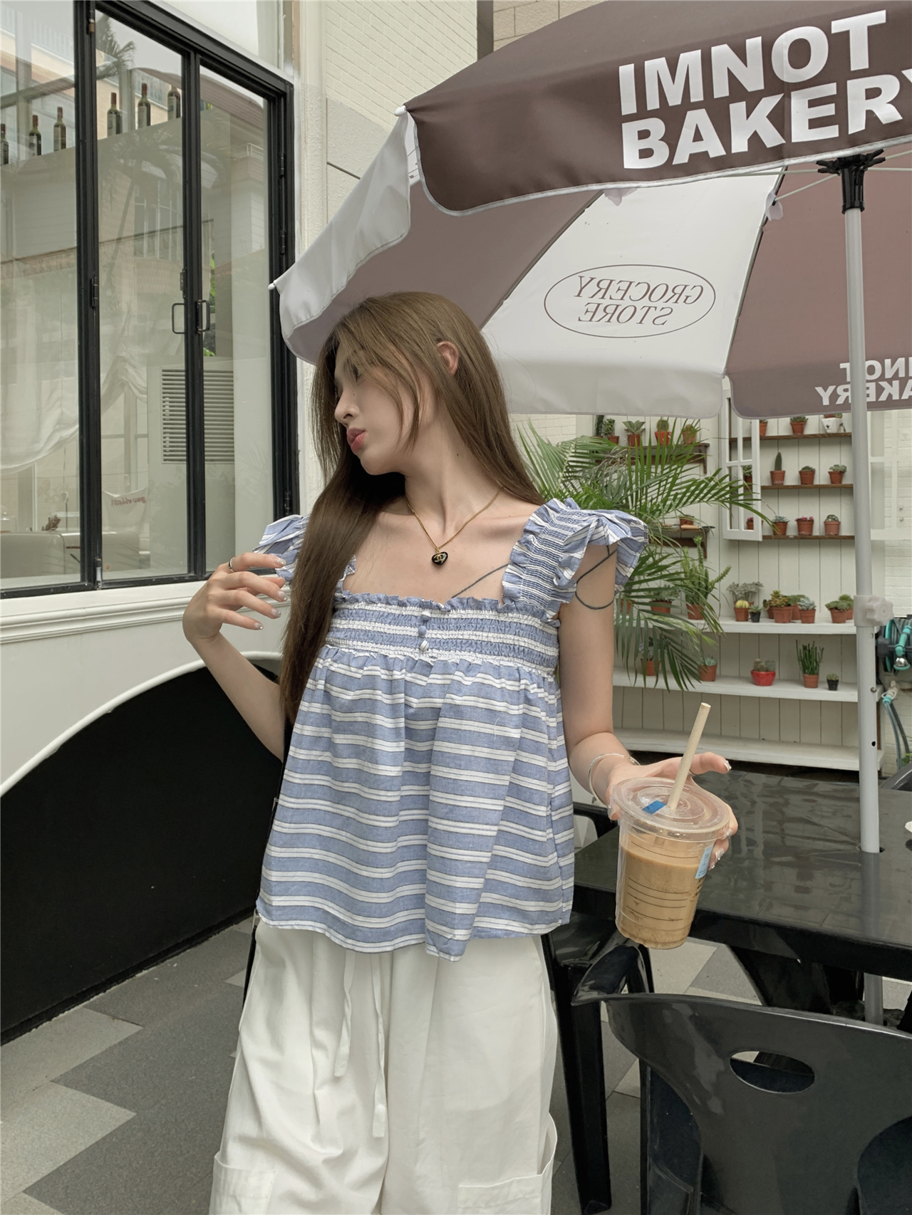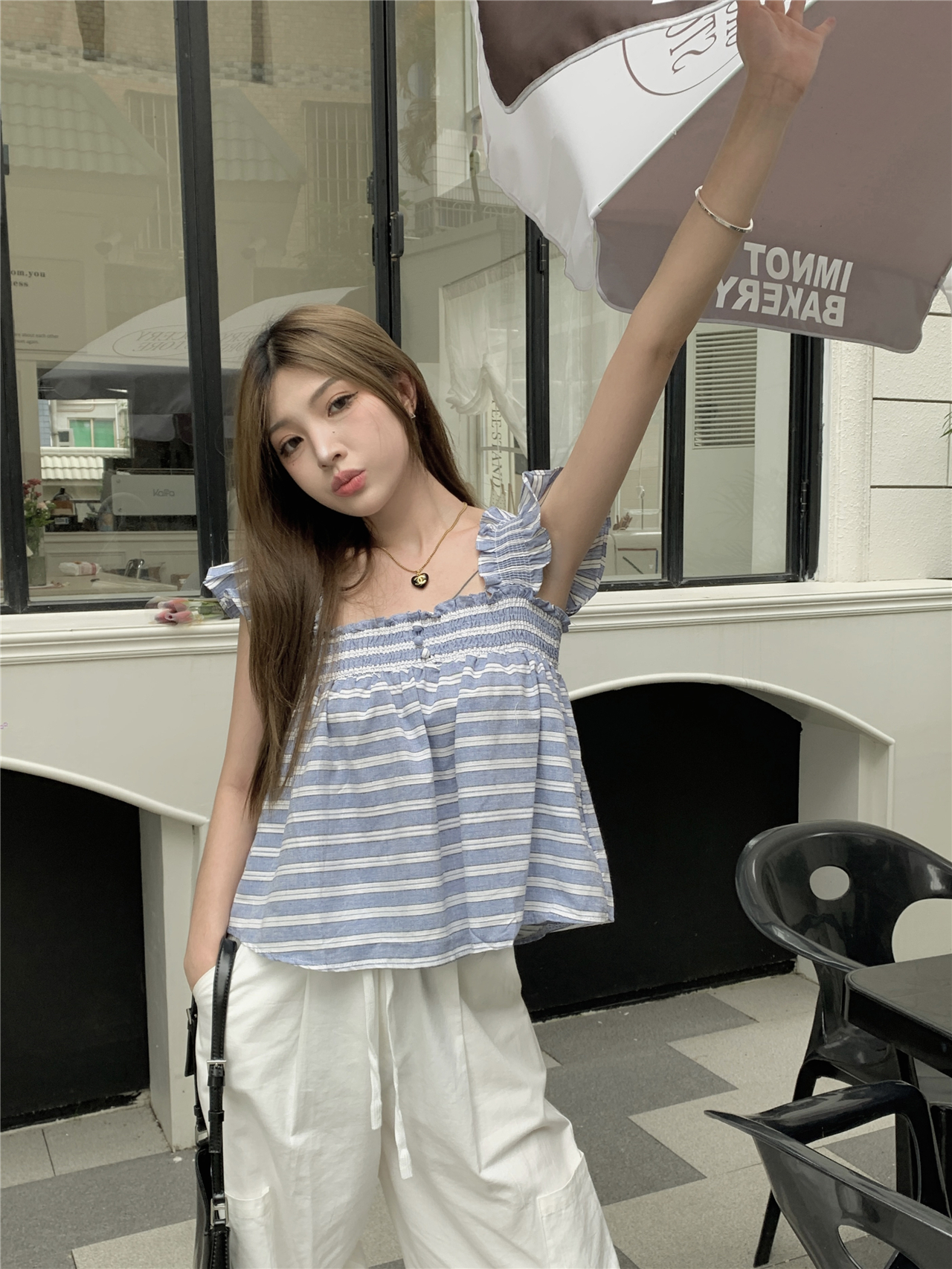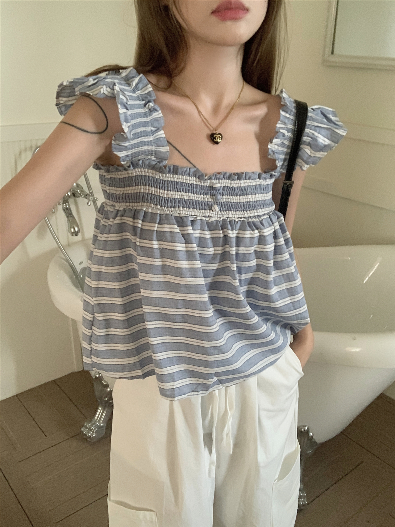 RM13755#甜美减龄格子衬衫夏无袖衬衣抹胸背心宽松别致吊带上衣