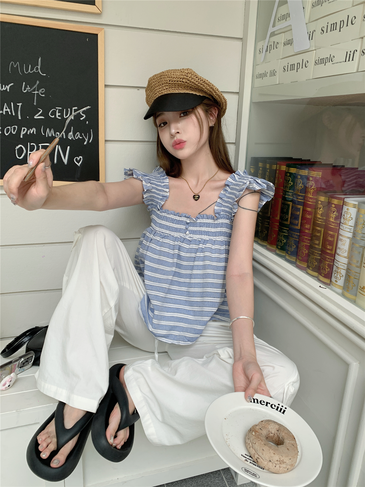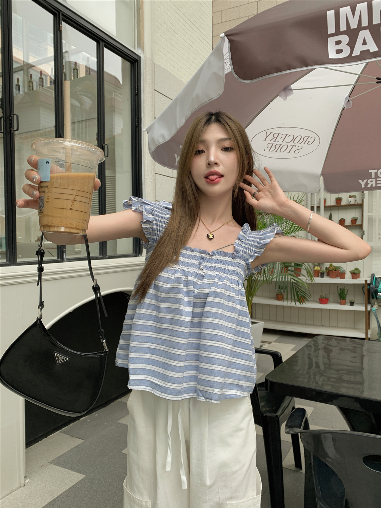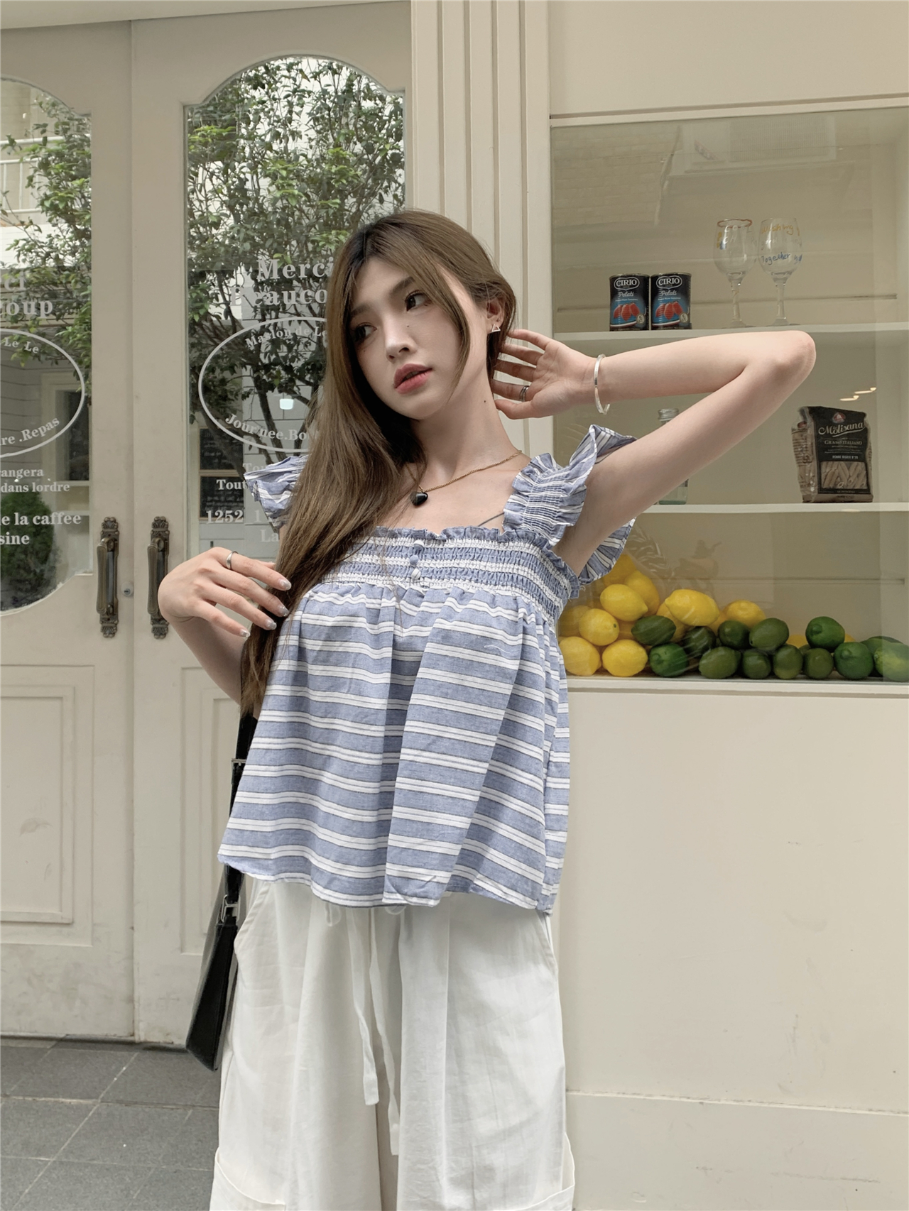 RM13755#甜美减龄格子衬衫夏无袖衬衣抹胸背心宽松别致吊带上衣