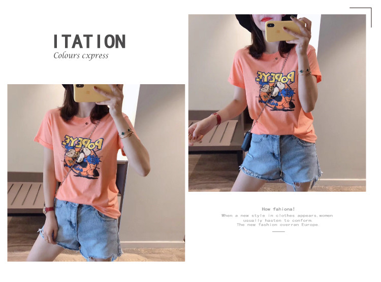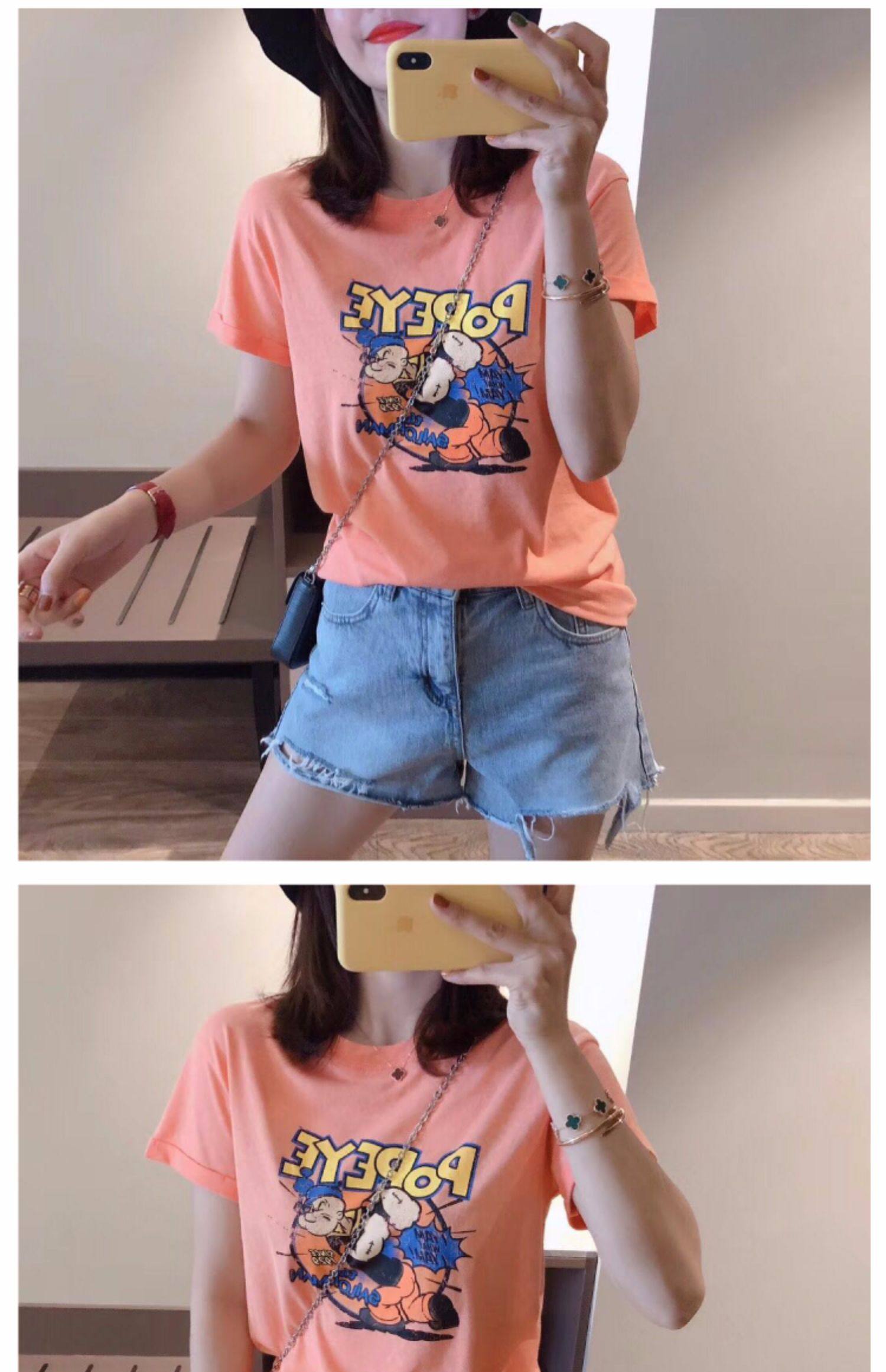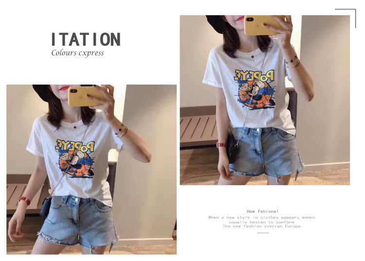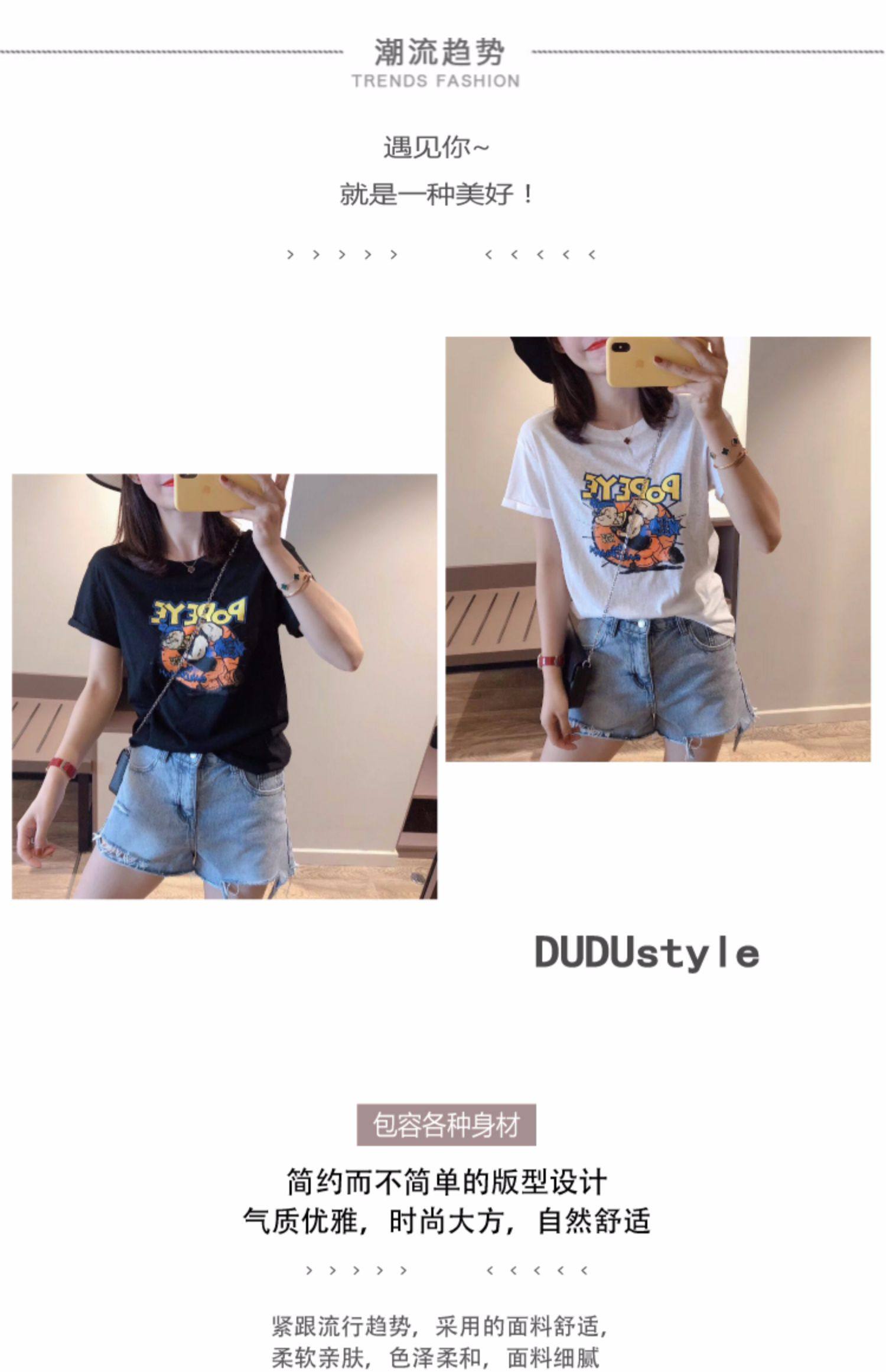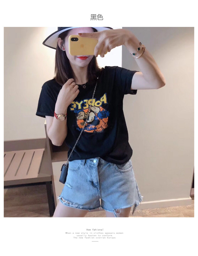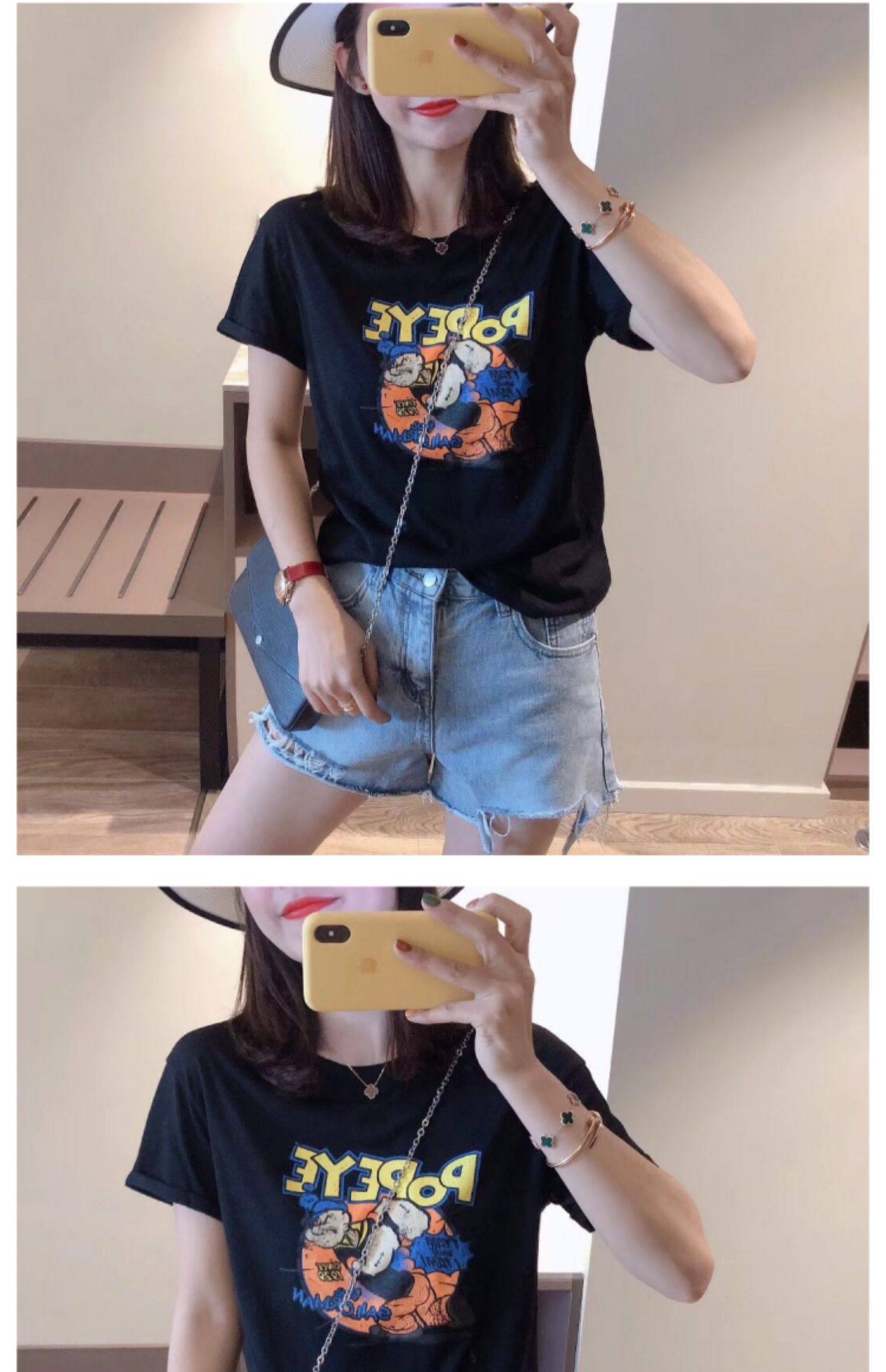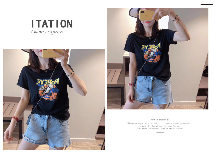 RM13924#韩版宽松短袖t恤女夏季设计感洋气卡通印花体恤洋气正肩打底上衣