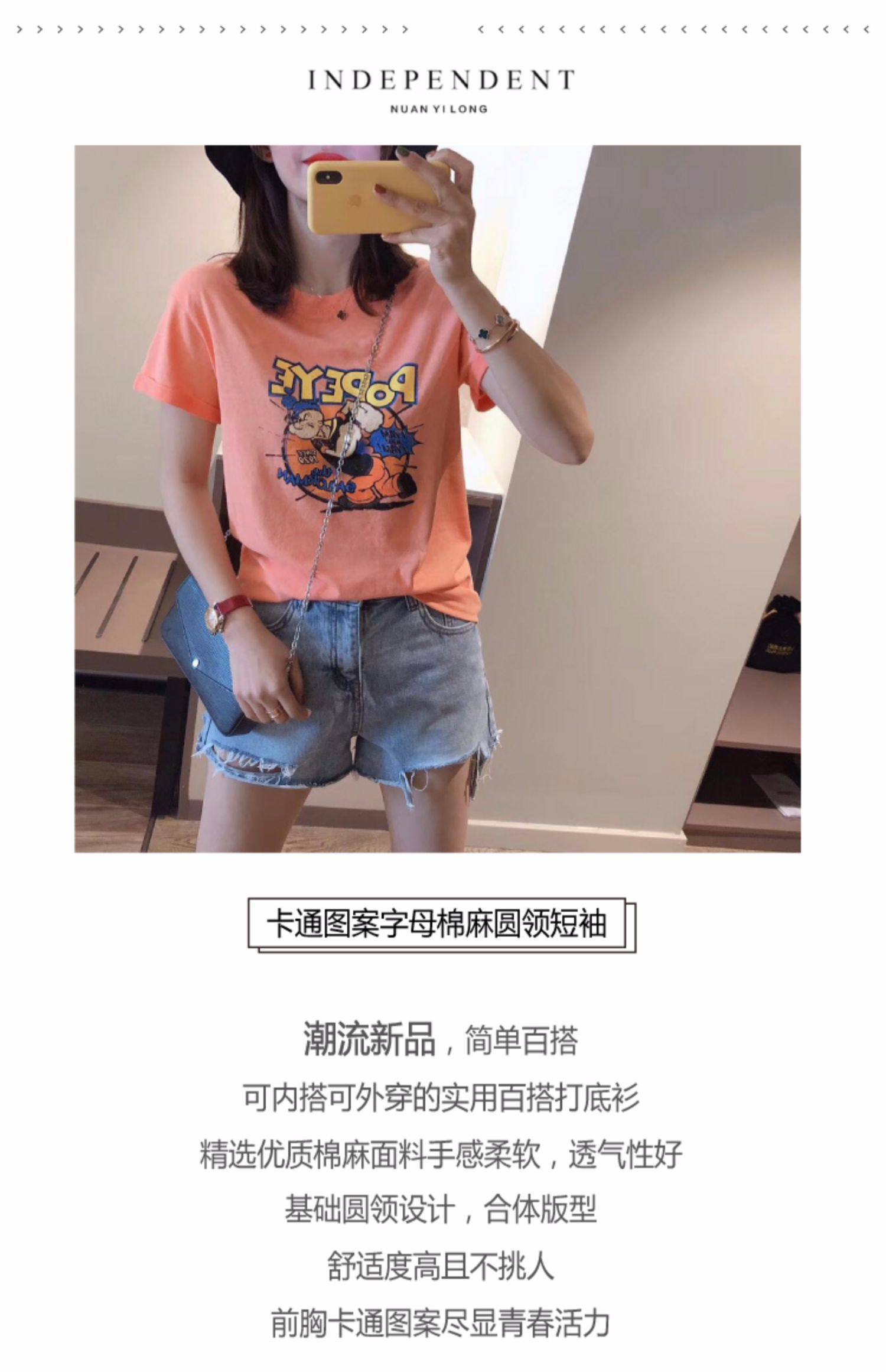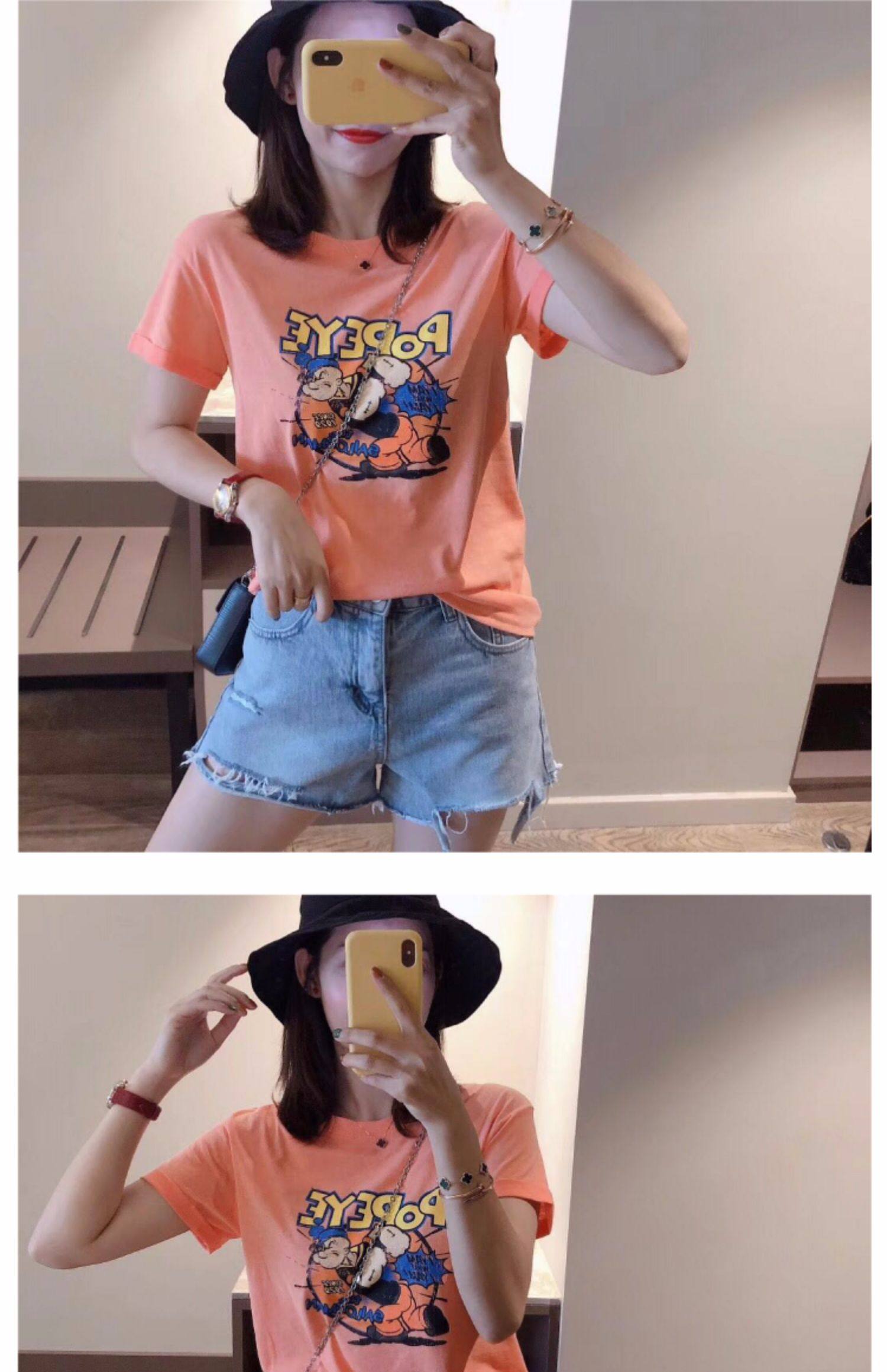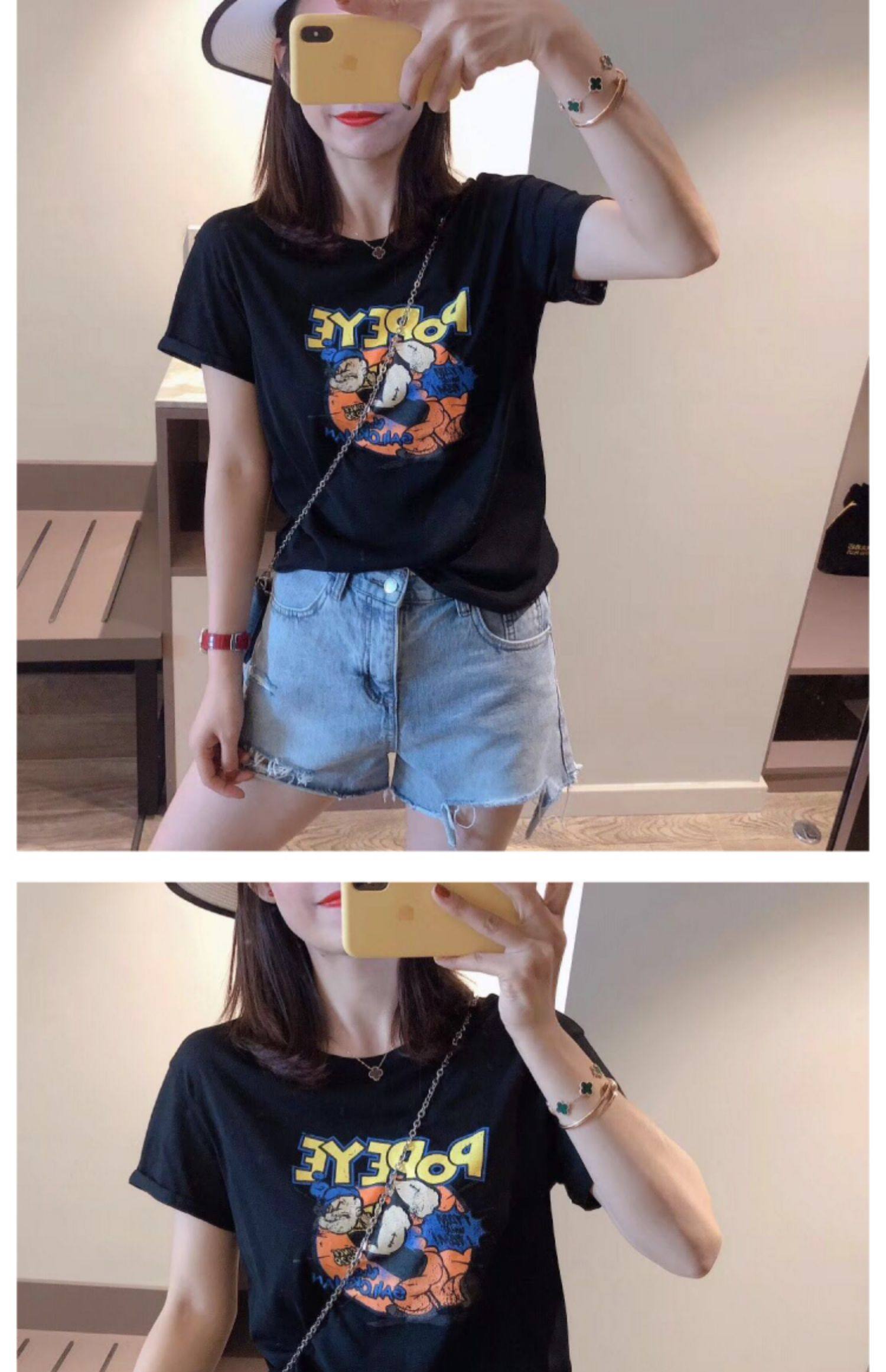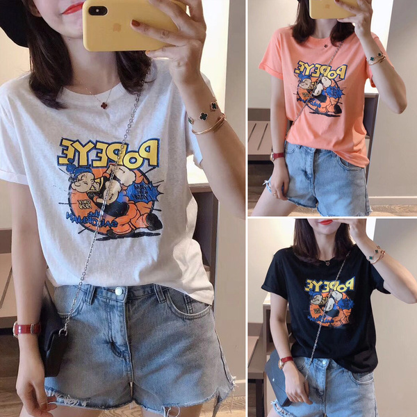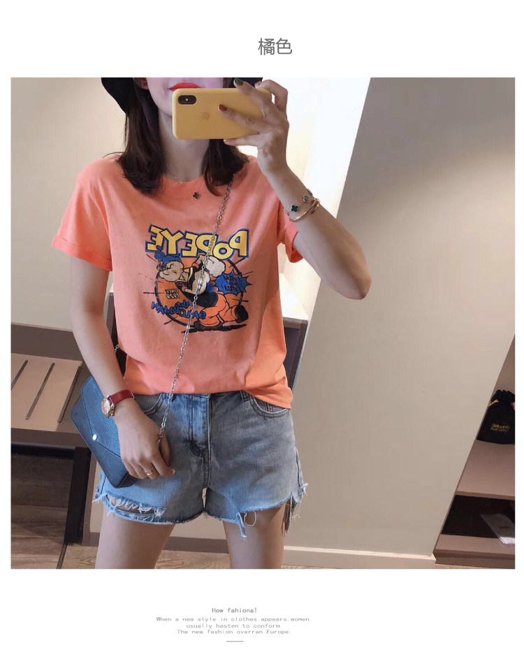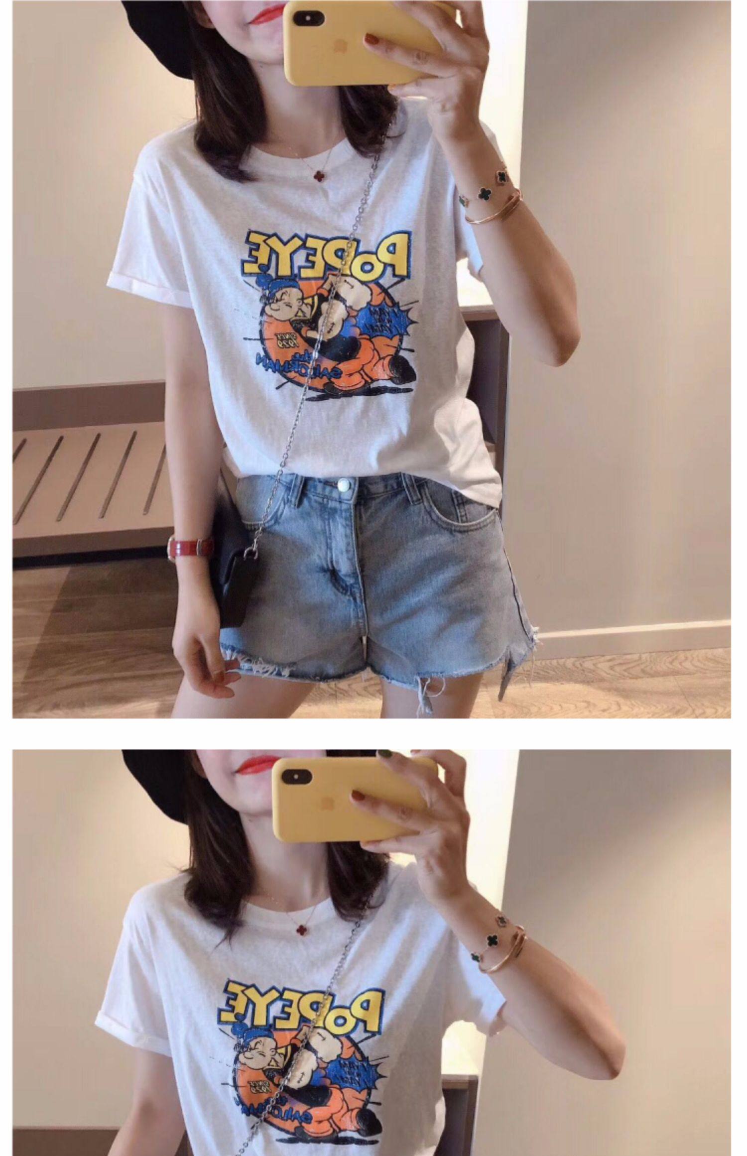 RM13924#韩版宽松短袖t恤女夏季设计感洋气卡通印花体恤洋气正肩打底上衣