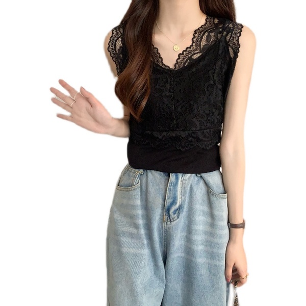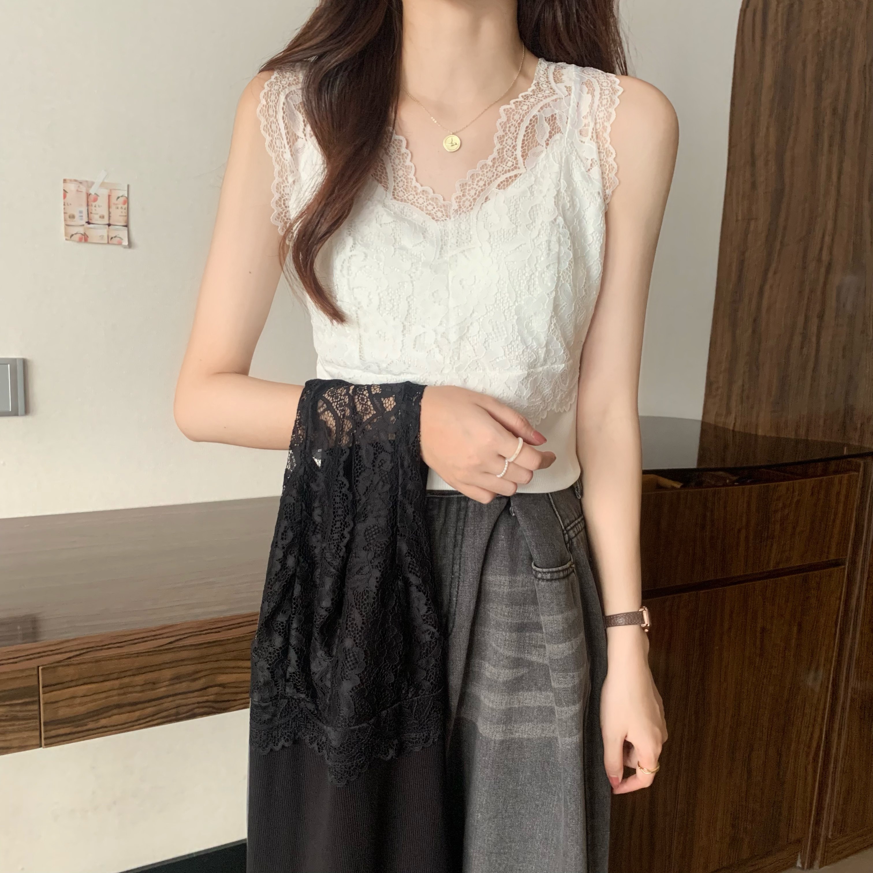首页 > 女装批发-夏款 > 上衣 > RM13951#大码夏季蕾丝拼接内搭吊带显瘦遮肚罗文纯色背心女
