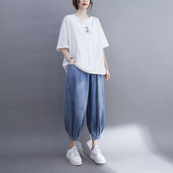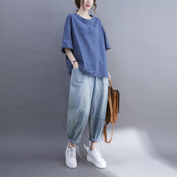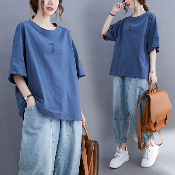 RM14014#文艺大码宽松上衣2023夏季新款胖mm加肥加大码女装短袖T恤