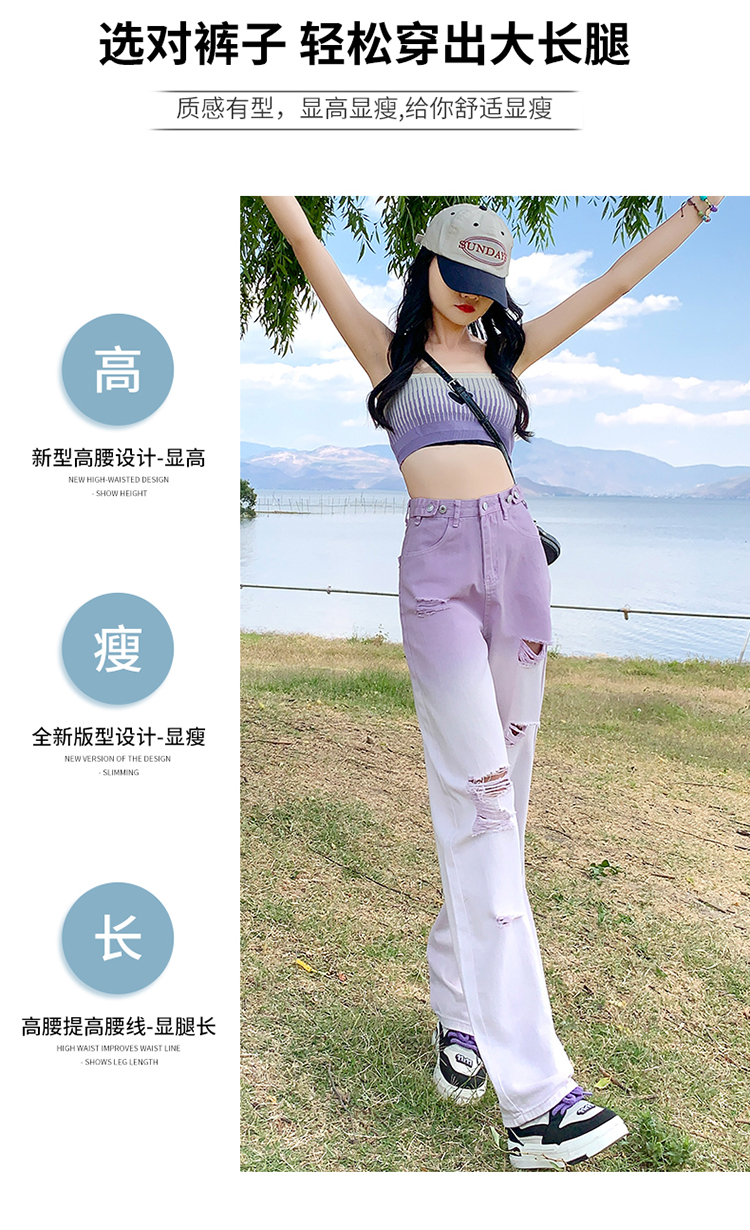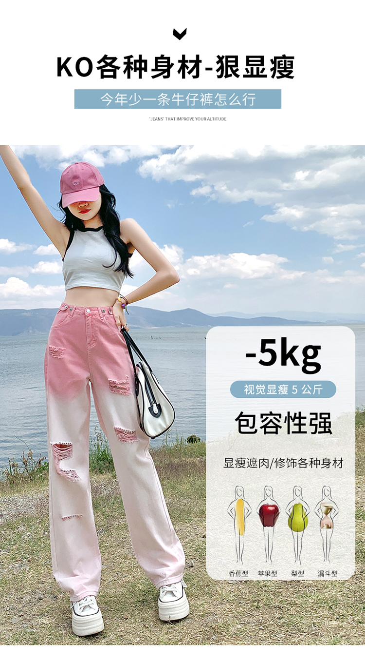 RM14285#破洞渐变牛仔裤女夏季2023新款网红时尚薄款显瘦宽松高腰裤子潮
